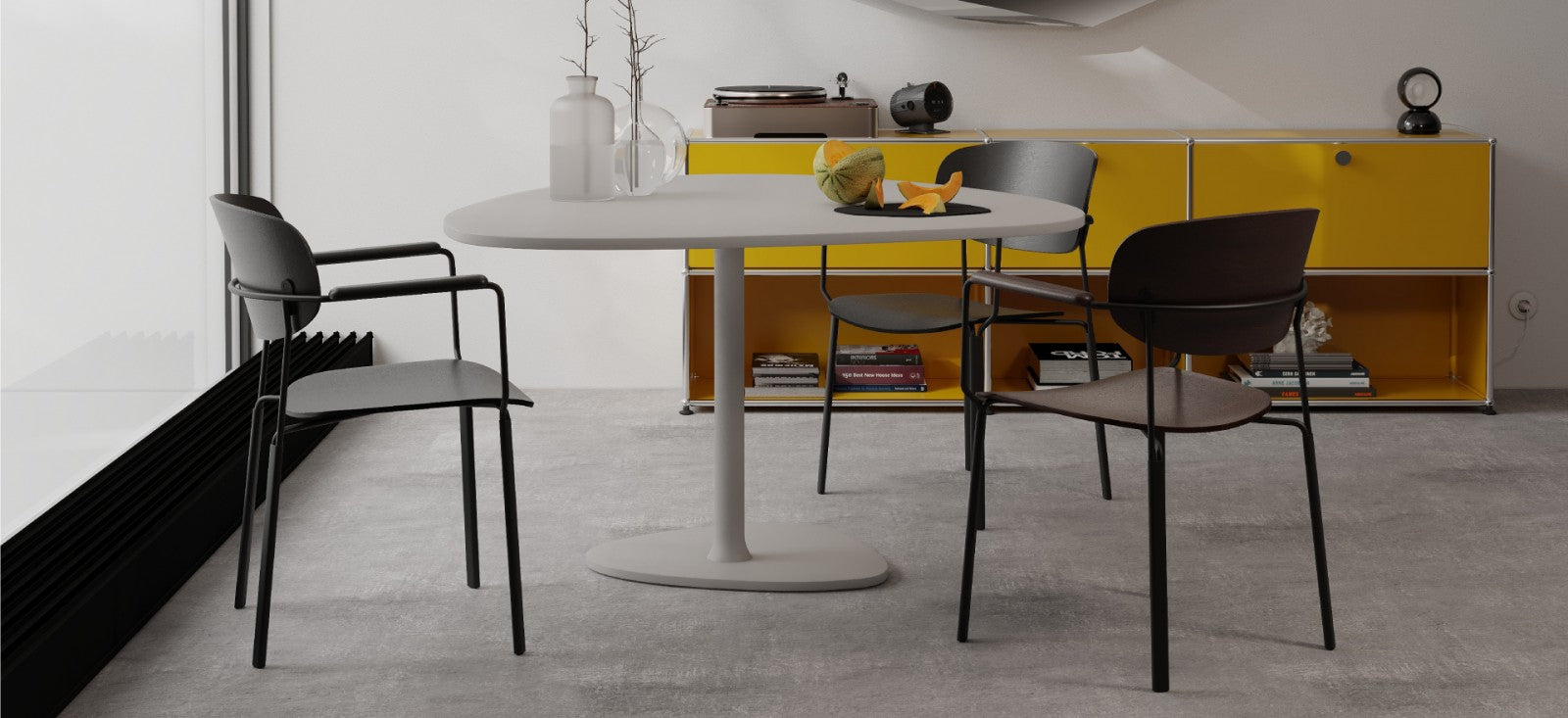 Algo ist eine Kollektion mit geschwungenen, organischen Linien und einem durchbrochenen Design. Trotz ihrer scheinbar filigranen Form ist sie stabil und bietet hohen Sitzkomfort. Ein weiterer Vorteil ist ihr geringer Platzbedarf.