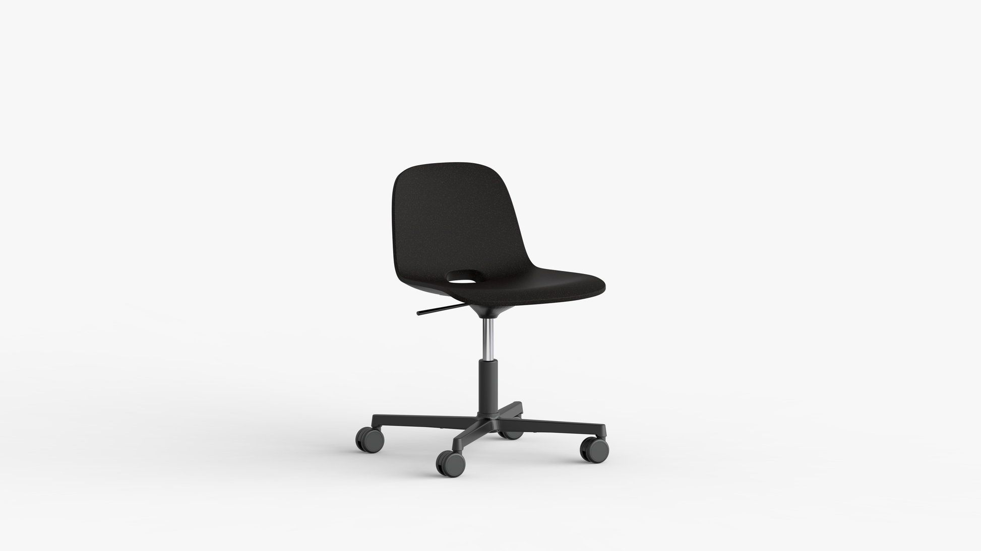 Drehbarer Bürostuhl auf Rollen mit Höhenverstellung.