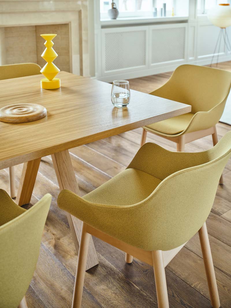 Mit zeitlosen Materialien und universellen Formen hat Krystian Kowalski einen generationsübergreifenden Stuhl geschaffen – langlebig und unabhängig von wechselnden Trends. Der Designer hat die Baltic-Familie nun auch in einer Version ohne Armlehnen neu aufgelegt. In dieser Ausführung ist der Stuhl noch vielseitiger – ideal für Büros, Wohnungen und öffentliche Räume, insbesondere für Gastronomiebetriebe und Lounge-Bereiche. Der gepolsterte Sitz und das schlichte Vierbeingestell aus Holz machen den Stuhl außergewöhnlich bequem, unabhängig von Kontext und Funktion. Ein gepolsterter Sitz mit weichem Kissen und ein schlichtes Holzgestell sorgen für höchsten Sitzkomfort – unabhängig von Kontext und Funktion. Er eignet sich perfekt als Stuhl für Esszimmer, Wartezimmer oder Lounge-Bereiche und lädt zum Entspannen ein.