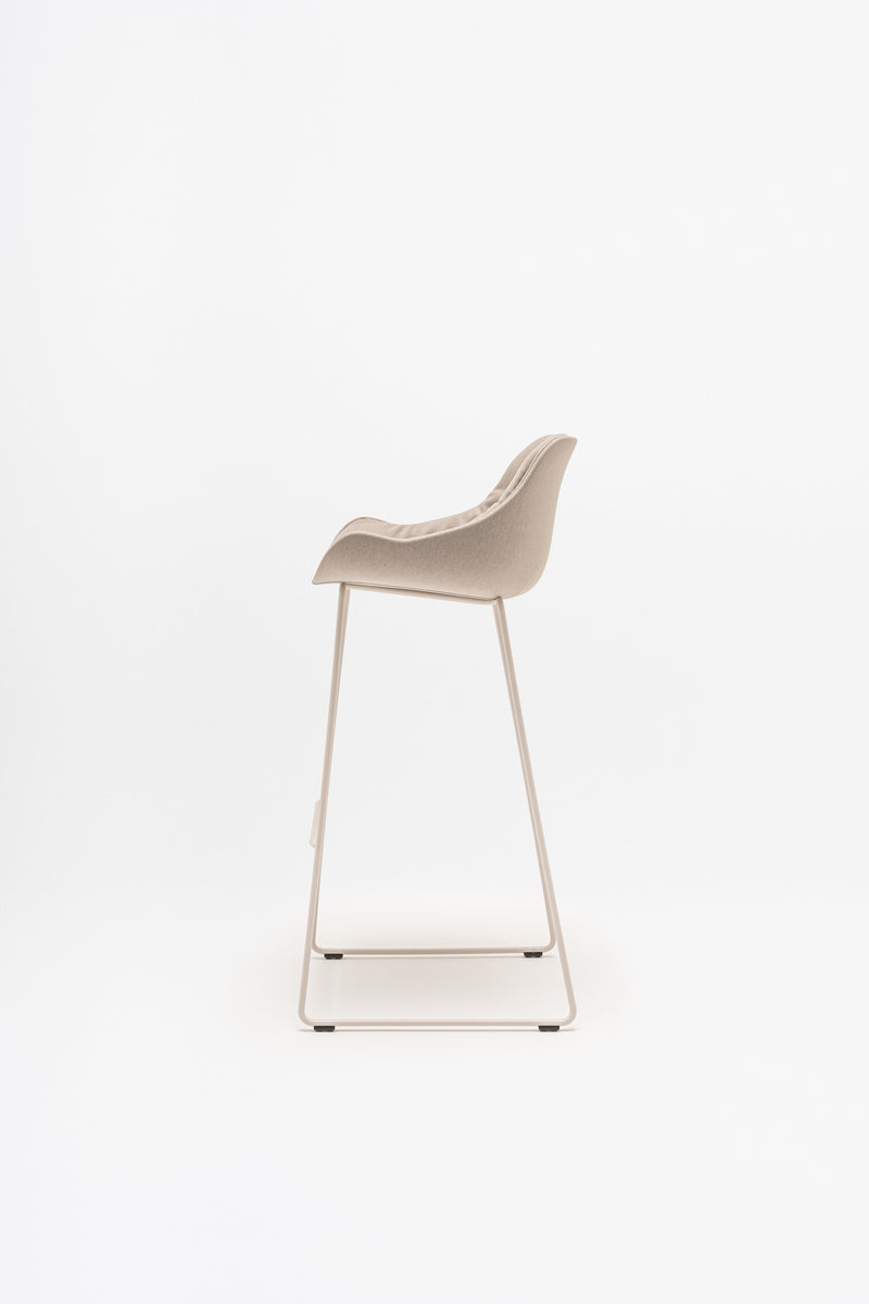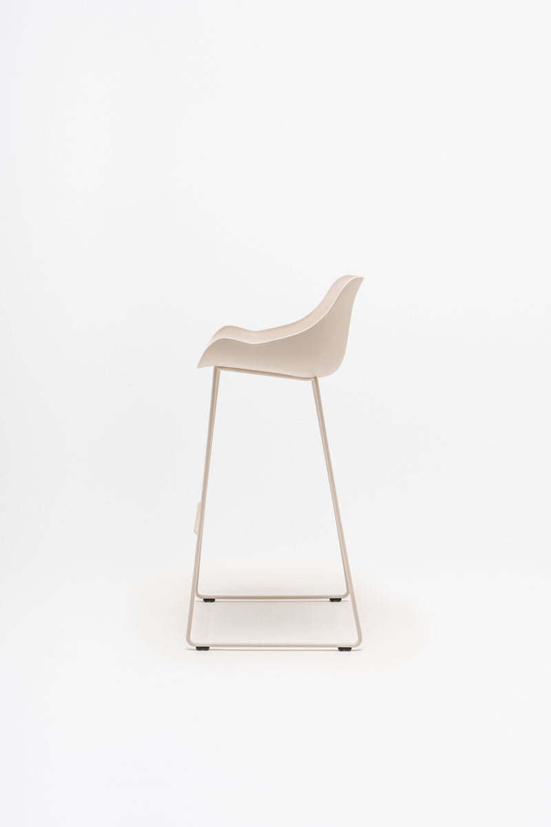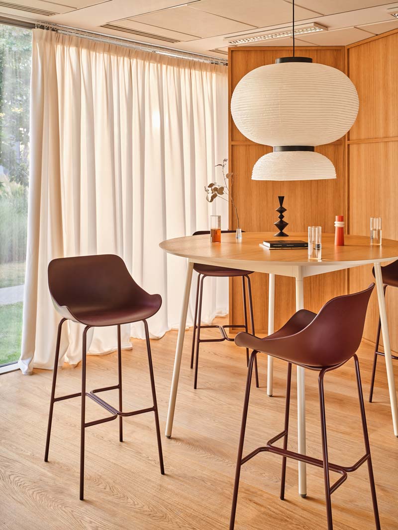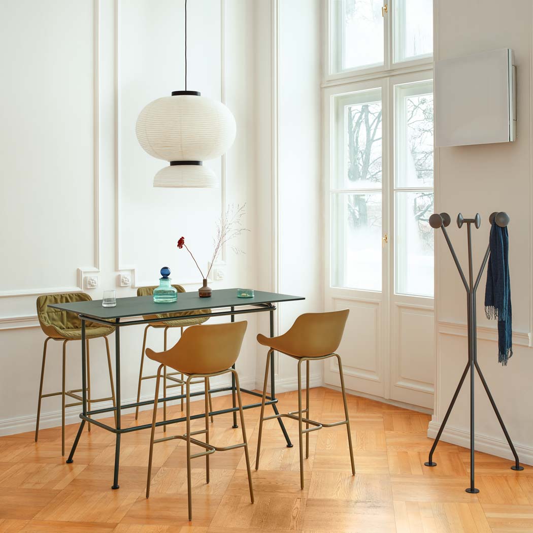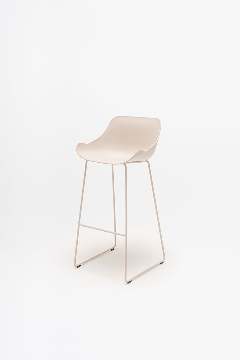 Der Designer Krystian Kowalski wollte den Barhocker Baltic so funktional und vielseitig wie möglich gestalten, ohne dabei den Komfort zu vernachlässigen. Dies wurde durch die schlichte und durchdachte Form der Kunststoff-Sitzfläche erreicht. Dank ihrer einfachen Reinigung eignet sie sich ideal für stark frequentierte Bereiche. Die Sitzfläche ruht auf einem eleganten Metallgestell, das dem Hocker eine leichte Anmutung verleiht. Die hohe Version des Baltic ist perfekt für Kantinen, Bars und andere Gastronomiebetriebe. Auch im Außenbereich macht sie eine gute Figur.