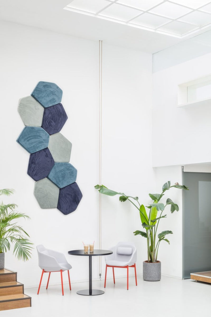 Bazalto sind sechseckige Wandpaneele, inspiriert von der Küstenlinie des Giant's Causeway. Ihre beeindruckende Ästhetik verschönert nicht nur die Wand, sondern verbessert gleichzeitig die Akustik des Raumes. Zwei verschiedene Größen sowie diverse Stoffe und Farben ermöglichen faszinierende Raumgestaltungen.