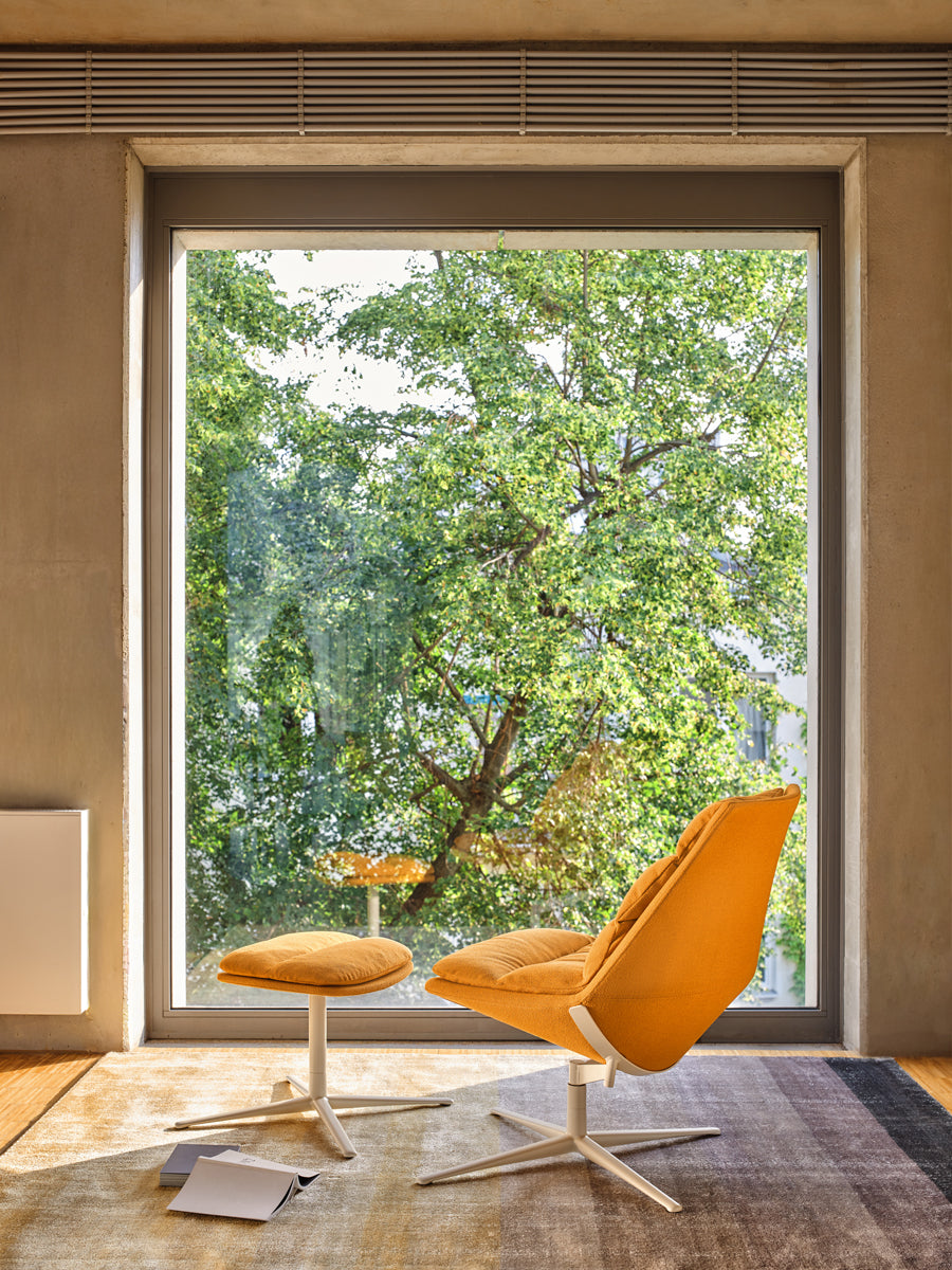 Stellen Sie sich ultimativen Komfort vor, umgeben von weichen Formen und bequemen Kissen. Der Lounge-Sessel Fat Frank verkörpert genau dieses Konzept: Wohlbefinden und hochwertige Verarbeitung stehen an erster Stelle. Die Kissen, die sich von der tiefen Sitzfläche bis zur leicht geneigten Rückenlehne erstrecken, laden zum Entspannen und Genießen ein. Die elegante Form des Frank-Sessels ruht wahlweise auf einem klassischen Vierbein- oder Vierspeichen-Drehgestell. Lounge-Bereiche, Wohnräume, Chill-out-Zonen und Gastronomiebetriebe sind der ideale Ort für dieses exquisite Möbelstück. Der Sessel ist in verschiedenen Stoffen und Farben erhältlich, darunter auch Naturleder, das den Komfort zusätzlich steigert.