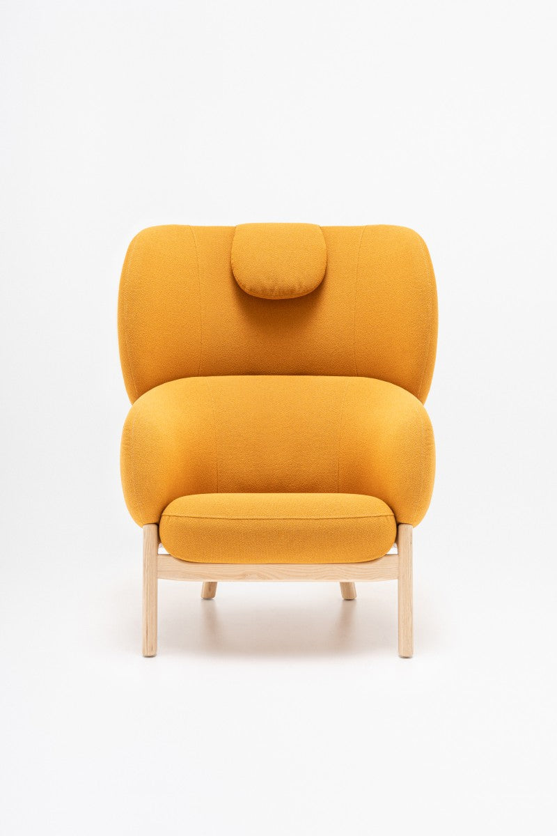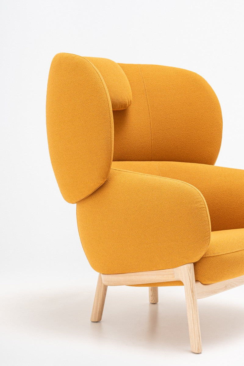 Der Sessel Grand mit Kopfstütze und Holzgestell vereint Komfort und Stil. Mit seiner hohen Rückenlehne und der integrierten Kopfstütze für optimale Unterstützung steht dieser Sessel auf einem soliden Holzgestell und besticht durch eine elegante und zugleich natürliche Ästhetik – perfekt zum Entspannen.
