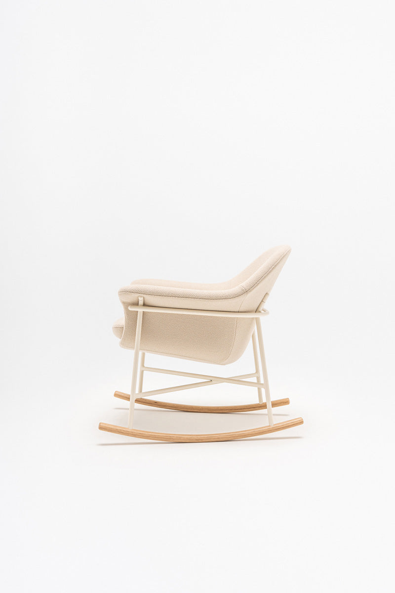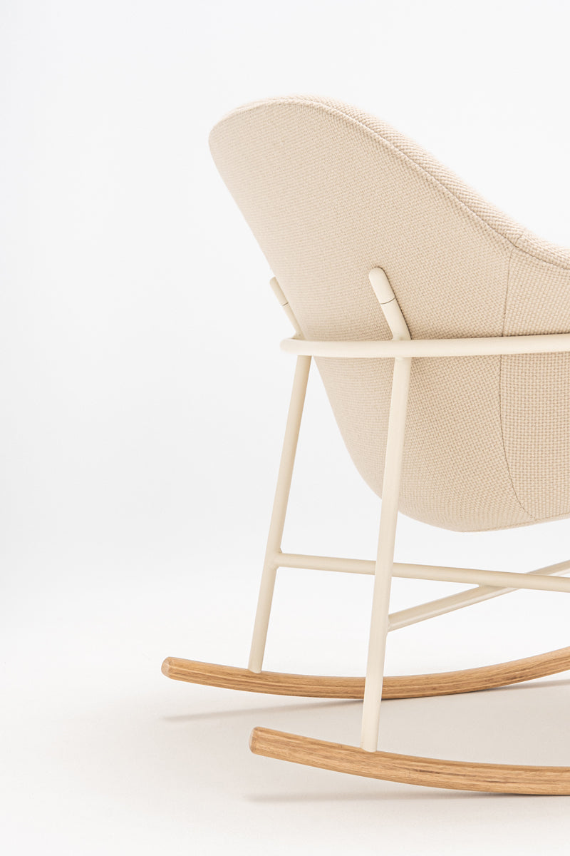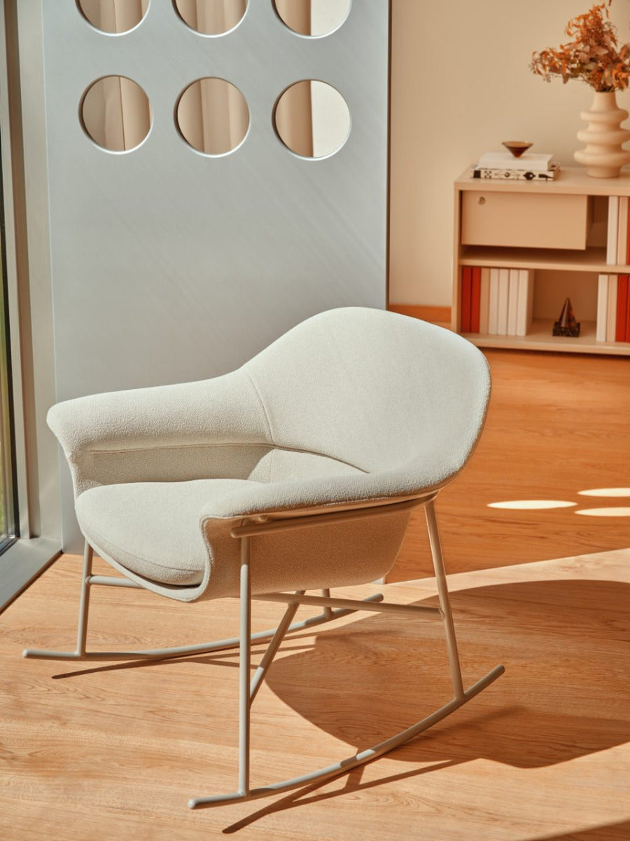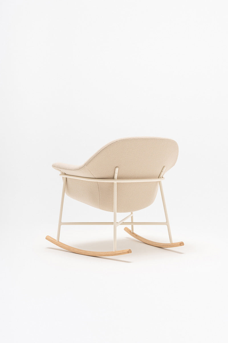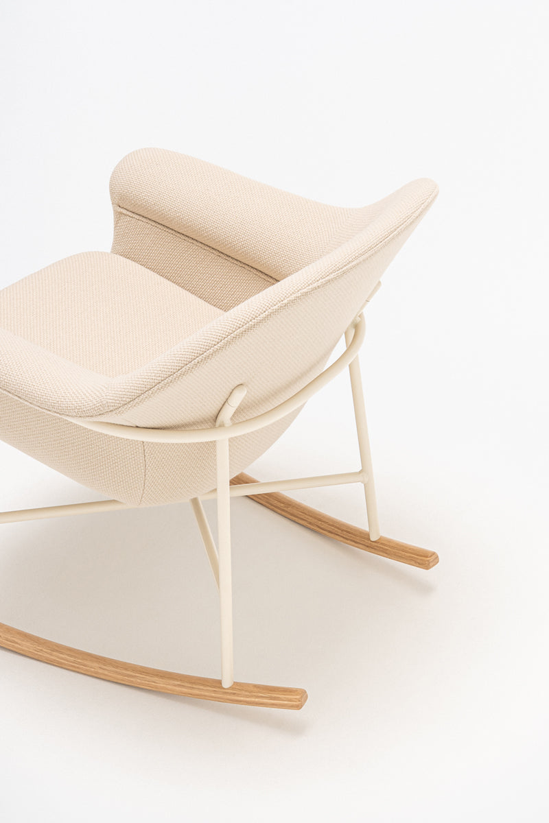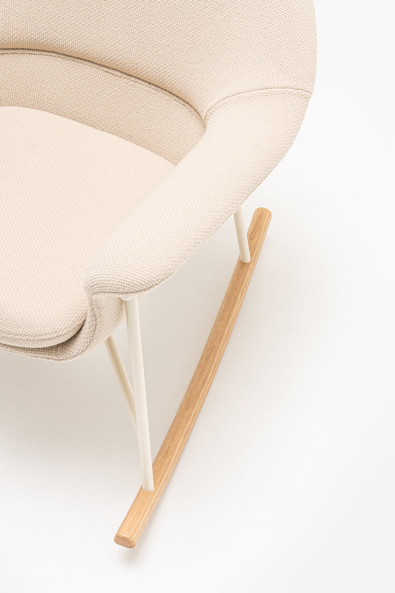 Der Ismo-Sessel mit Schaukelfunktion bietet eine breite Sitzfläche, eine sanft geneigte Rückenlehne und Armlehnen für maximalen Komfort und flexible Sitzpositionen. Ein weiches, im Lendenbereich konturiertes Kissen stützt die gesamte Wirbelsäule komfortabel.