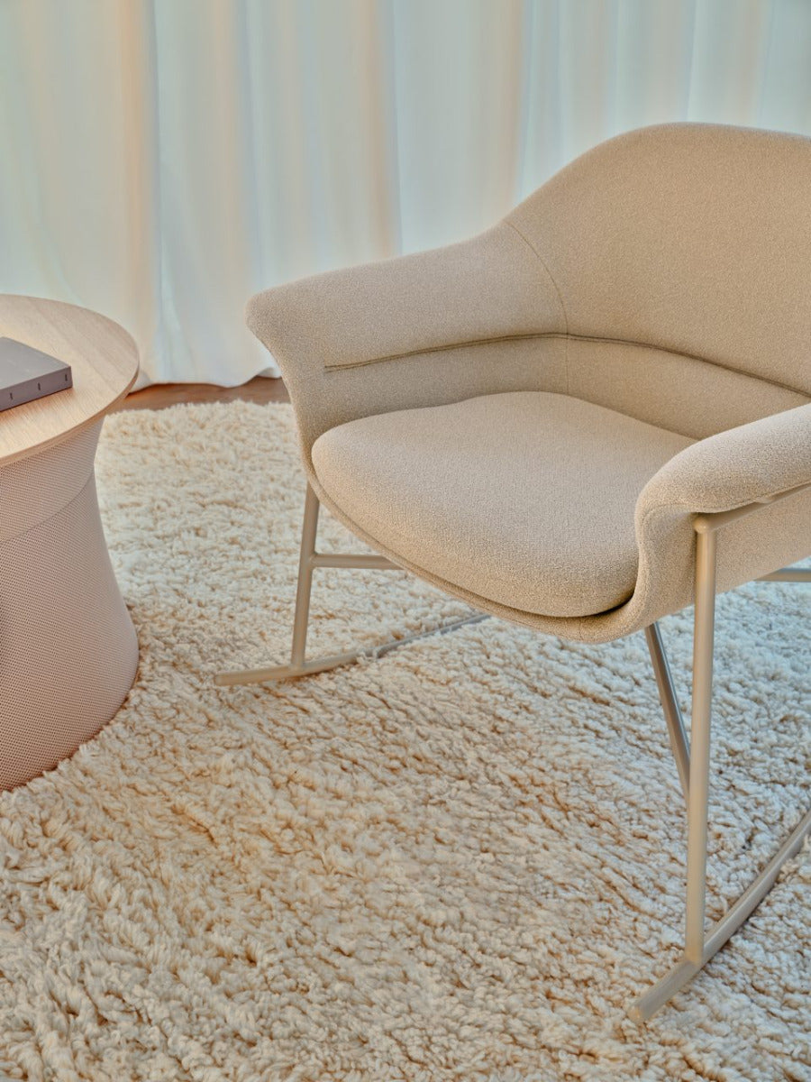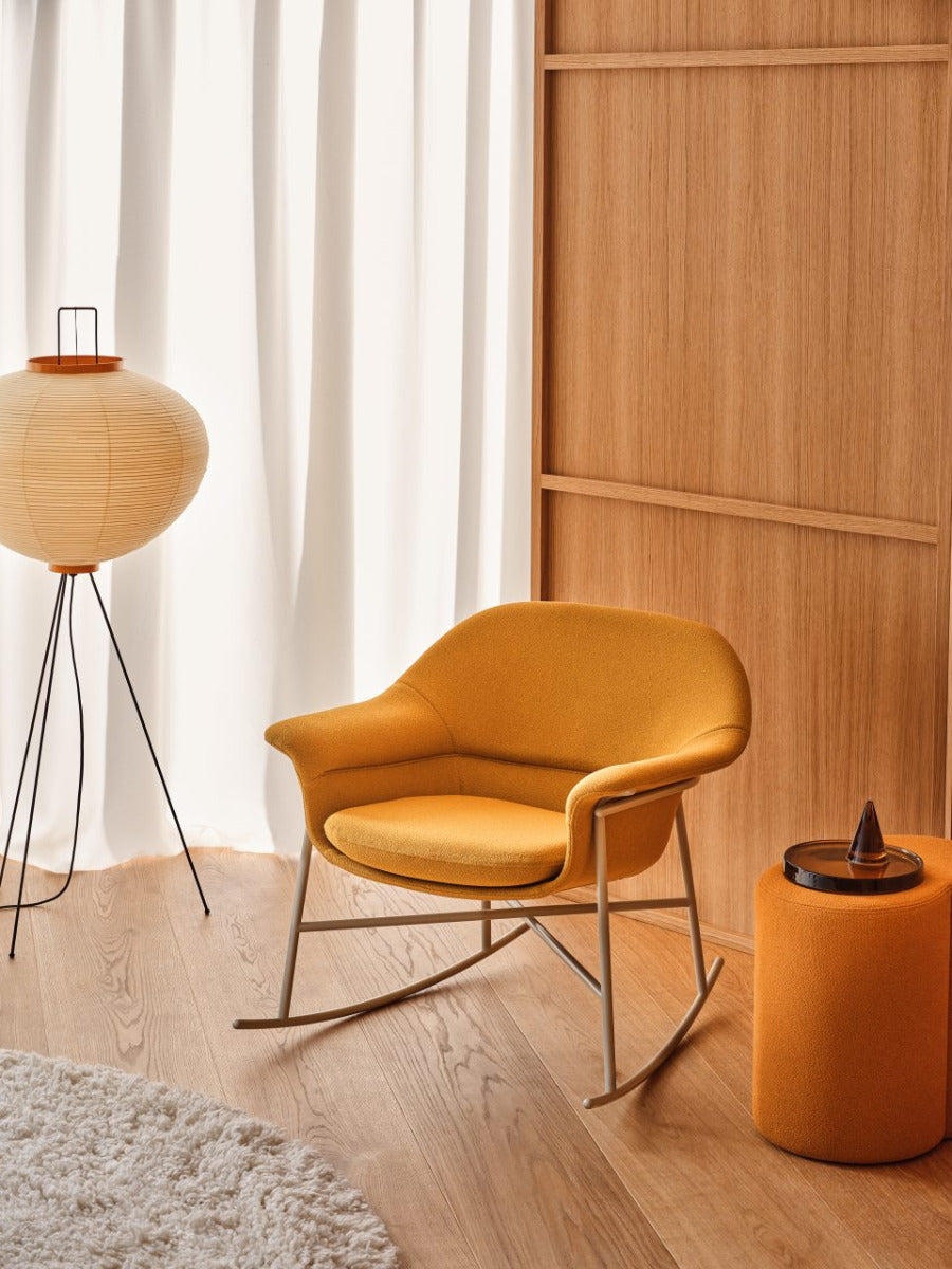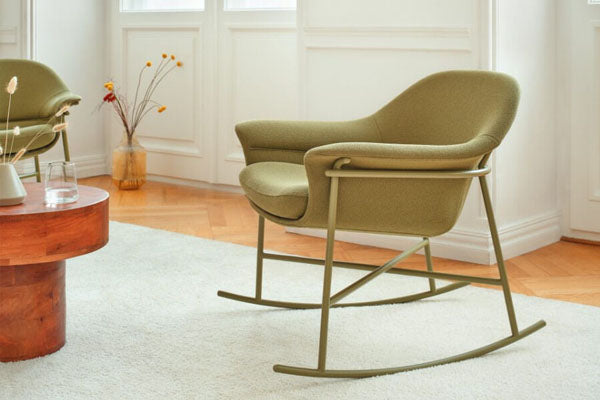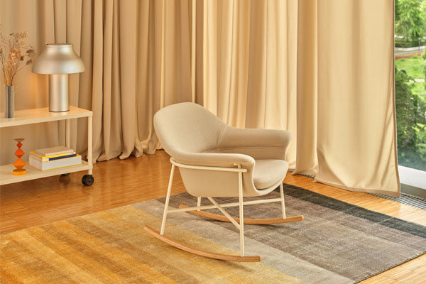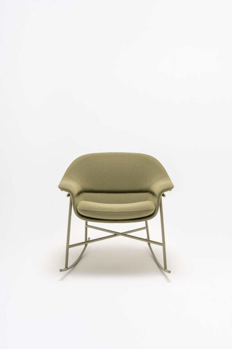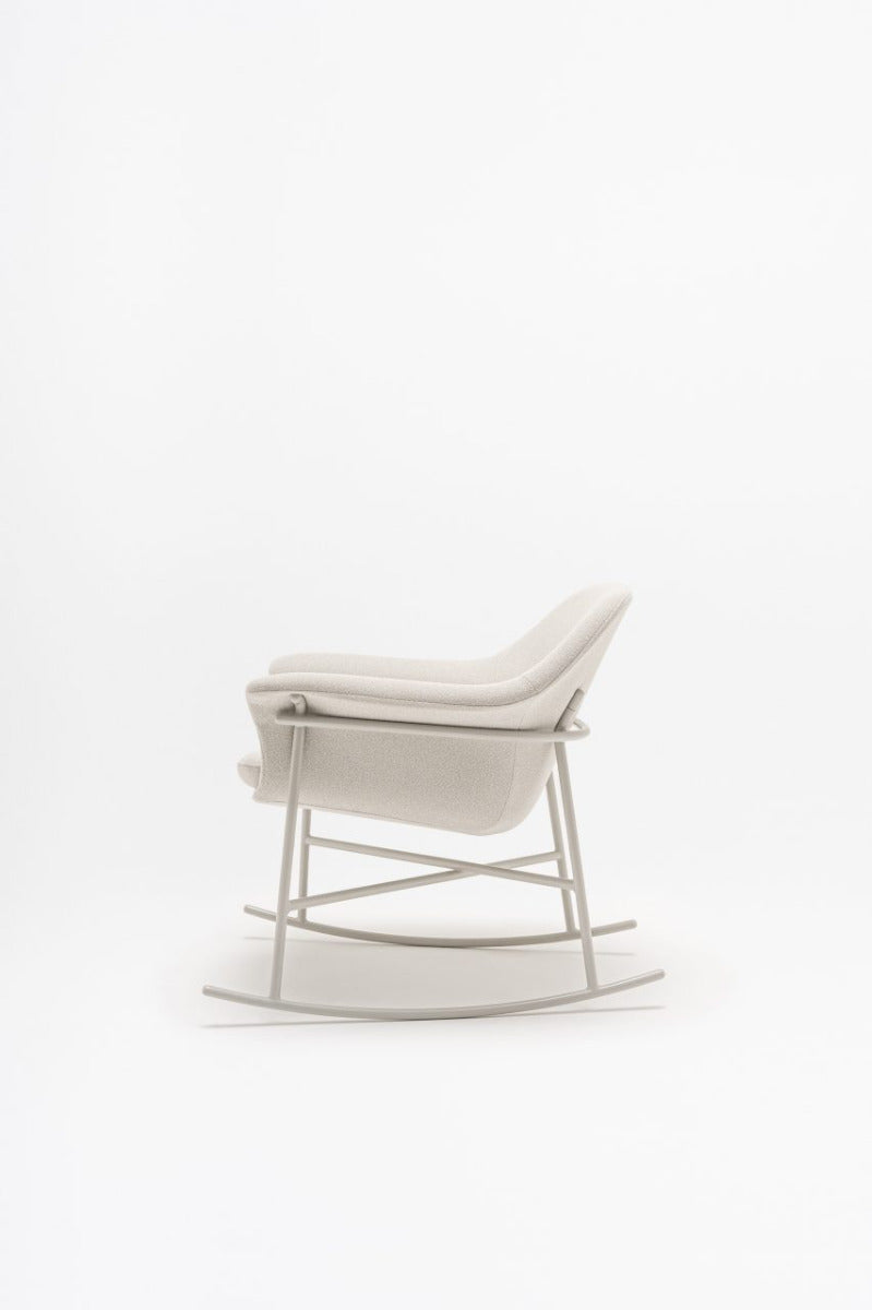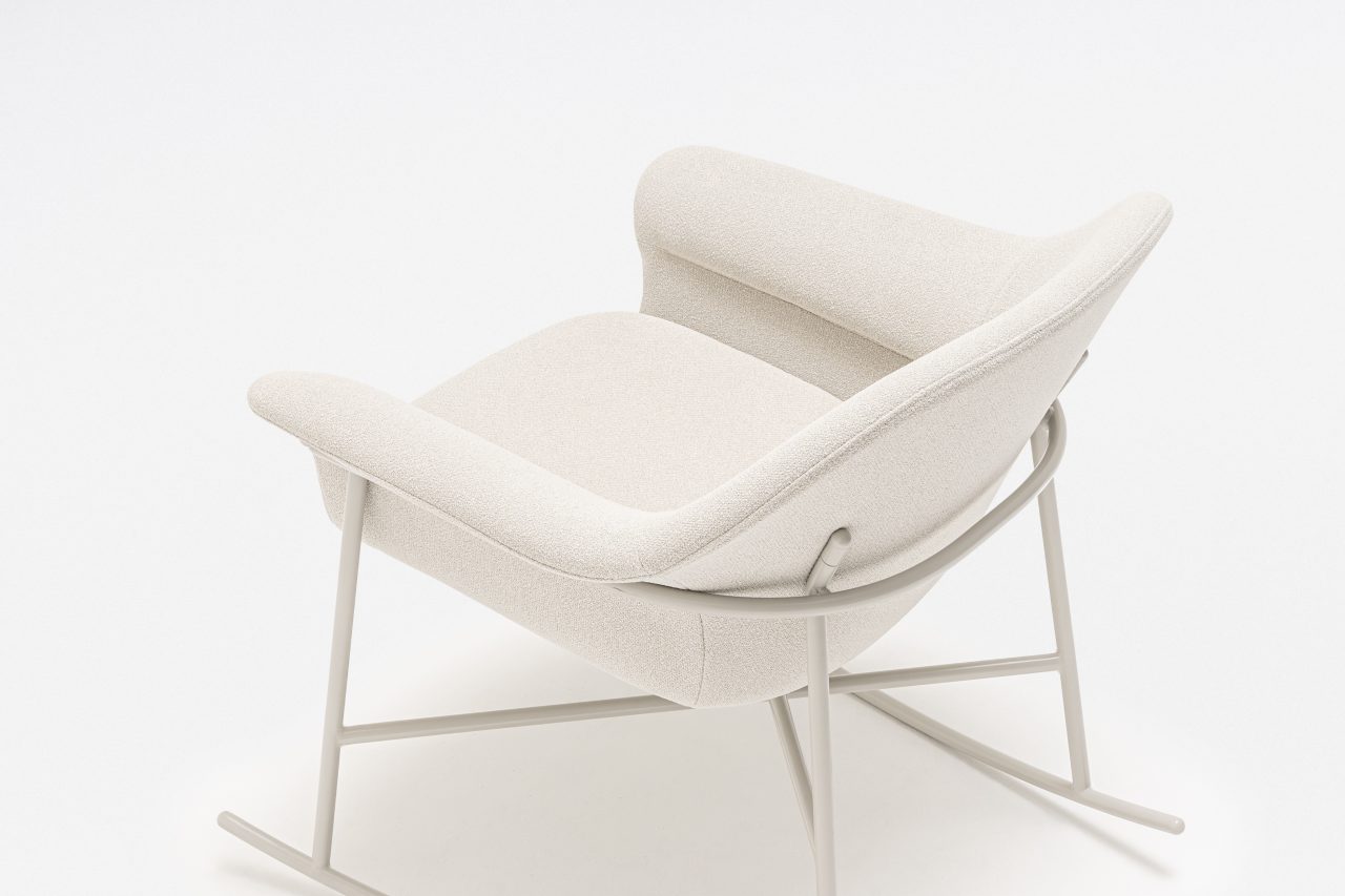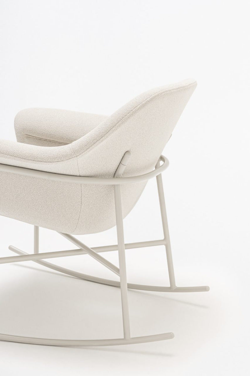 Der Ismo-Sessel mit Schaukelfunktion bietet eine breite Sitzfläche, eine sanft geneigte Rückenlehne und Armlehnen für maximalen Komfort und flexible Sitzpositionen. Ein weiches, im Lendenbereich konturiertes Kissen stützt die gesamte Wirbelsäule komfortabel.