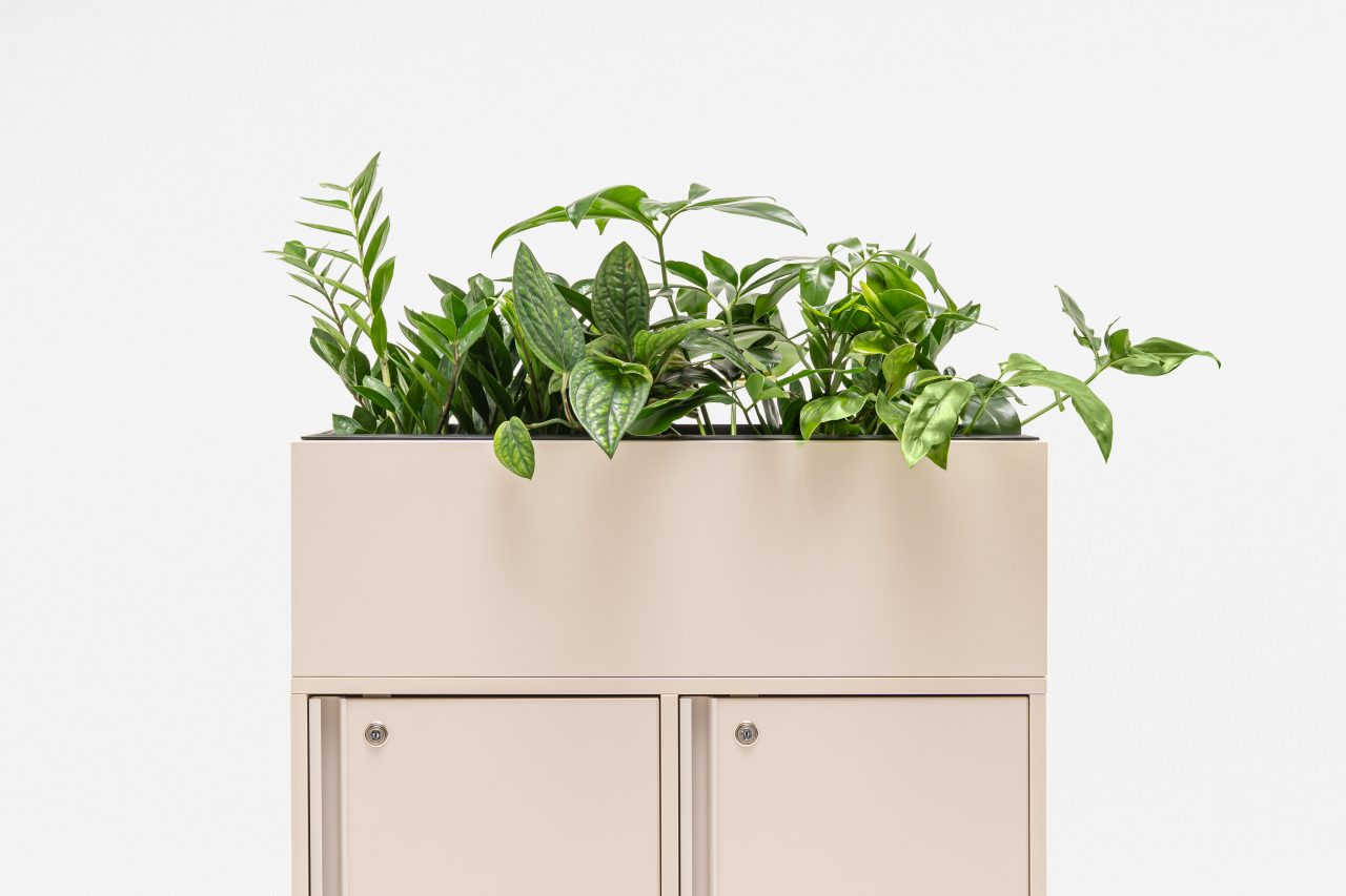 Die Erweiterungseinheit „Pflanzgefäß“ vereint Stauraum und Grün und ermöglicht es Ihnen, Ihrem Schließfachsystem natürliche Elemente hinzuzufügen. Diese Erweiterungseinheit ist so konzipiert, dass sie auf bestehenden Schließfächern platziert wird und Platz für Pflanzen bietet, um die Büroumgebung zu verschönern und gleichzeitig ein harmonisches Gesamtbild mit Ihren Aufbewahrungslösungen zu gewährleisten.