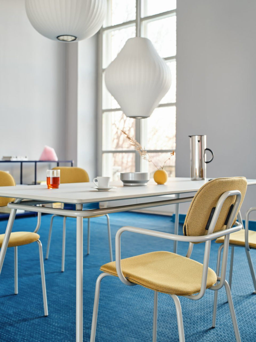 Der neue Tisch ist ein modernes und vielseitiges Möbelstück, das sich perfekt für verschiedene Umgebungen eignet. Sein Design, wie die zugehörige Abbildung zeigt, bietet eine funktionale und ästhetisch ansprechende Arbeitsfläche für die Zusammenarbeit oder das individuelle Arbeiten. Dieser Tisch fügt sich nahtlos in moderne Büro- oder Bildungseinrichtungen ein.