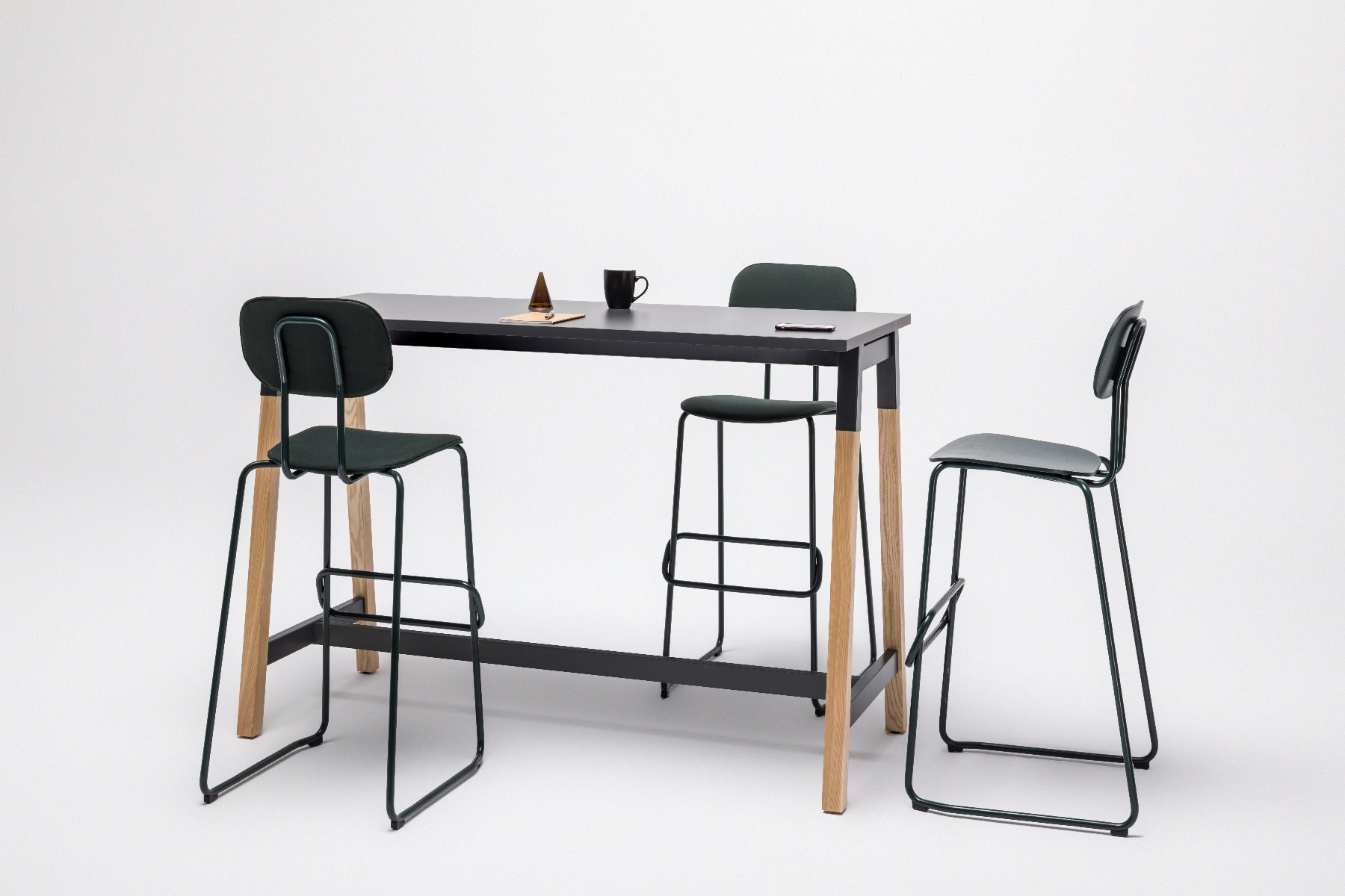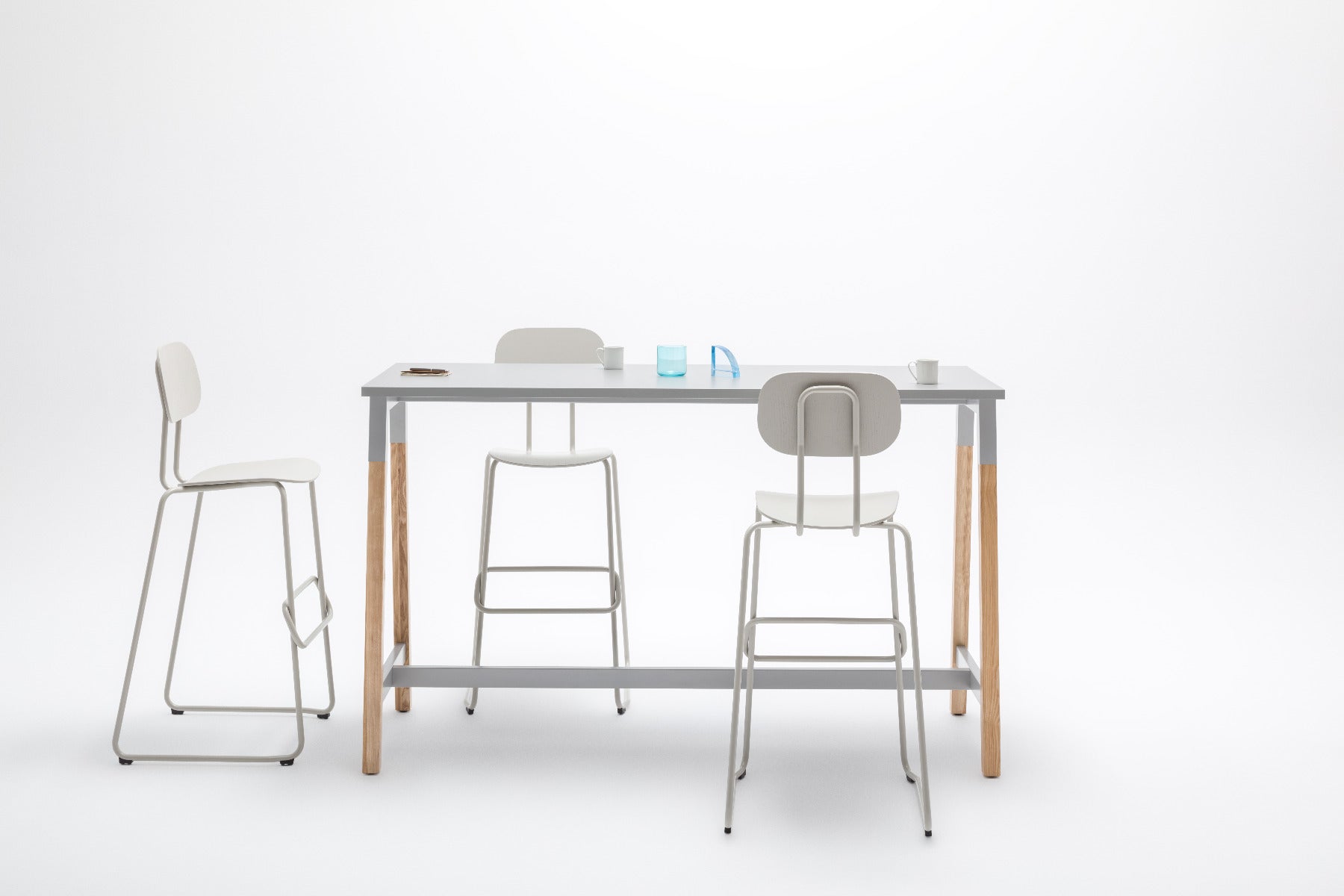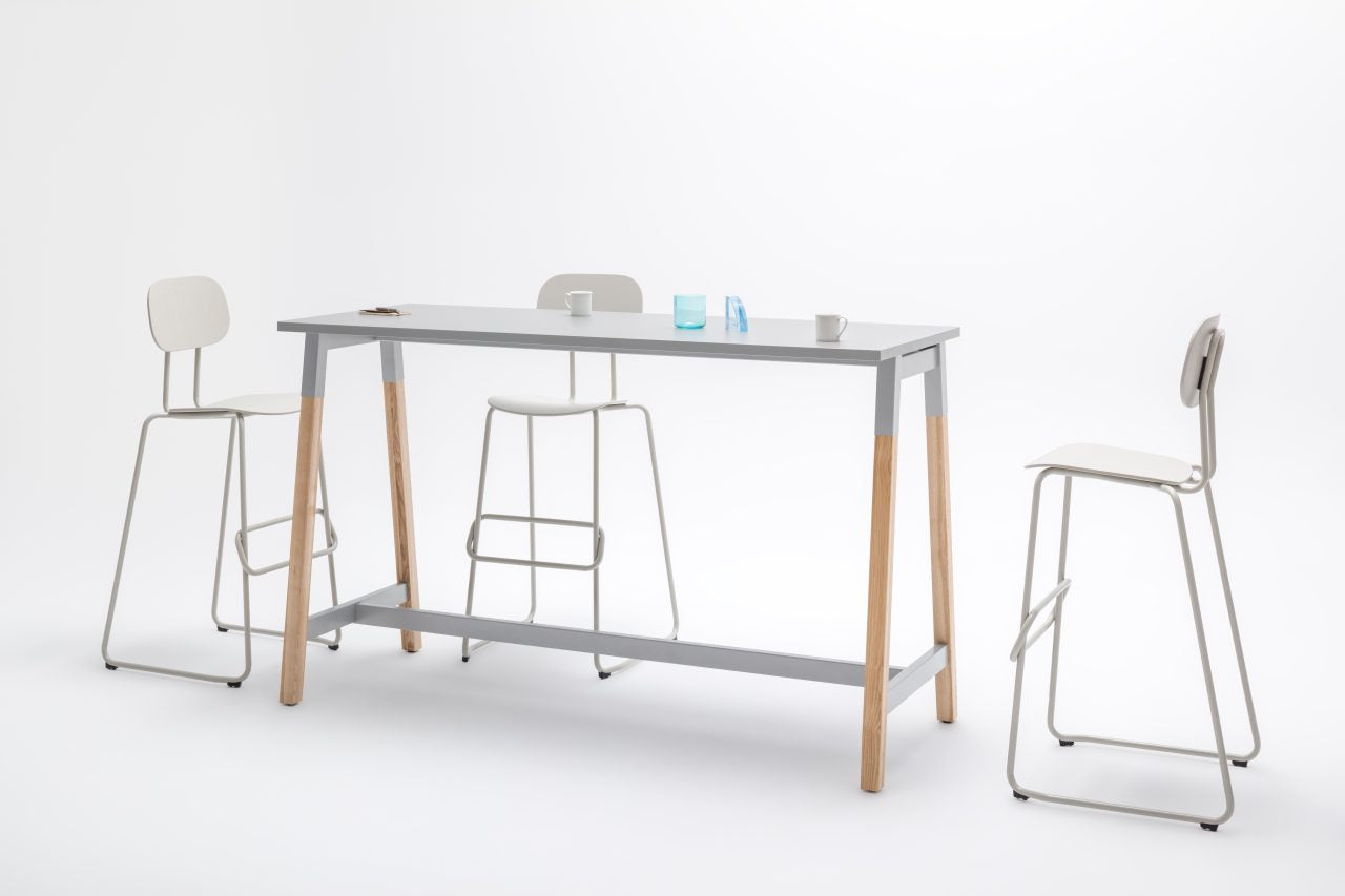 Der Stehtisch Ogi ist ein modernes und funktionales Möbelstück, das für die Zusammenarbeit und dynamische Arbeitsumgebungen konzipiert wurde. Dank seiner Höhe eignet er sich ideal für Stehbesprechungen oder die Verwendung mit Barhockern.