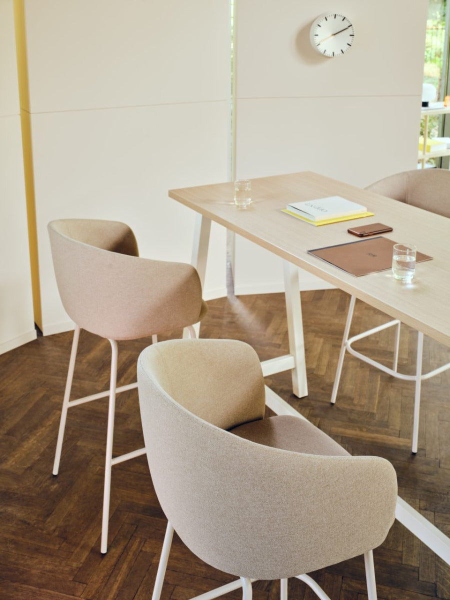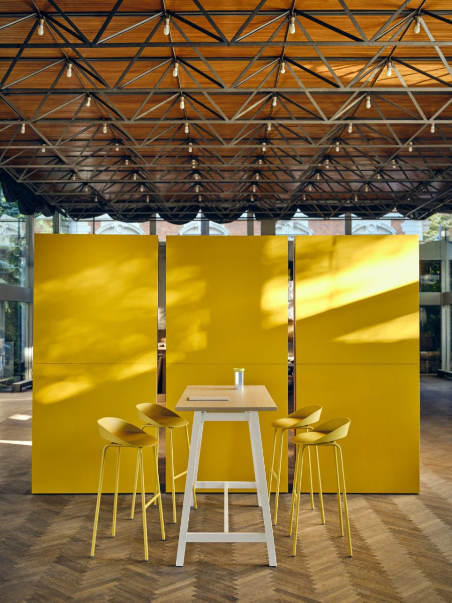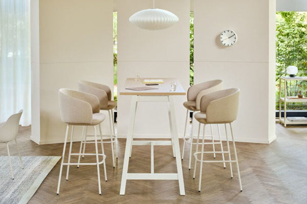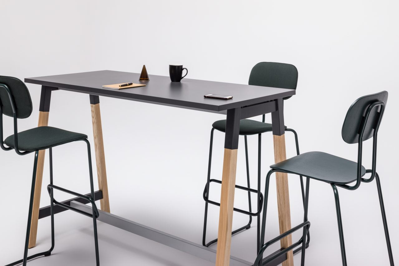 Der Stehtisch Ogi ist ein modernes und funktionales Möbelstück, das für die Zusammenarbeit und dynamische Arbeitsumgebungen konzipiert wurde. Dank seiner Höhe eignet er sich ideal für Stehbesprechungen oder die Verwendung mit Barhockern.