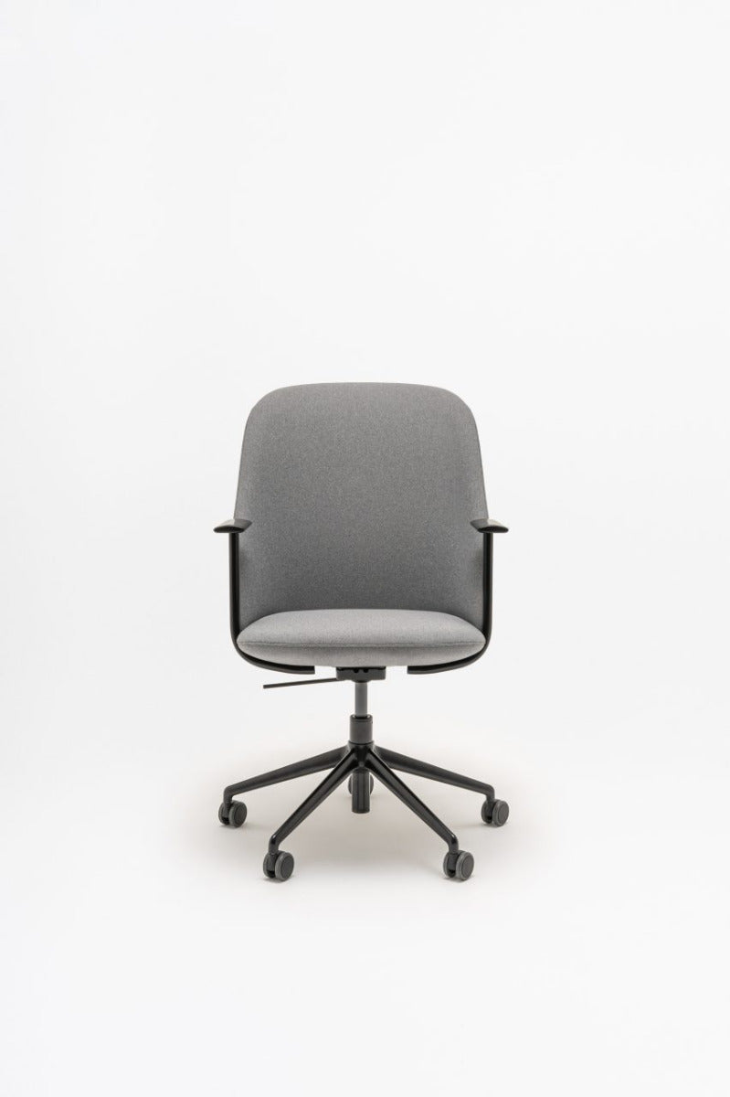 Mit Paralel wollte Yonoh Studio eine völlig neue Kollektion vielseitiger und organischer Sitzmöbel schaffen, die sich komfortabel an den Körper des Nutzers anpassen. Dieses einfache, aber anspruchsvolle Konzept wird durch die perfekte Balance von Form und Funktion erreicht. In der höhenverstellbaren Ausführung lässt sich der Sitz individuell an die Bedürfnisse des Nutzers anpassen. Die hohe Rückenlehne schafft eine geschützte Nische und bietet bequeme Unterstützung für den gesamten Rücken. In dieser Version bietet Paralel maximale Funktionalität und Komfort und bewahrt gleichzeitig seinen professionellen und repräsentativen Charakter. Es eignet sich ideal für Büro- und Konferenzräume.