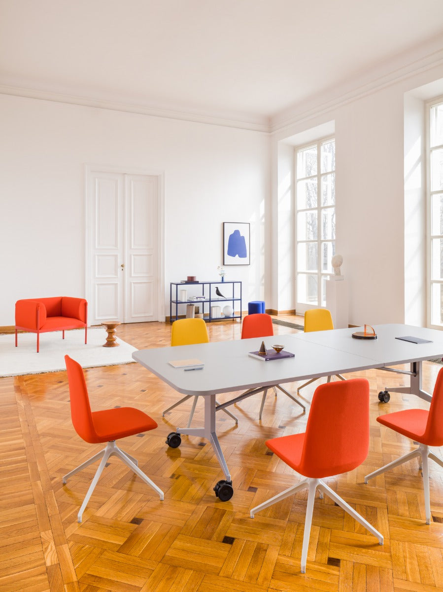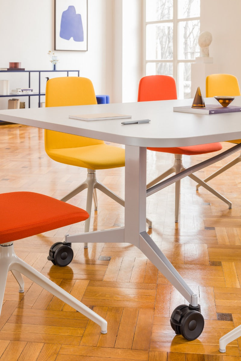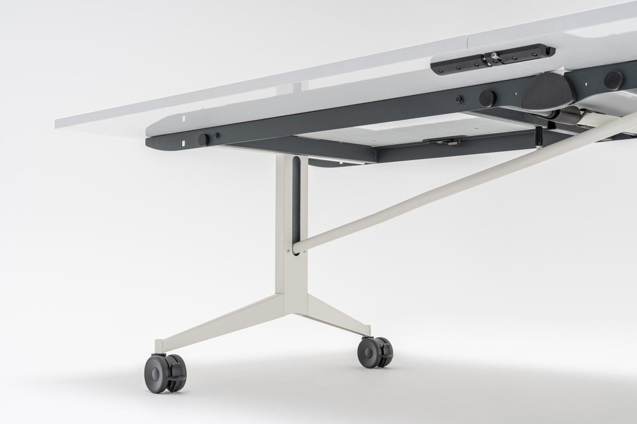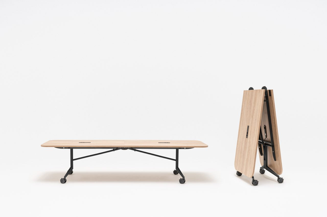 Plex ist ein kompakter Tisch, der sich ideal für Konferenzräume, Arbeitszimmer und Großraumbüros eignet. Er ist der perfekte Begleiter für Meetings, Workshops und Schulungen. Dank des ausgeklügelten Klappmechanismus lässt sich der Tisch von nur einer Person bewegen. Zusammengeklappt reduziert sich die Breite auf 50 Zentimeter, wodurch er sich leicht durch Türen transportieren, mit einem Aufzug verstauen oder platzsparend aufbewahren lässt. Plex ist mit einem Schutzmechanismus ausgestattet, der ein Einklemmen der Hand beim Ein- und Ausklappen verhindert. Das .mdd-Sortiment umfasst drei verschiedene Formen: rechteckig, rechteckig mit abgerundeten Kanten und tonnenförmig. Darüber hinaus stehen drei Oberflächen zur Auswahl: Melaminplatte, das Nano-Tech-Laminat Fenix, das sich durch hohe Kratz- und Abriebfestigkeit auszeichnet, sowie eine Whiteboard-Oberfläche, auf der Notizen direkt erstellt werden können. Das universelle Design und die monochromen Farben sorgen dafür, dass sich der Tisch harmonisch in jedes Interieur einfügt und ein ästhetisch ansprechendes Gesamtbild ergibt.