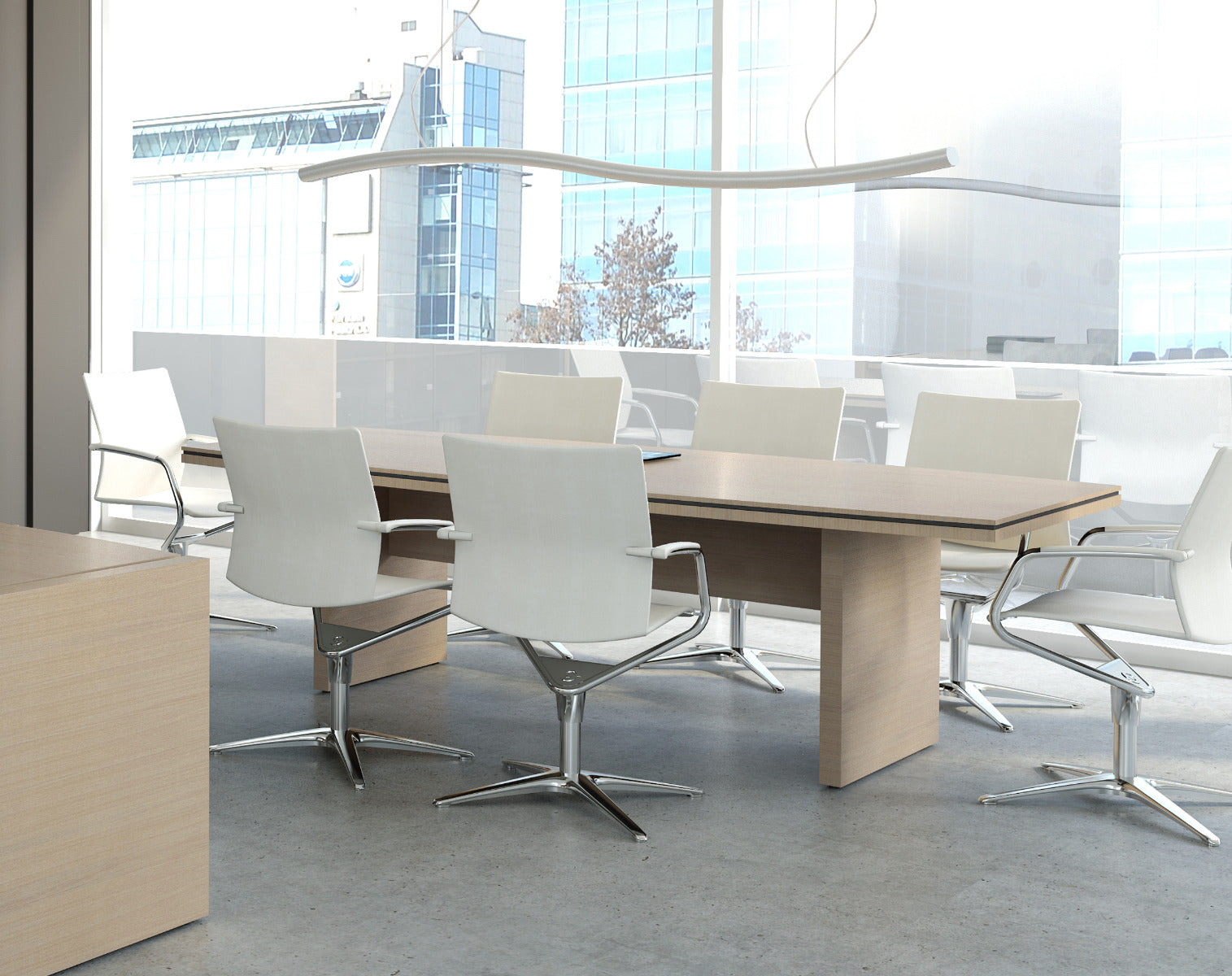 Der Status-Tisch ist ein funktionales und modernes Möbelstück, ideal für Konferenz- und Besprechungsräume. Sein robustes Design ist auf dem Bild deutlich zu erkennen und vermittelt eine stabile und zugleich elegante Grundlage für produktive Gespräche.
