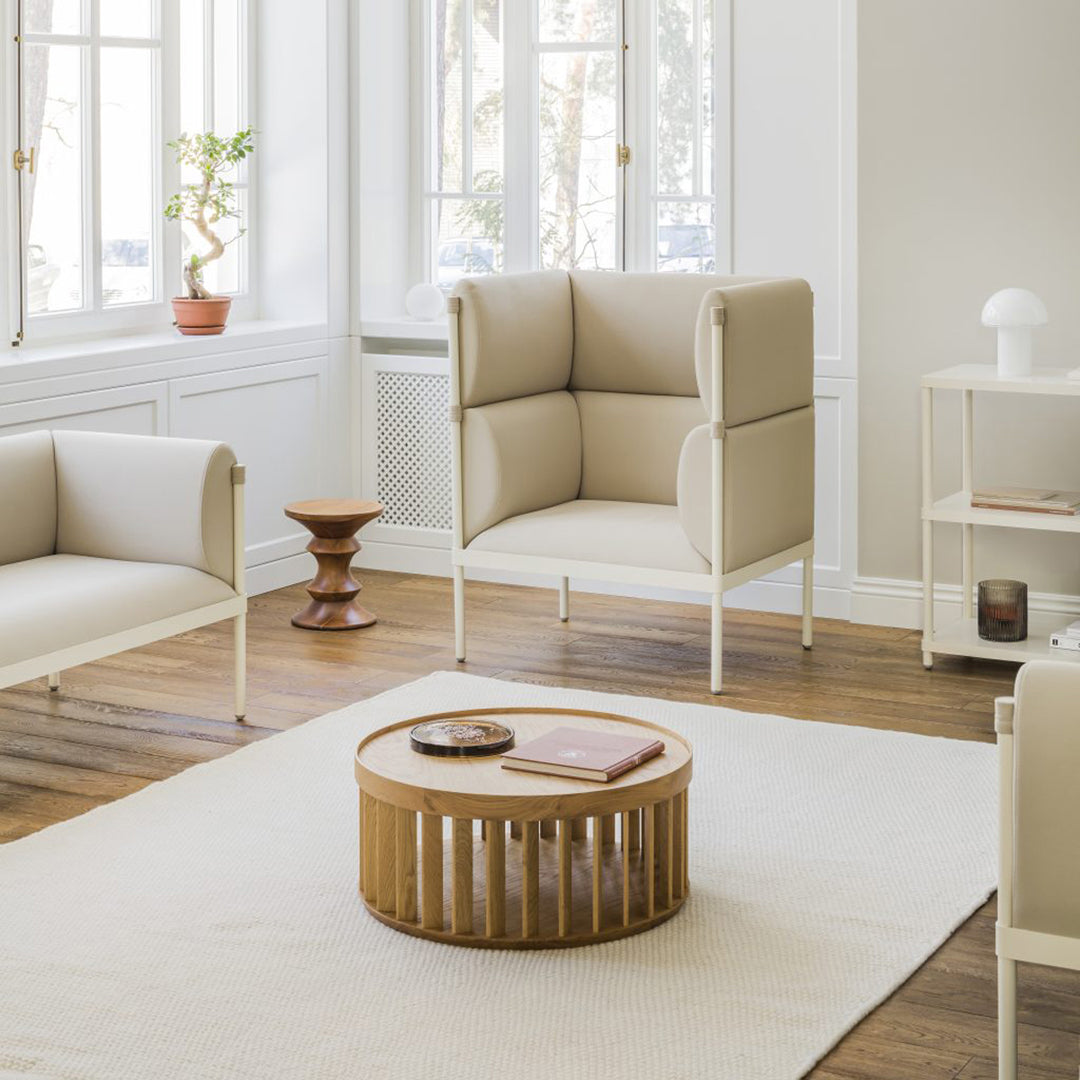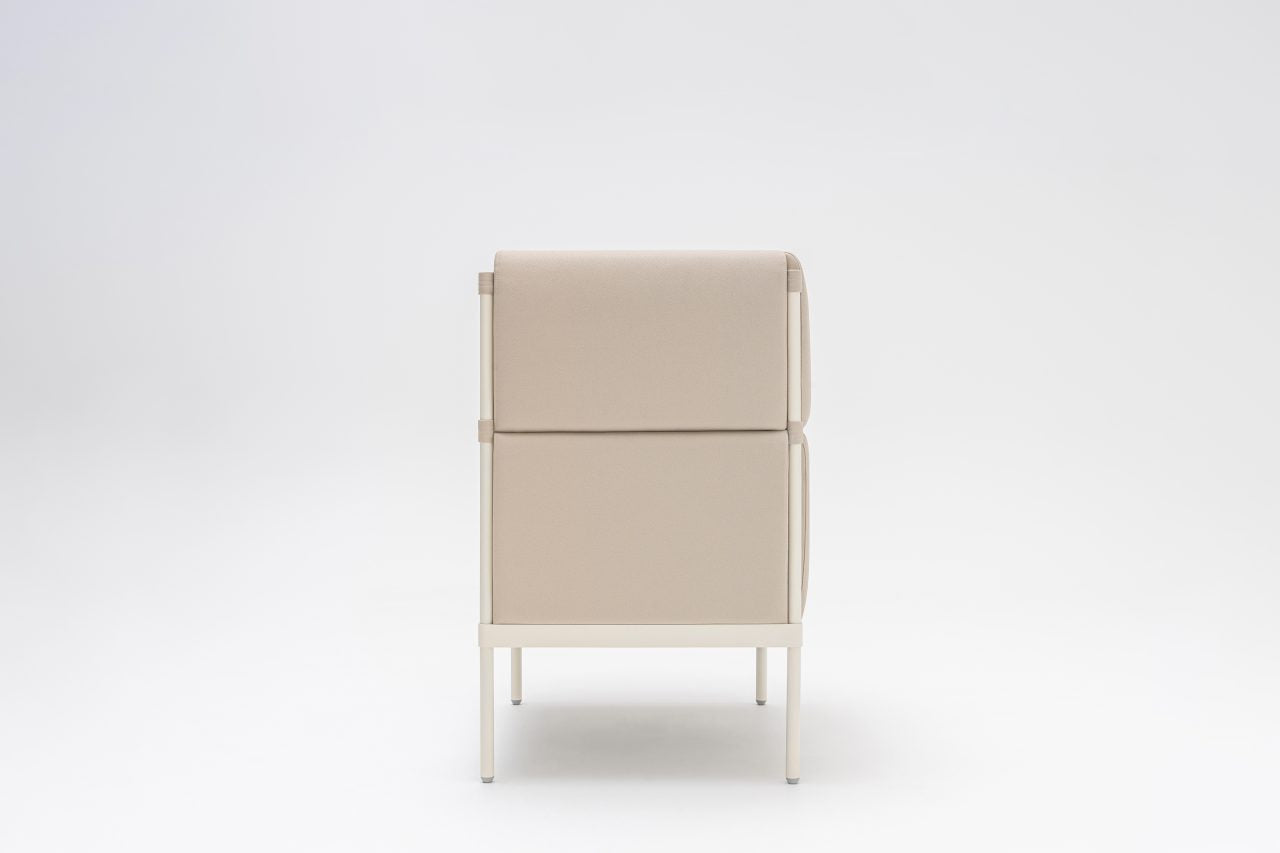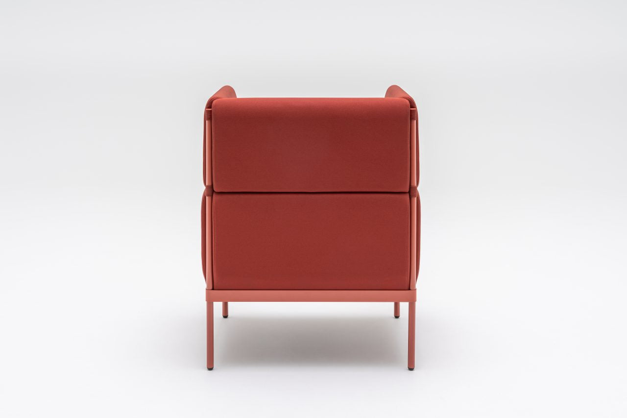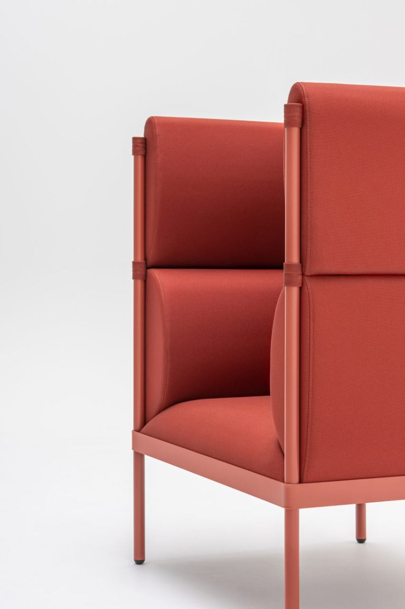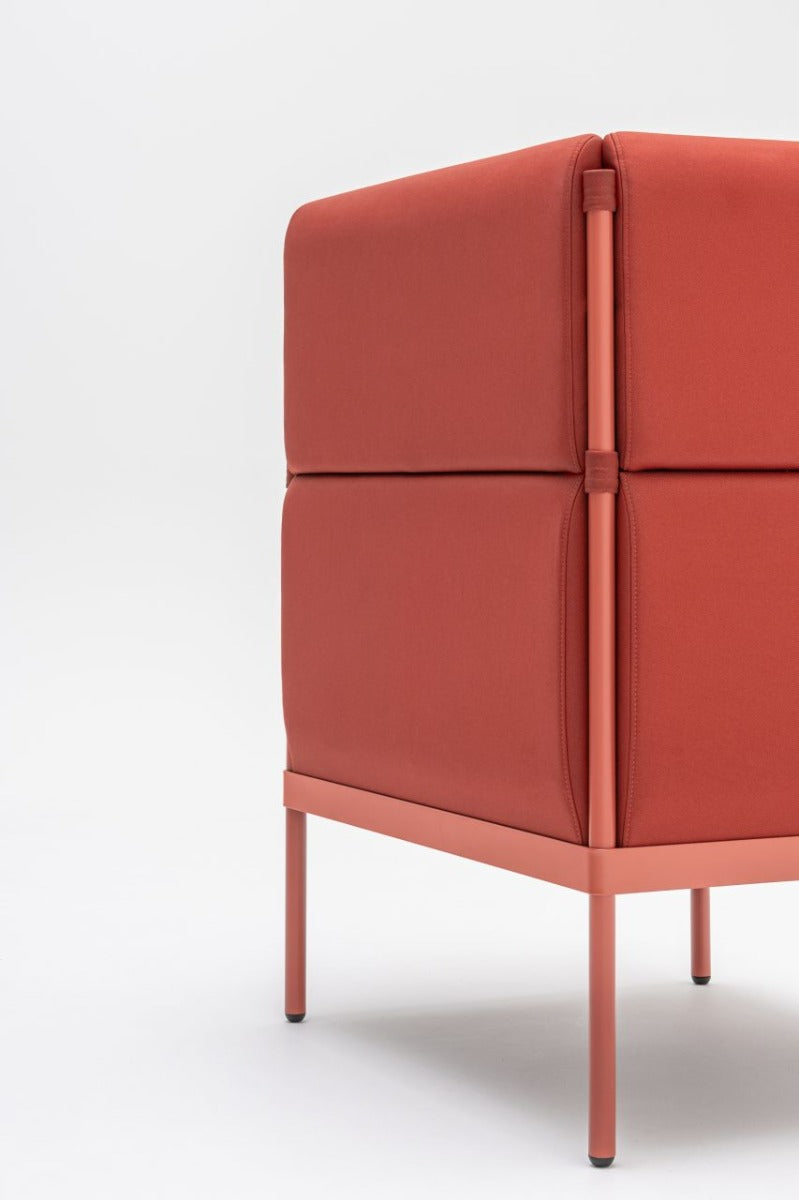 Der Hochlehner-Sessel Stilt bietet eine komfortable und private Sitzgelegenheit. Seine erhöhte Rückenlehne vermittelt ein Gefühl der Geborgenheit und eignet sich perfekt für konzentriertes Arbeiten oder entspanntes Entspannen im Büro oder in der Lounge. Das Design, wie auf dem Bild zu sehen, zeichnet sich durch klare Linien und eine massive, gepolsterte Form aus, die von sichtbaren Beinen (Stilts) getragen wird und so moderne Ästhetik mit einladendem Komfort verbindet.