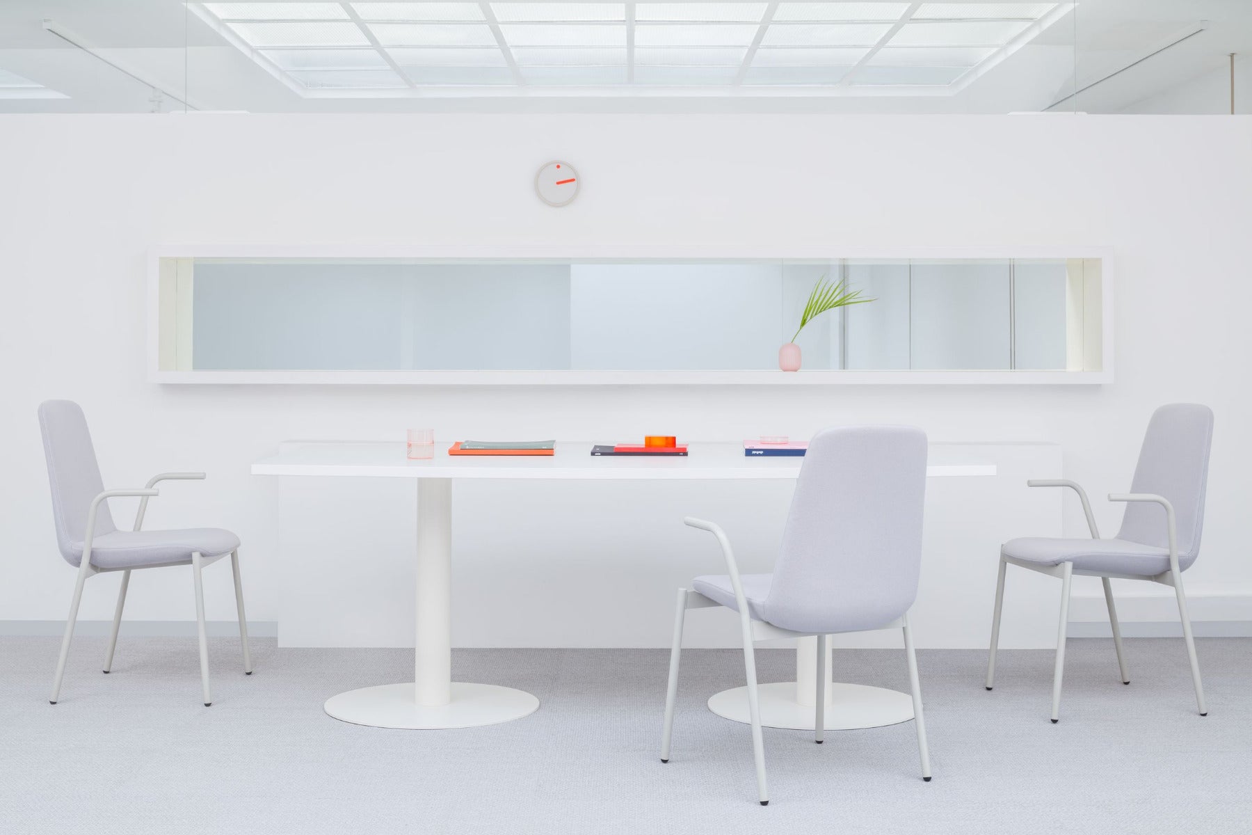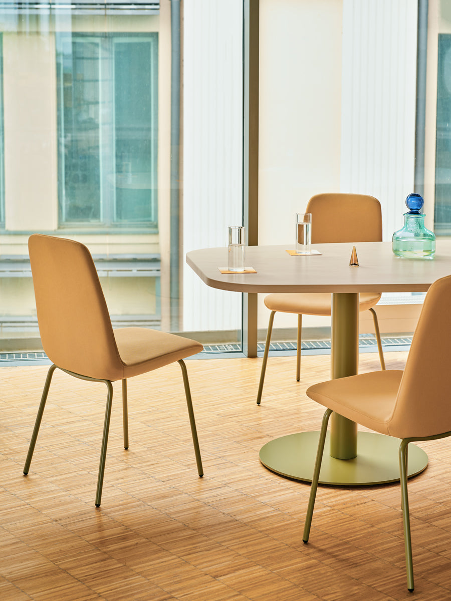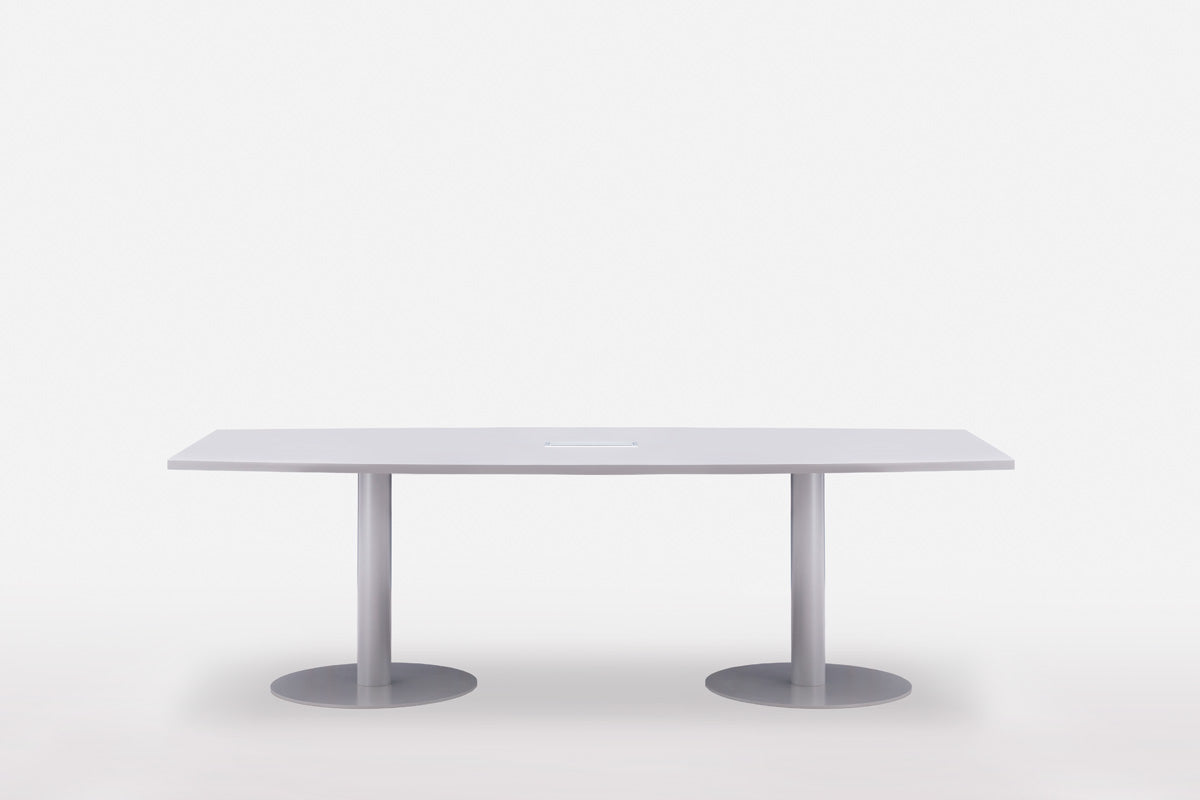 Der Tack-Tisch mit seinem eleganten Scheibenfuß ist als moderner Besprechungstisch konzipiert und eignet sich für verschiedene Büro- und Konferenzumgebungen. Sein klares Design macht ihn zu einem vielseitigen Möbelstück für kollaborative Arbeitsbereiche.