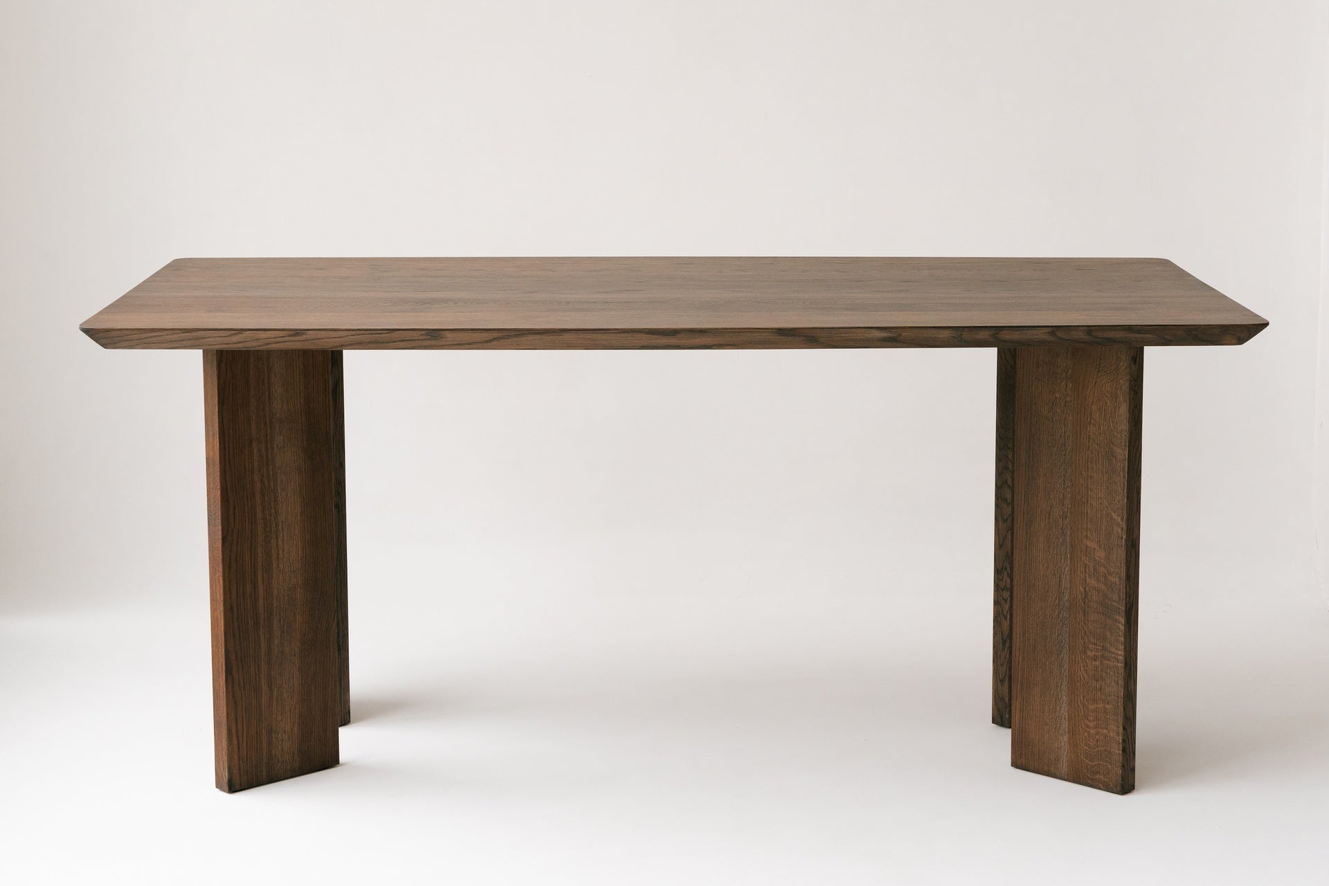 Der Esstisch Kala vereint auf meisterhafte Weise geometrische Präzision mit raffinierten organischen Details. Seine markante, tonnenförmige Tischplatte, die die geradlinige Form der Beine sanft abmildert, verleiht diesem Möbelstück eine perfekte Harmonie aus Leichtigkeit und Charakter. Jede Stelle der massiven Eiche offenbart eine tiefe, natürliche Maserung, die durch die spezielle Oberflächenbehandlung die authentische Schönheit und die edle Textur des Materials hervorhebt. Verwurzelt in traditioneller Handwerkskunst, besticht der Kala-Tisch durch sorgfältig geglättete Kanten und präzise Verbindungen, die von Handarbeit und Leidenschaft zeugen. Seine zeitlose Form wird zum Mittelpunkt Ihrer Wohnkultur und schafft einen warmen, einladenden Raum, in dem sich das Leben gerne trifft. Mit einem Design, das Tradition respektiert und gleichzeitig moderne Ästhetik aufgreift, ist dieser Tisch darauf ausgelegt, Ihr Interieur über Jahre hinweg mit Langlebigkeit und Eleganz zu prägen.