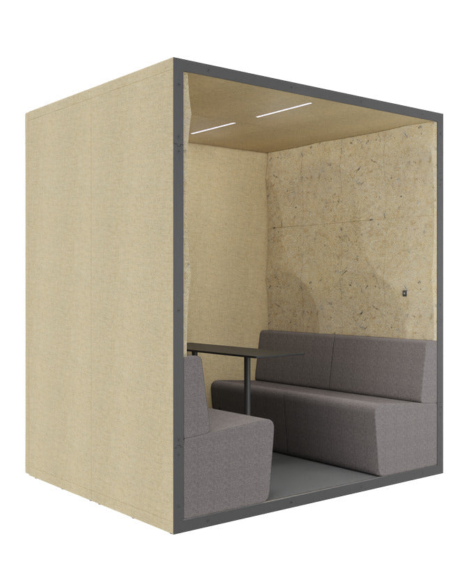 VANK ELLIPSE Open Acoustic Podoffers a strategic balance between accessibility and acoustic comfort, making it an essential addition to any creative workspace. Designed for 2 or 4 people, this doorless version features a solid upholstered back wall to create an inviting semi-private niche. By providing a dedicated area for spontaneous collaboration or focused "heads-down" work, it effectively boosts team creativity while significantly lowering the ambient noise levels of open-plan environments.