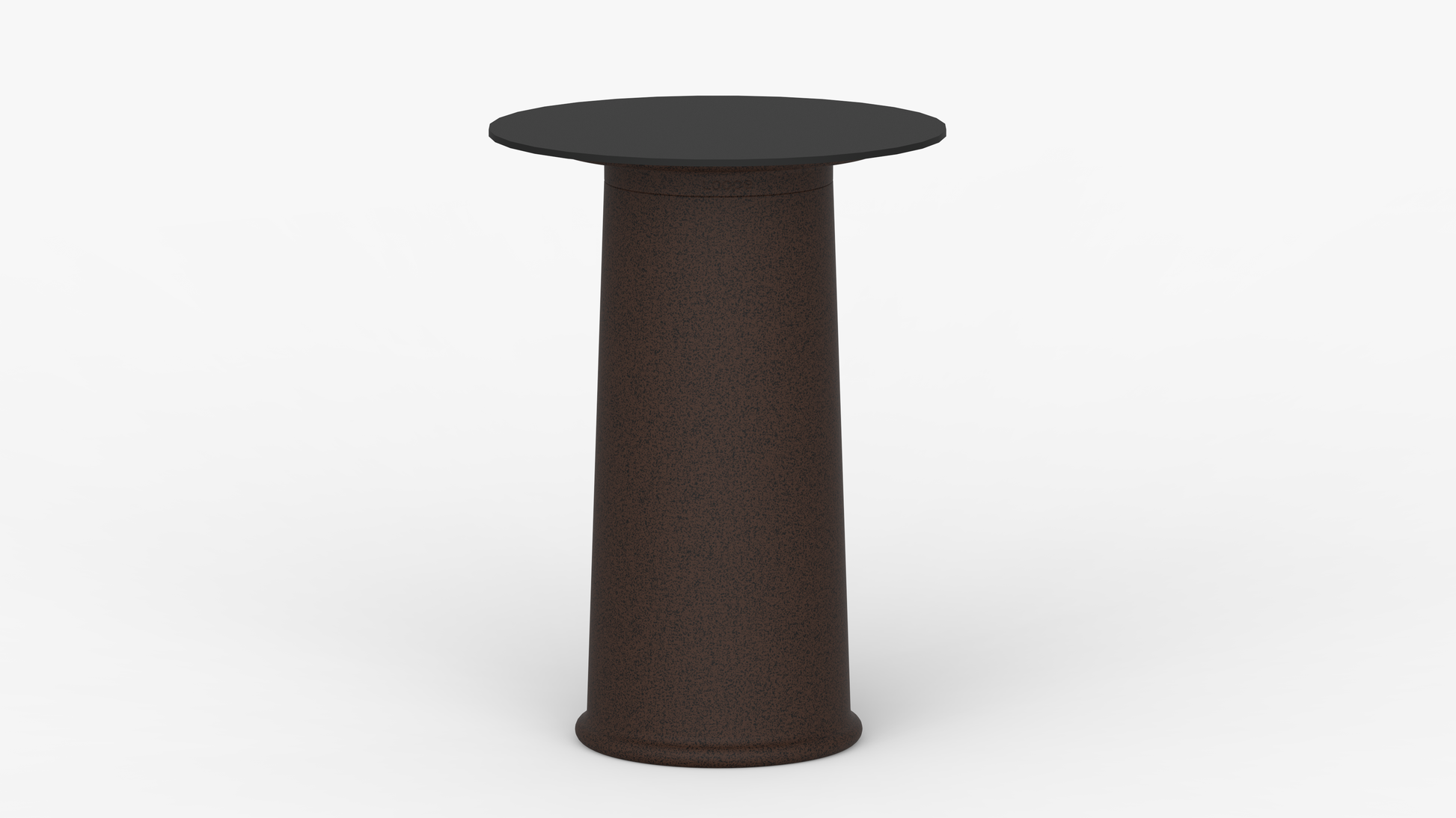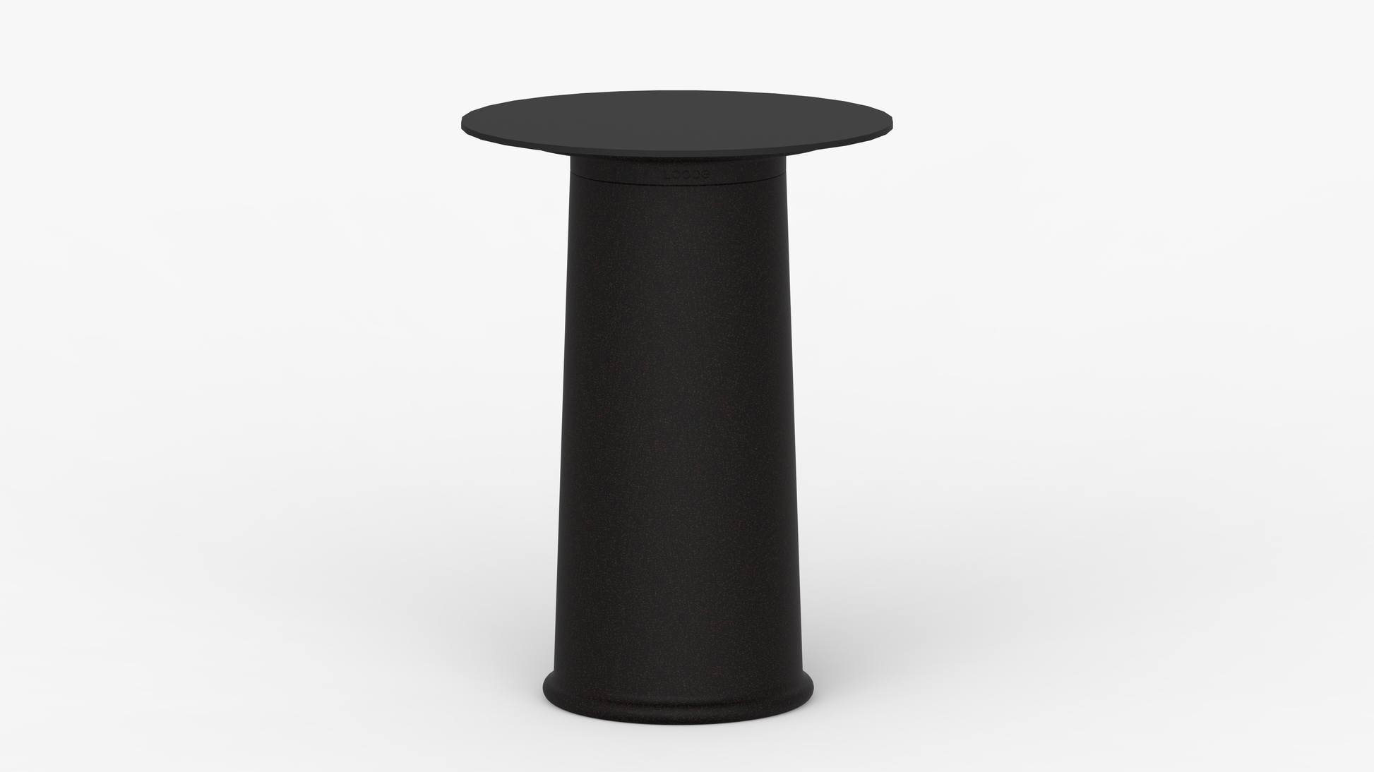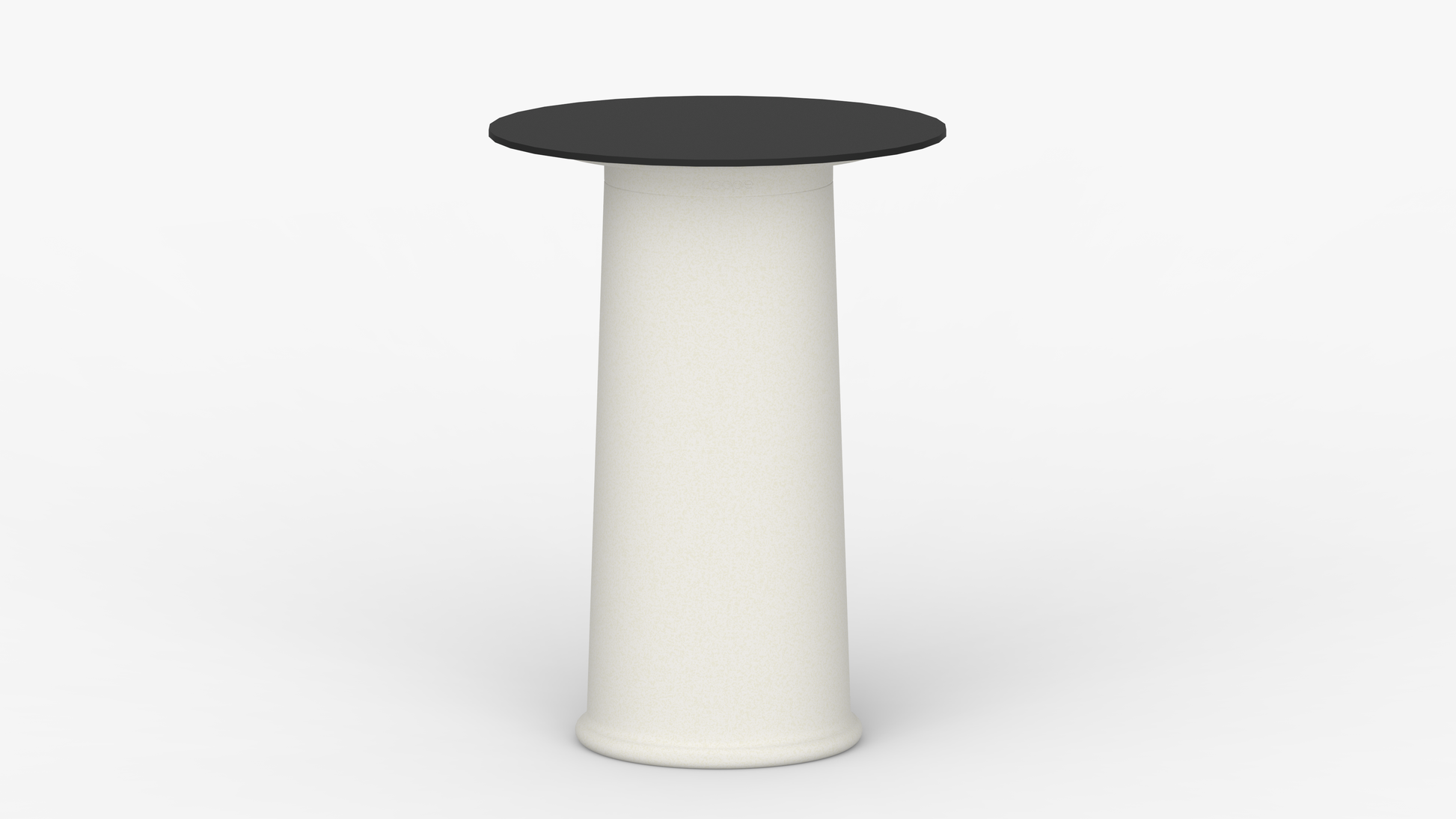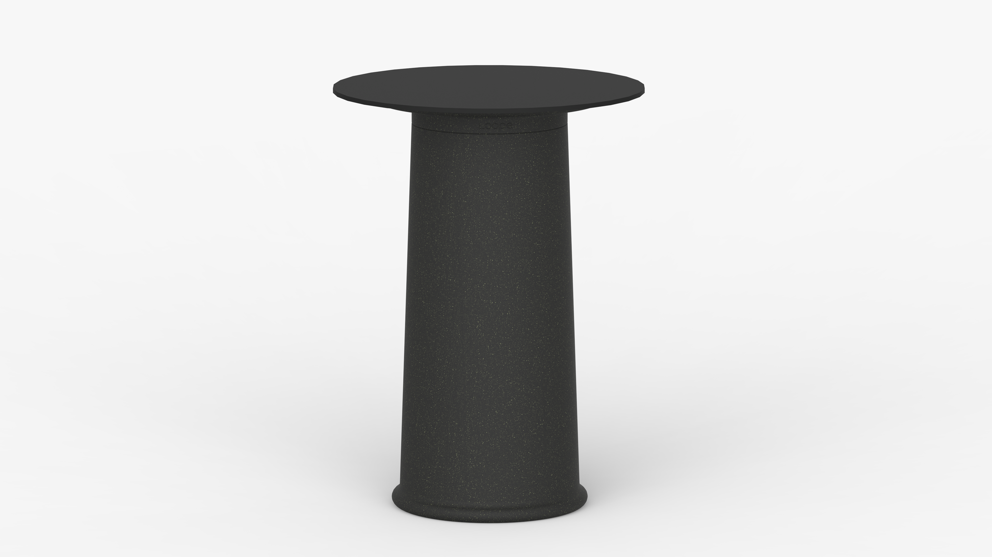 Tisch mit einer großen, massiven Säule aus recyceltem Polyethylen.
