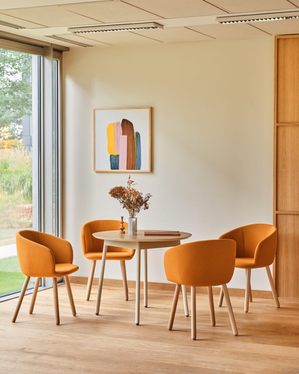 Der Stuhl Grace besticht durch sein komfortables Design auf einem klassischen Holzgestell und vereint modernen Stil mit natürlicher Eleganz. Er bietet eine anspruchsvolle Sitzlösung für verschiedenste Innenräume.
