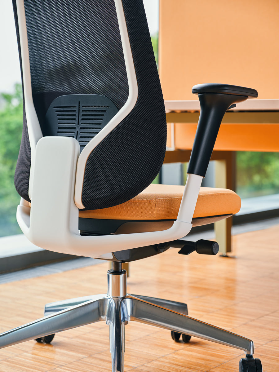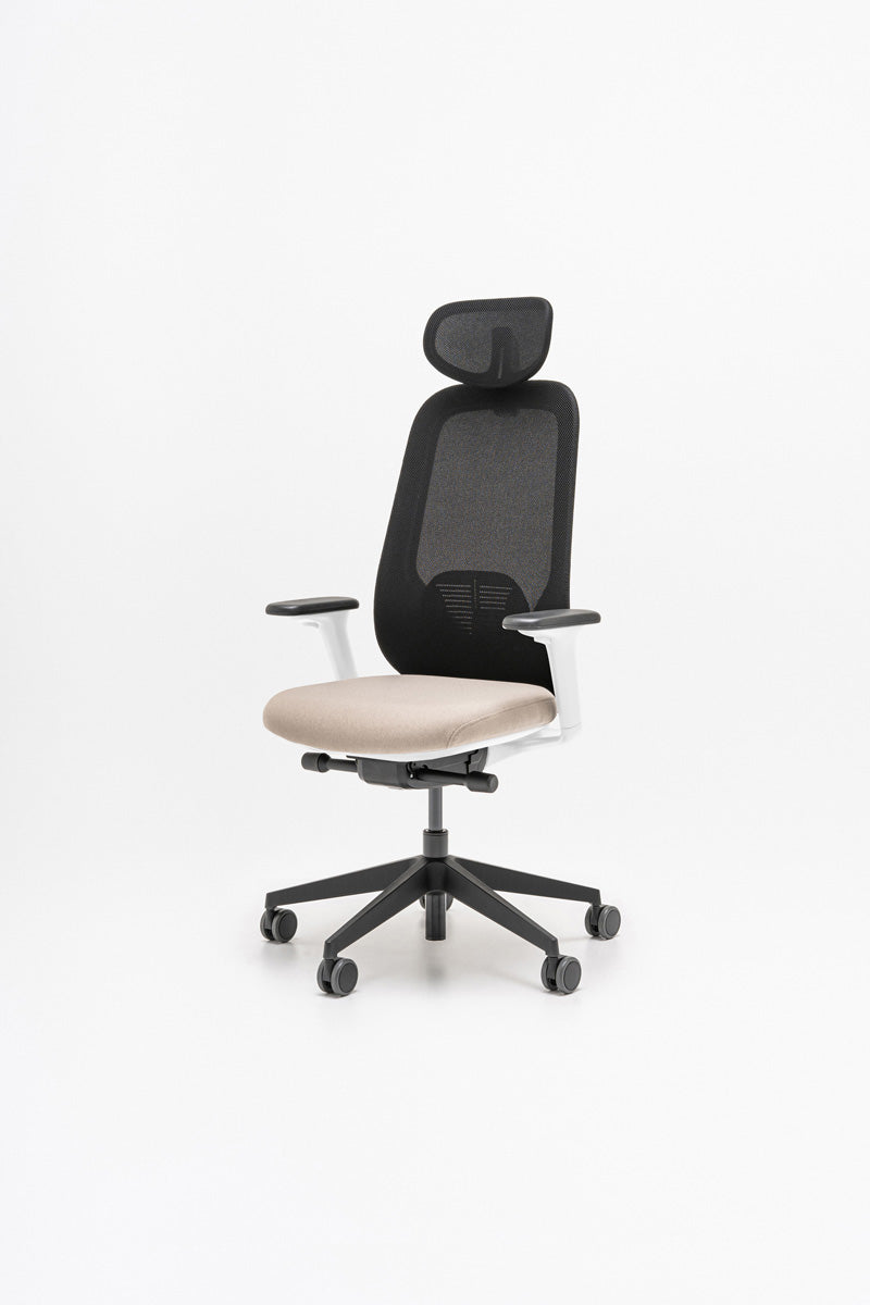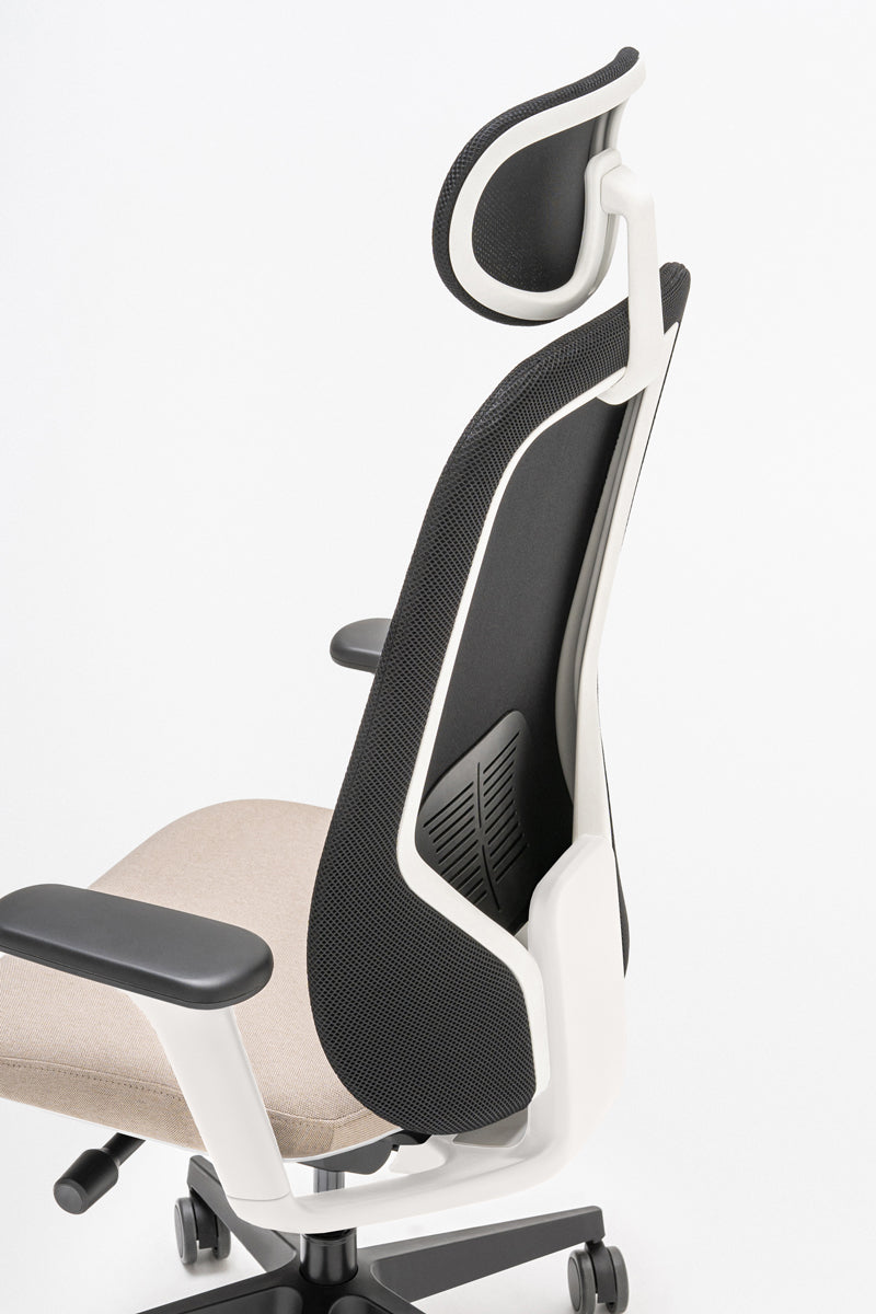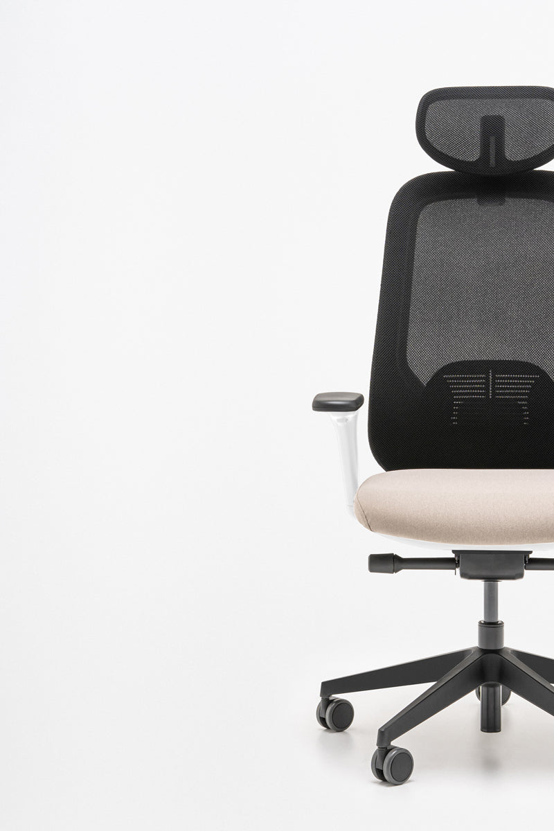 Der Stuhl Iris vereint Funktionalität und Eleganz und wurde mit Blick auf Ergonomie entwickelt. Mit seiner höhenverstellbaren, atmungsaktiven Netzrückenlehne und der tiefenverstellbaren Lendenwirbelstütze passt er sich den natürlichen Krümmungen der Wirbelsäule an und bietet so den ganzen Tag über komfortablen Halt. Die 4D-Armlehnen, der Synchronmechanismus mit einstellbarer Federspannung und der tiefenverstellbare Sitz ermöglichen eine individuelle Anpassung an die Bedürfnisse des Nutzers. Eine optionale Kopfstütze bietet zusätzliche Unterstützung für Nacken und Kopf.