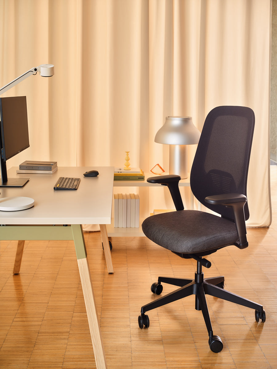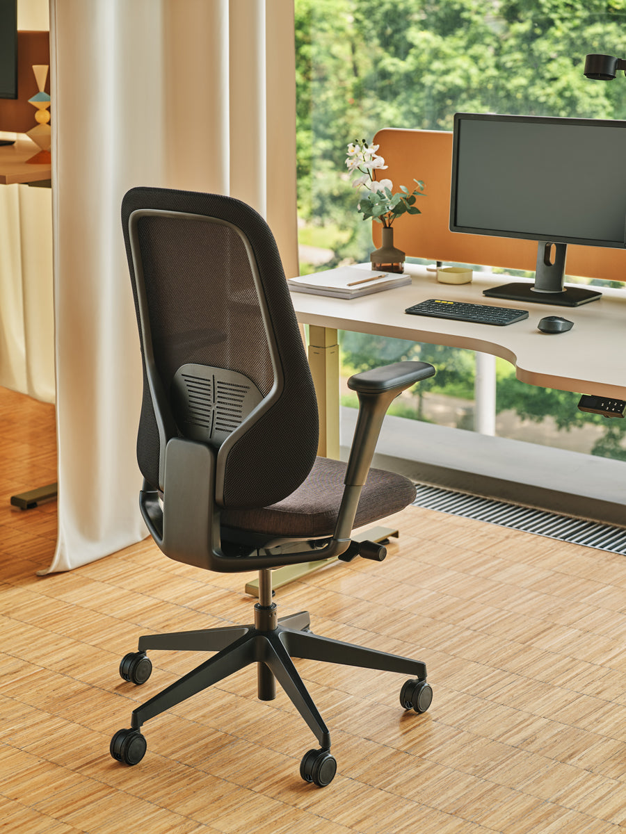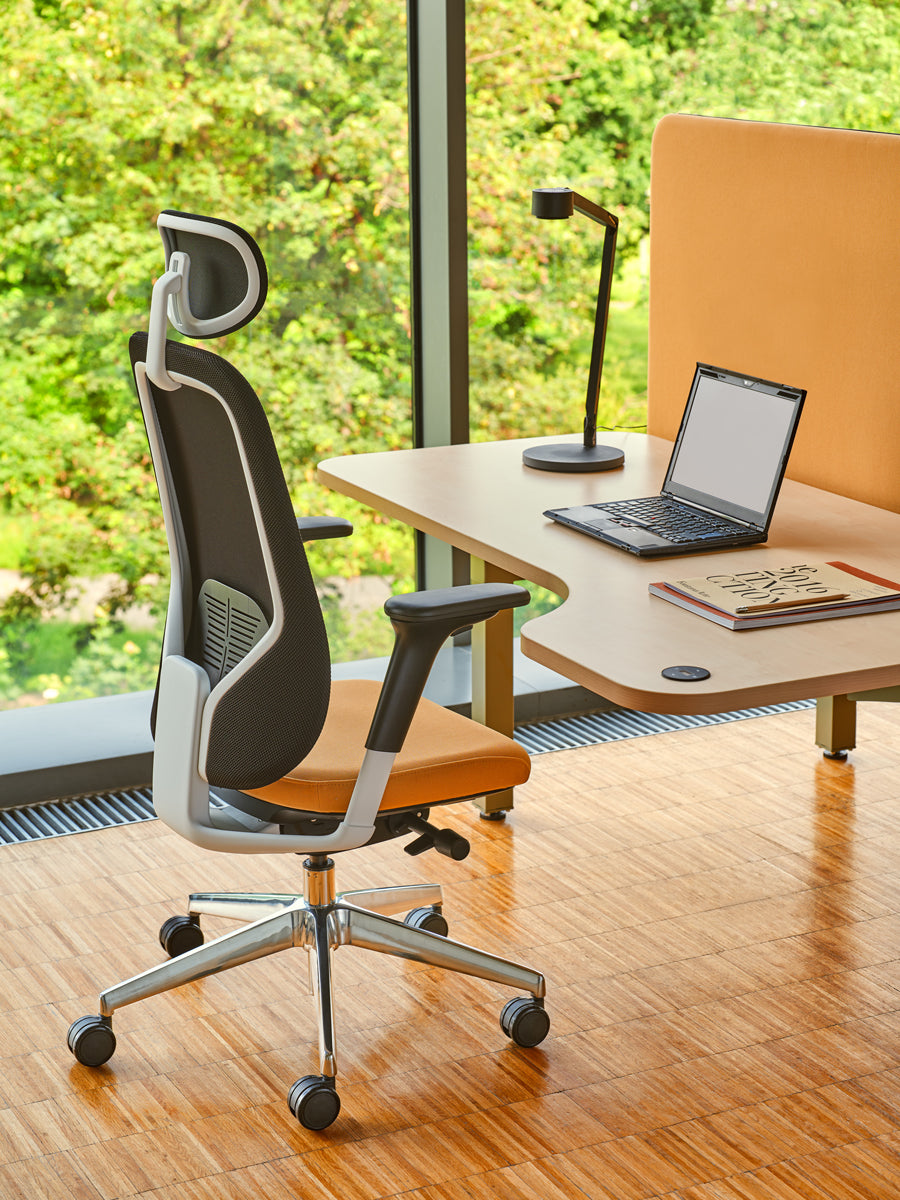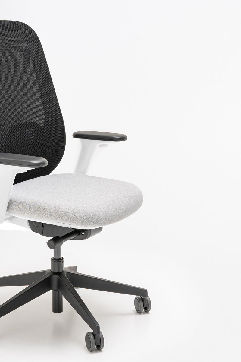Der Stuhl Iris vereint Funktionalität und Eleganz und wurde mit Blick auf Ergonomie entwickelt. Mit seiner höhenverstellbaren, atmungsaktiven Netzrückenlehne und der tiefenverstellbaren Lendenwirbelstütze passt er sich den natürlichen Krümmungen der Wirbelsäule an und bietet so den ganzen Tag über komfortablen Halt. Die 4D-Armlehnen, der Synchronmechanismus mit einstellbarer Federspannung und der tiefenverstellbare Sitz ermöglichen eine individuelle Anpassung an die Bedürfnisse des Nutzers. Eine optionale Kopfstütze bietet zusätzliche Unterstützung für Nacken und Kopf.