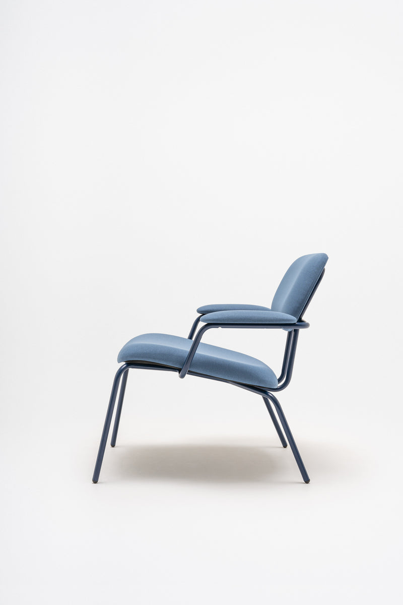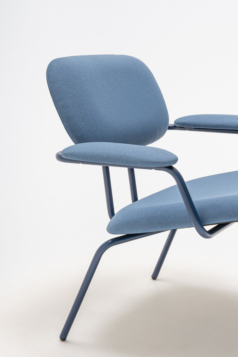 Der Lounge-Sessel wurde als Teil der New School-Familie entworfen. Die Designer legten besonderen Wert auf hohen Sitzkomfort. Sie behielten die charakteristischen Merkmale der Kollektion bei: die Silhouette und das Gestell aus Metallrohren. In dieser Ausführung wurden sie jedoch so angepasst, dass sie dem Nutzer maximalen Komfort bieten. Eine breitere Sitzfläche und der elegante Winkel laden zum Zurücklehnen und Entspannen ein. Der Sessel kann optional mit Armlehnen und einer separaten Fußstütze ausgestattet werden, was den Komfort zusätzlich erhöht. Diese Version des New School-Sessels ist die perfekte Wahl für Lounge-Bereiche, Wohnzimmer, Lobbys und Cafés – überall dort, wo ein gemütlicher Ort zum Verweilen und Entspannen geschaffen werden soll.