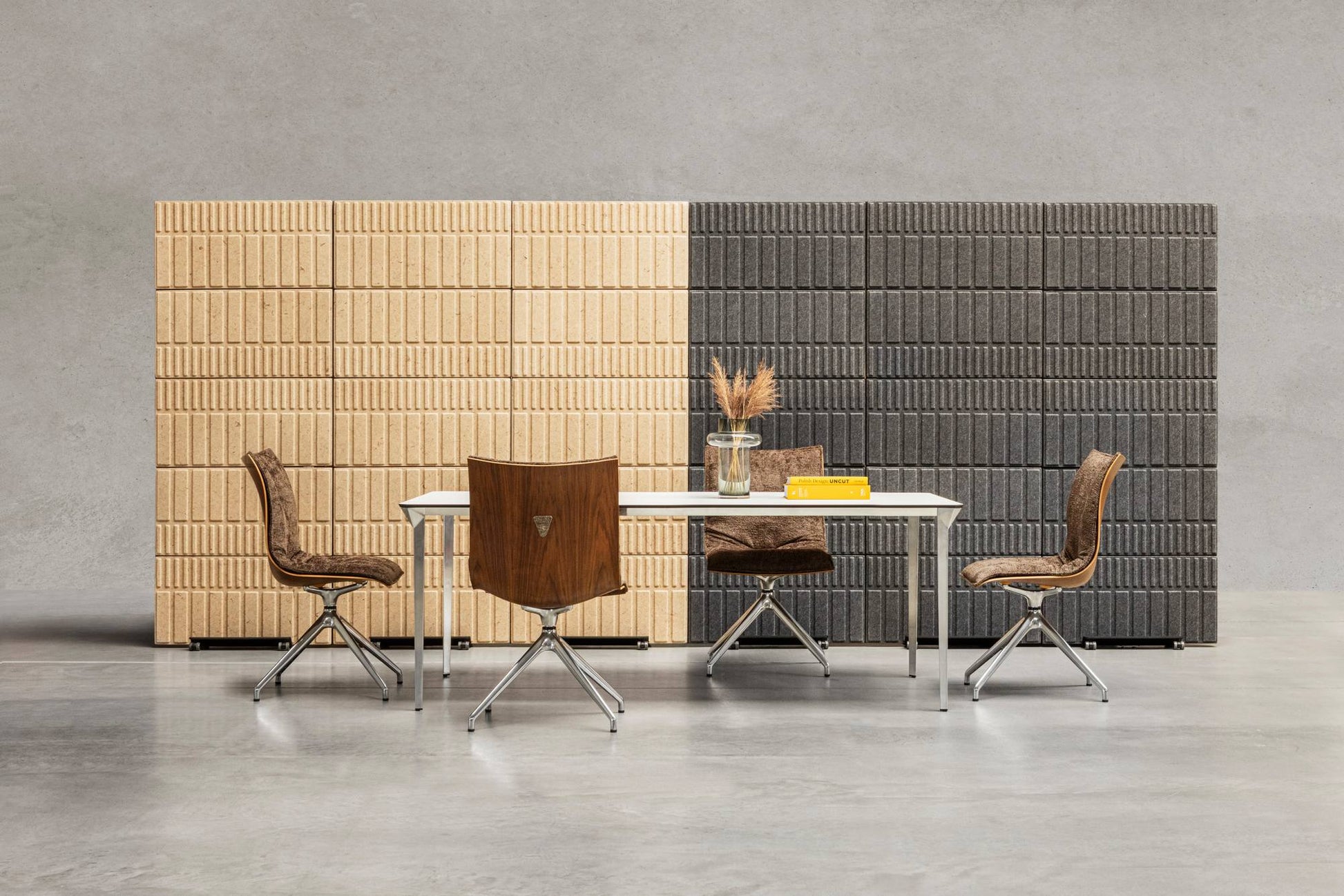 VANK_PEEL Konferenzstühle verleihen modernen Besprechungsräumen Eleganz und Ausgewogenheit. Ihre harmonische Form, die fließenden 3D-Sperrholzlinien und die natürliche Furniermaserung unterstreichen den organischen Charakter der Kollektion, während die präzise Verarbeitung für ein edles und professionelles Erscheinungsbild sorgt.