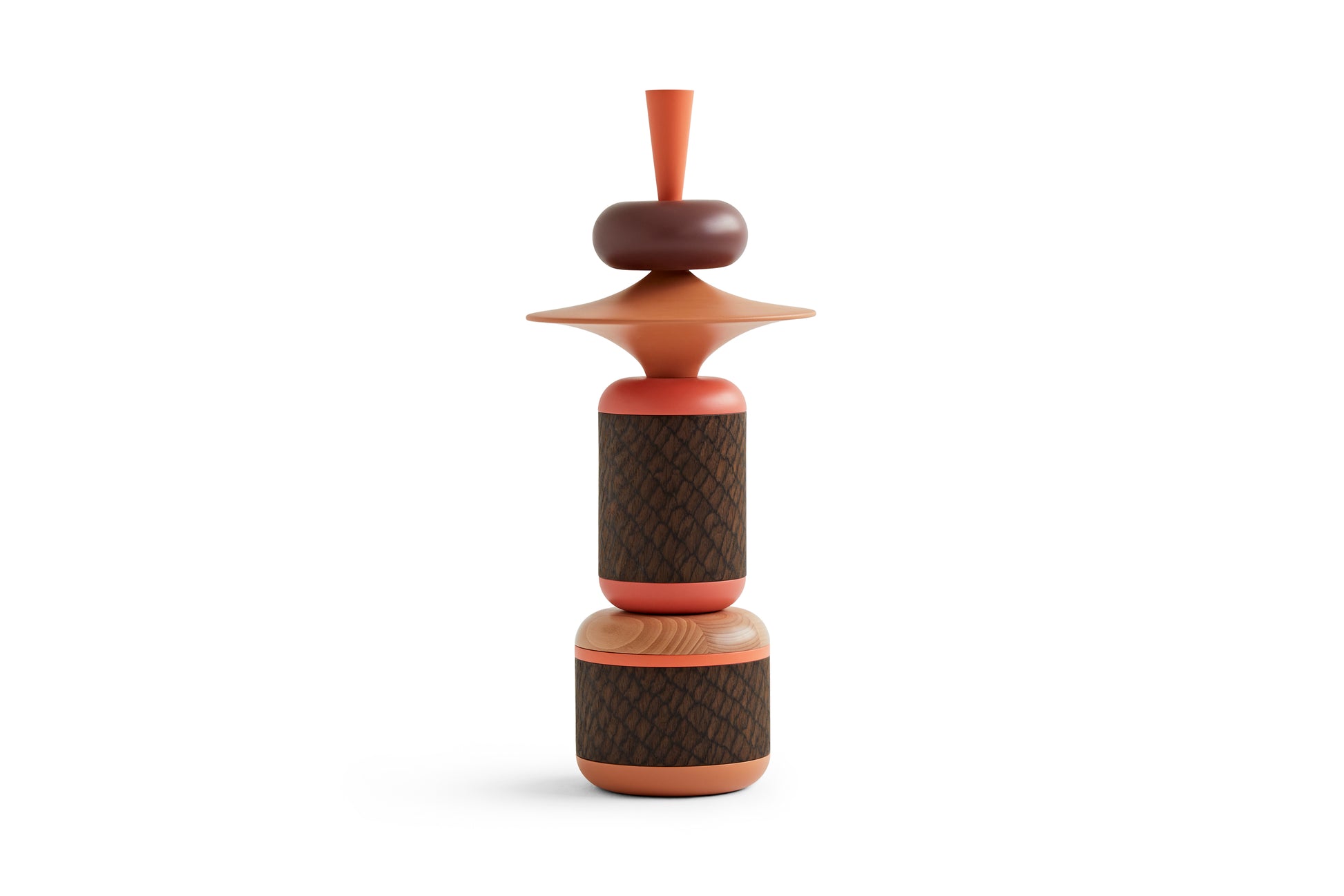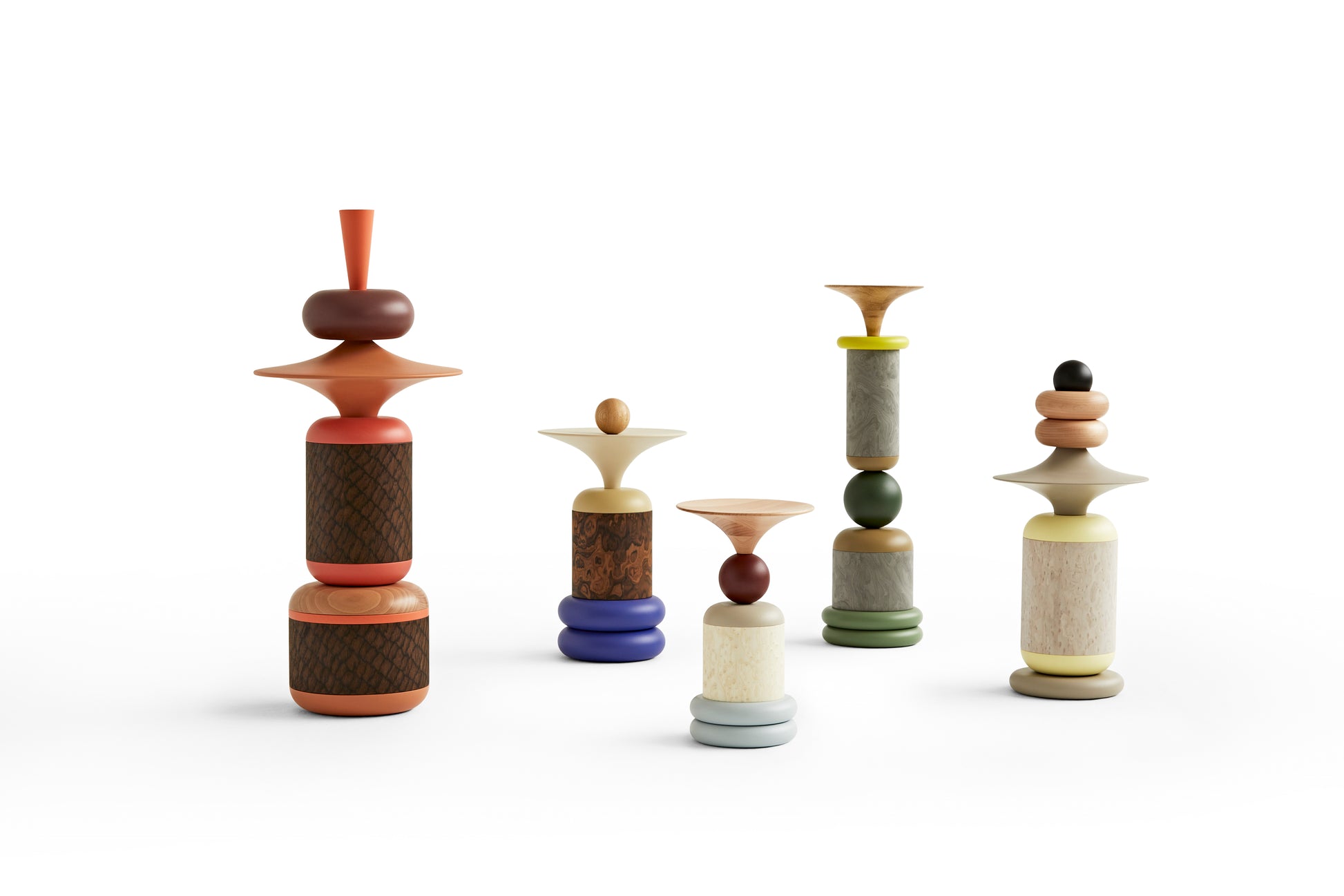 Die fünf aus 100 % Holz gefertigten Totems der Serie zeichnen sich durch ein harmonisches Zusammenspiel von Formen, Texturen und Farben aus. Sie verleihen dem Interieur Dynamik und bleiben dabei dem Geist der Marke Noti treu.