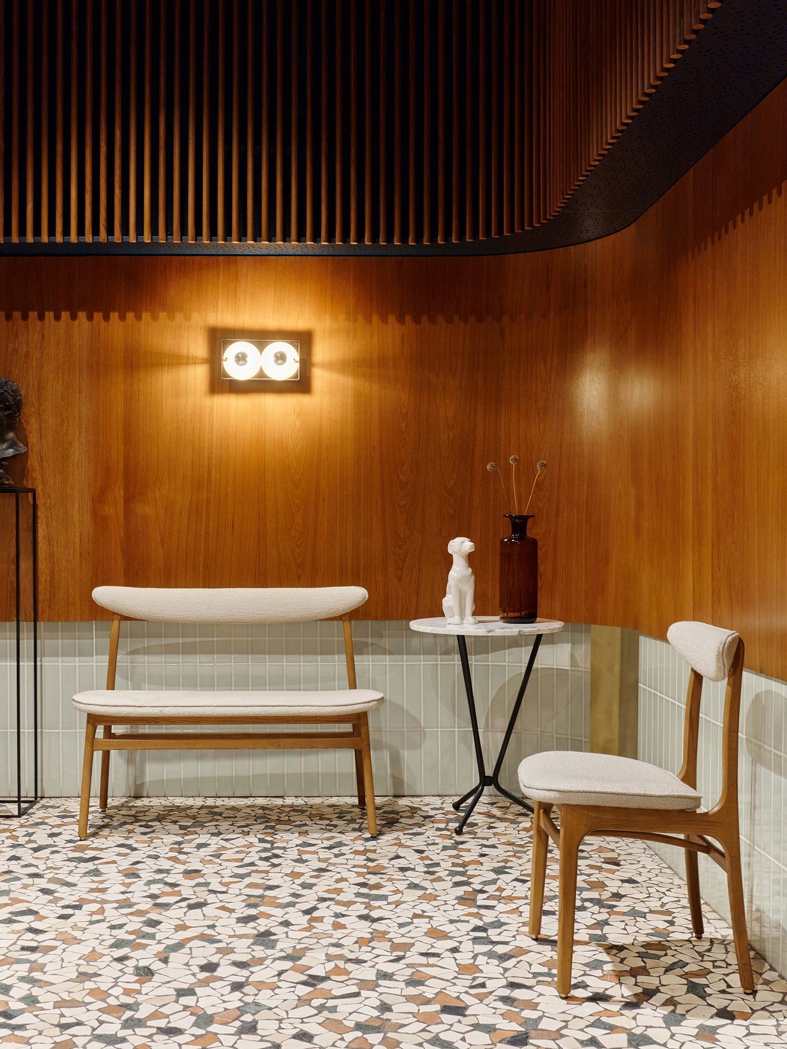 200-190 Bench is based on the iconic 200-190 Chair designed in the 1960s. It became an unquestionable Icon of Polish design thanks to its luxurious feel and elegance. This upholstered benche's light form and the use of ash with brass details, gives it a touch of nobility and timelessness that continues to impress.