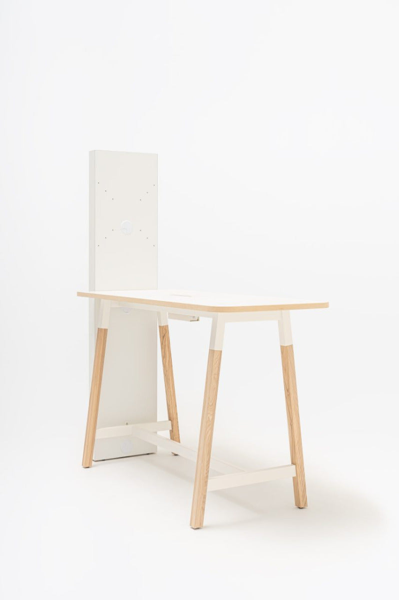 The restrained colours allow implementing this piece of furniture to any arrangement regardless of its style. Large and robust worktop makes it look modern what is only enhanced by the ability to mount a monitor.