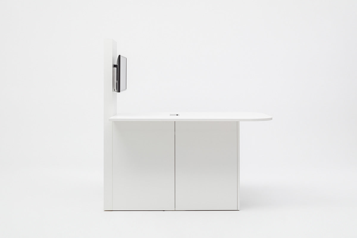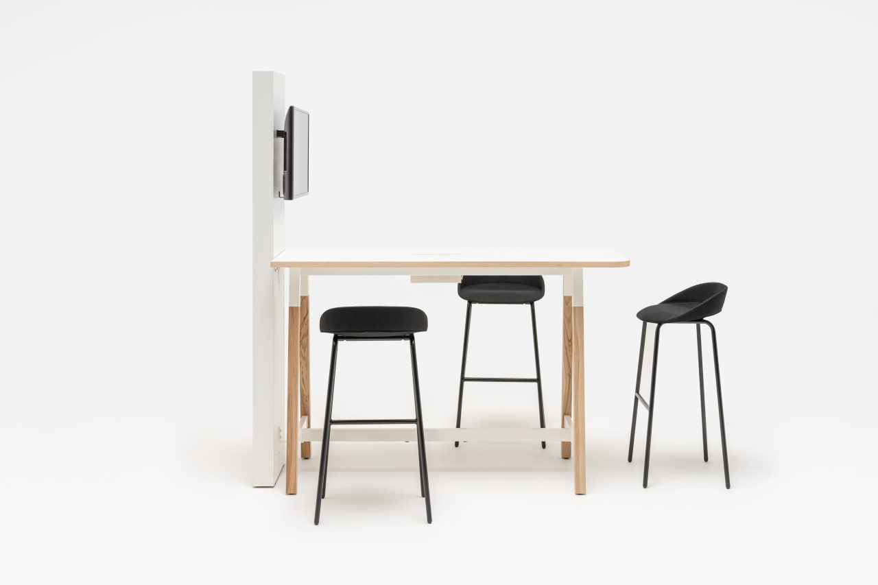 A great advantage of the multimedia station over traditional tables is the simplified way of connecting all the electrical devices required to run a presentation.