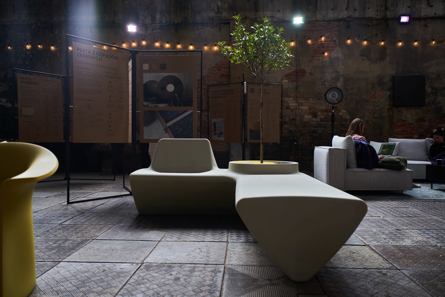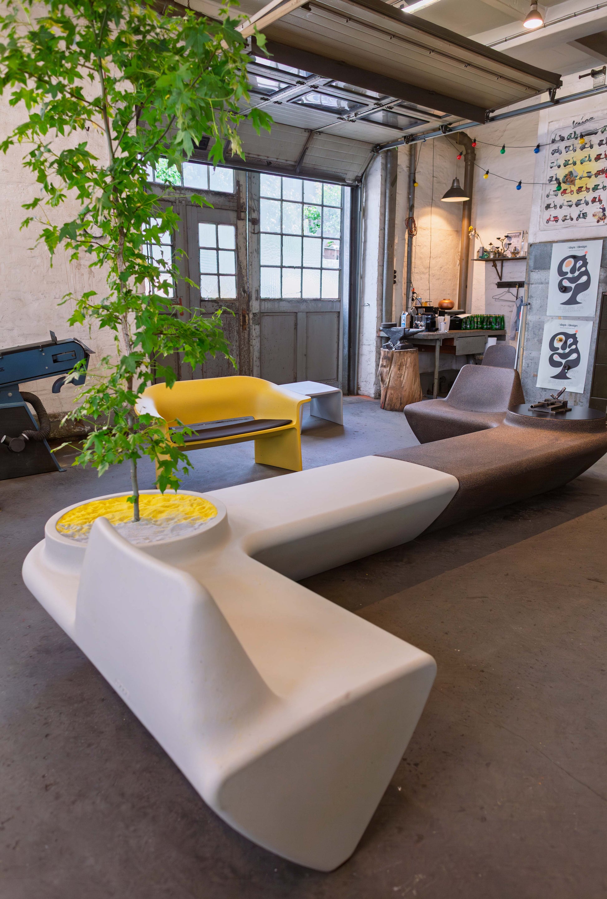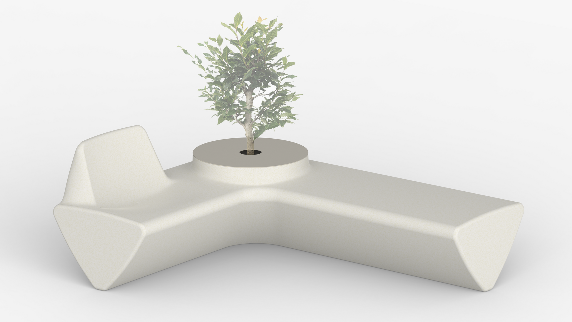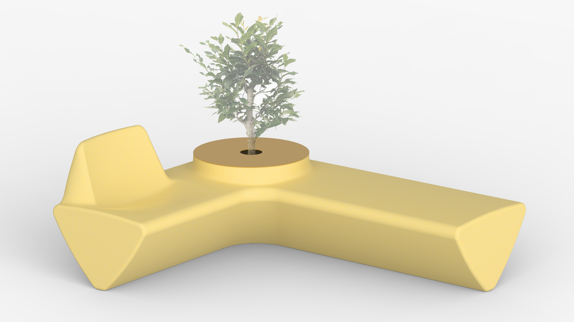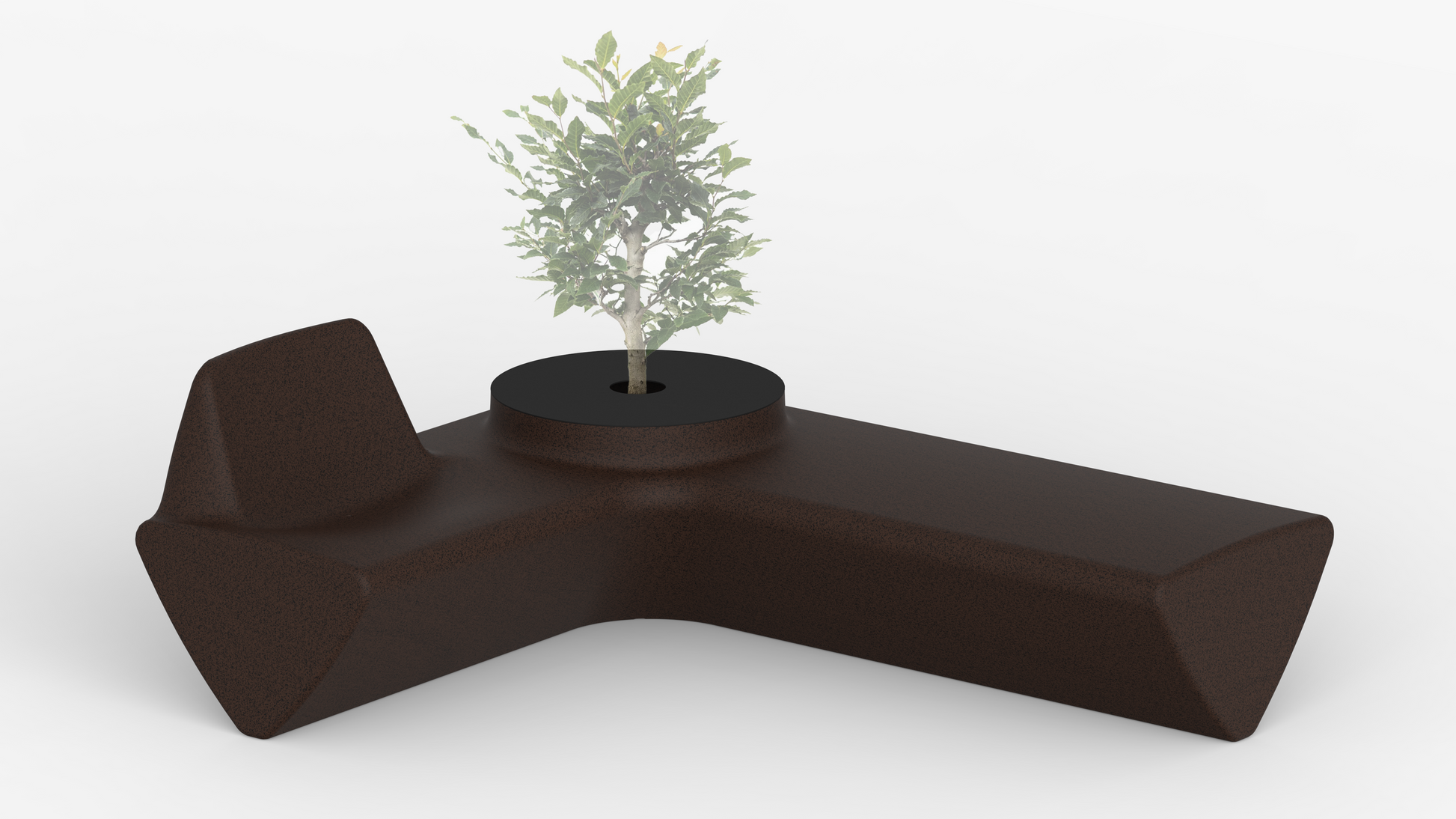 The module combines four different functions: a bench, an armchair and a large pot that can turn into a table when covered.