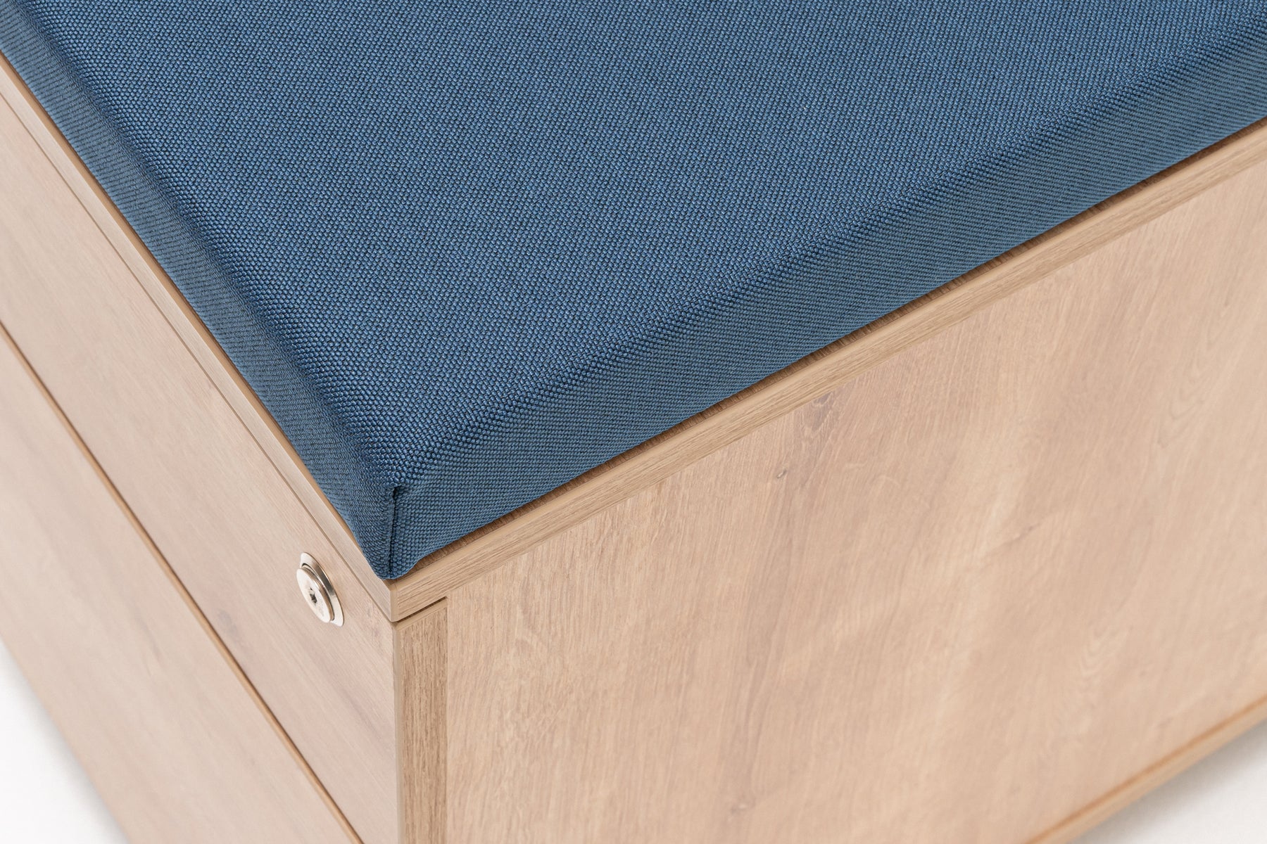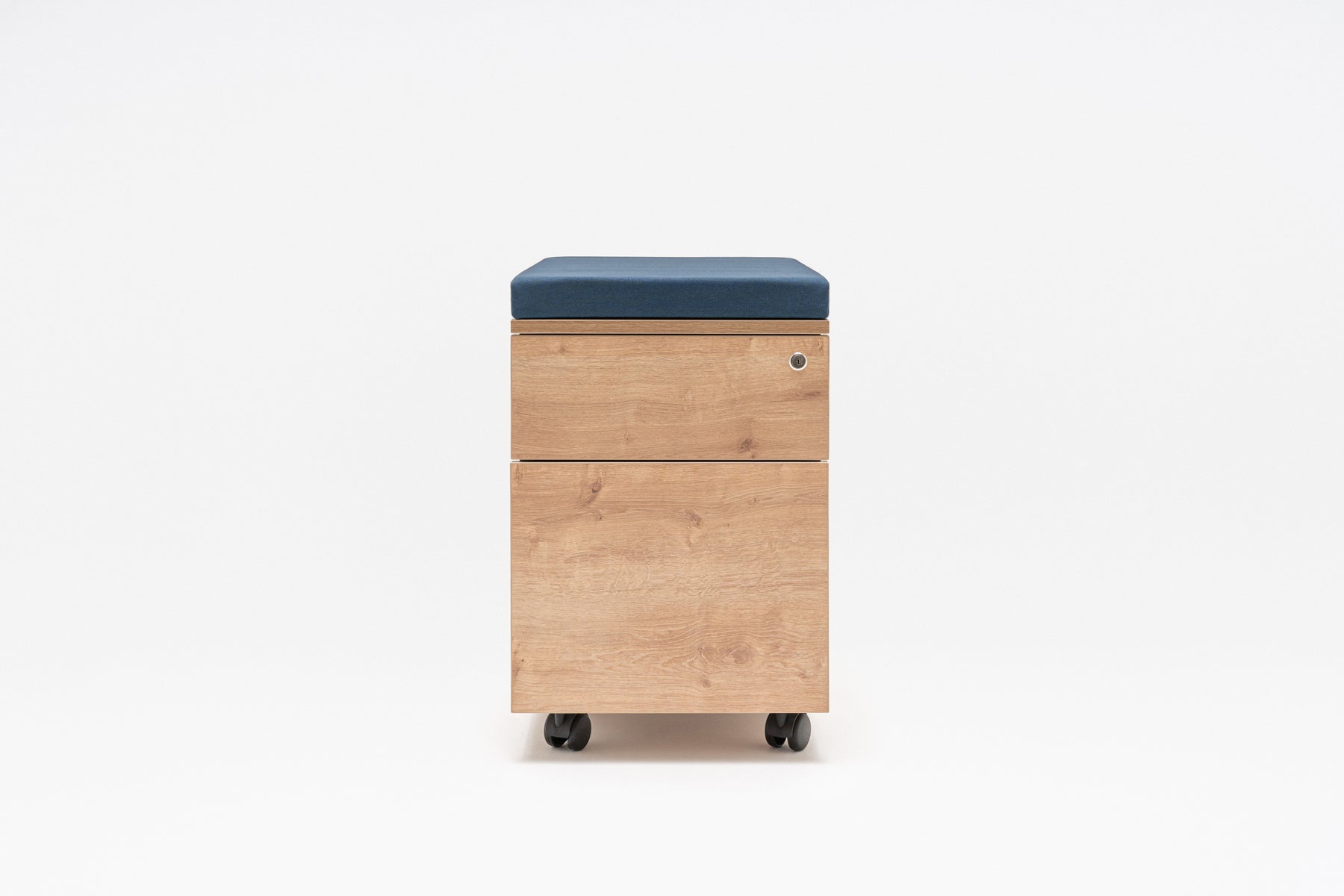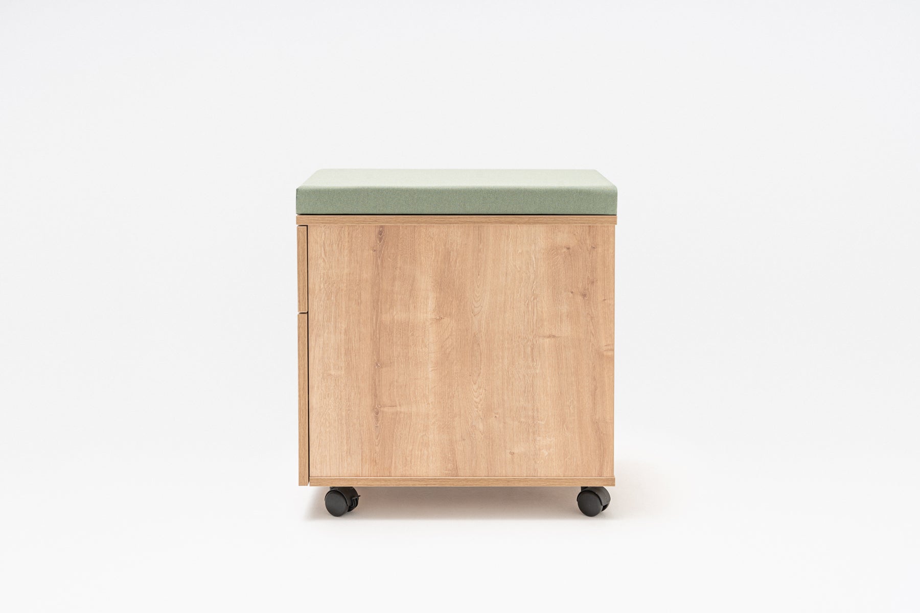 This cushion is designed to fit on top of a pedestal, transforming it into a comfortable, temporary seat. It adds functionality and a soft touch to your mobile or stationary storage unit.