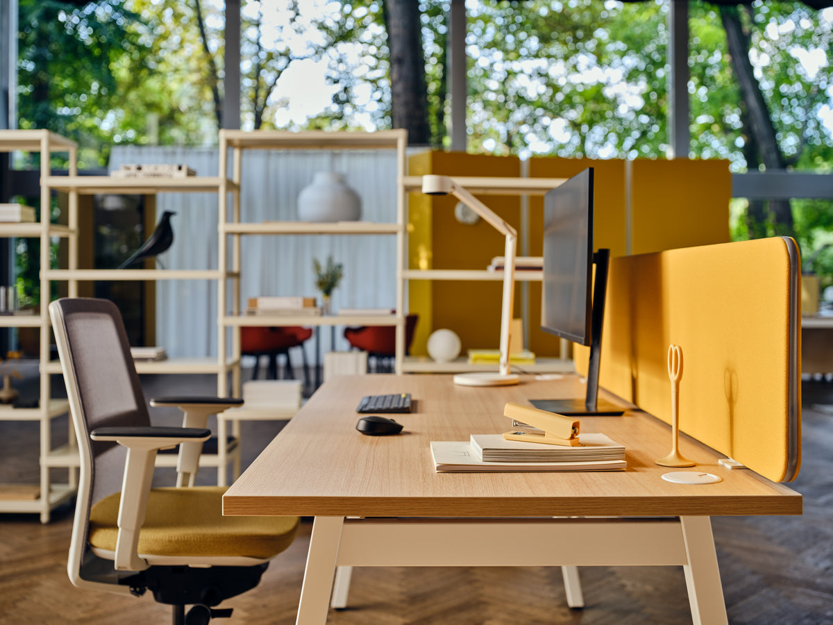 Lack of focus is frequently linked to distracting office environments as well as limited possibilities of organizing one’s own space. Employees can enhance productivity by splitting workstations with Twin desk screens. Desk screens create the sensation of having a separated workstation what translates into serenity required to fully focus on the tasks at hand. Such a space means more arrangement and organization options. The use of Twin screens allows for linking desks that helps to save space whilst the screen itself can work as a board for stick notes. Twin is available in various colours and fabrics for both single and bench type desks.