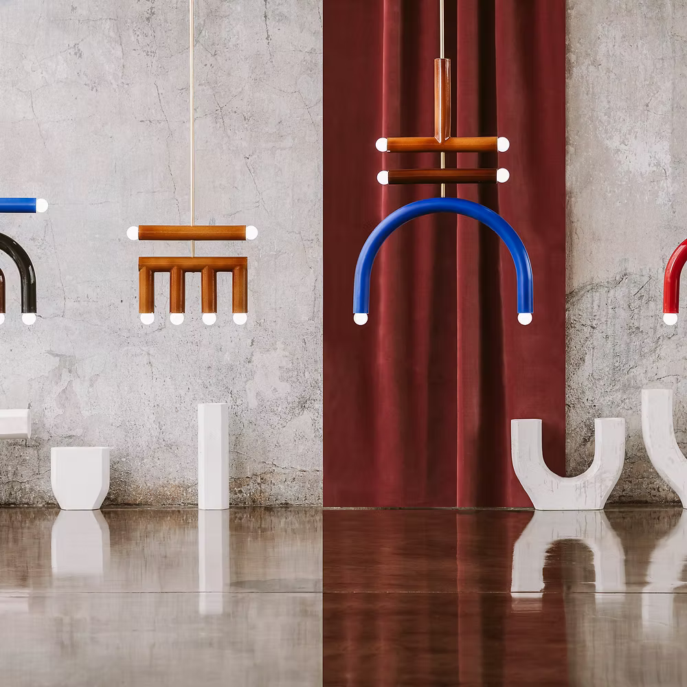Her collections, such as TRN, reinterpret artistic abstraction through material; others, like the Maria S.C. lamp, turn simple glass into a modular experiment in light and rhythm. Across all works, a strong sense of colour and composition reflects her painter’s eye, design that feels alive, not industrial.