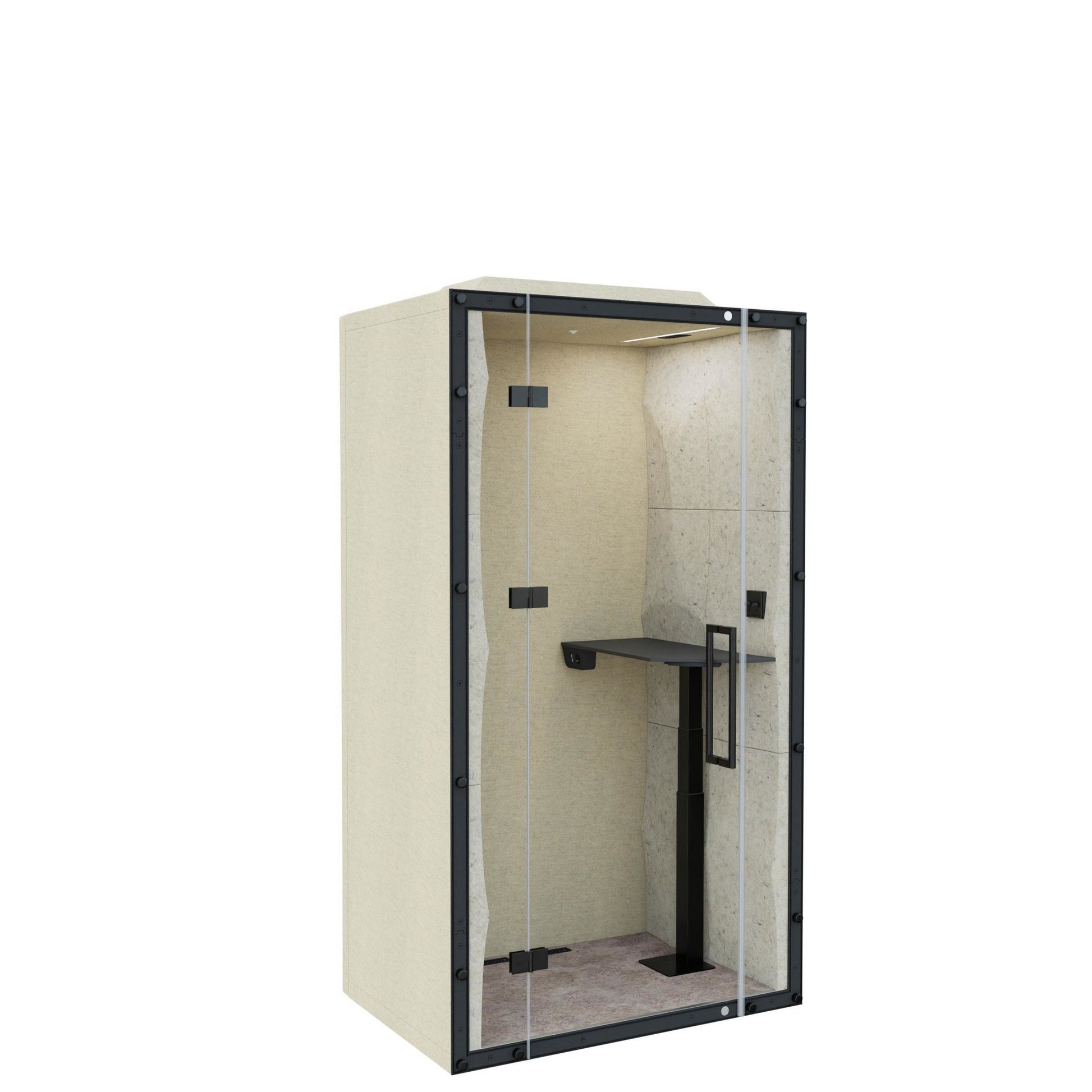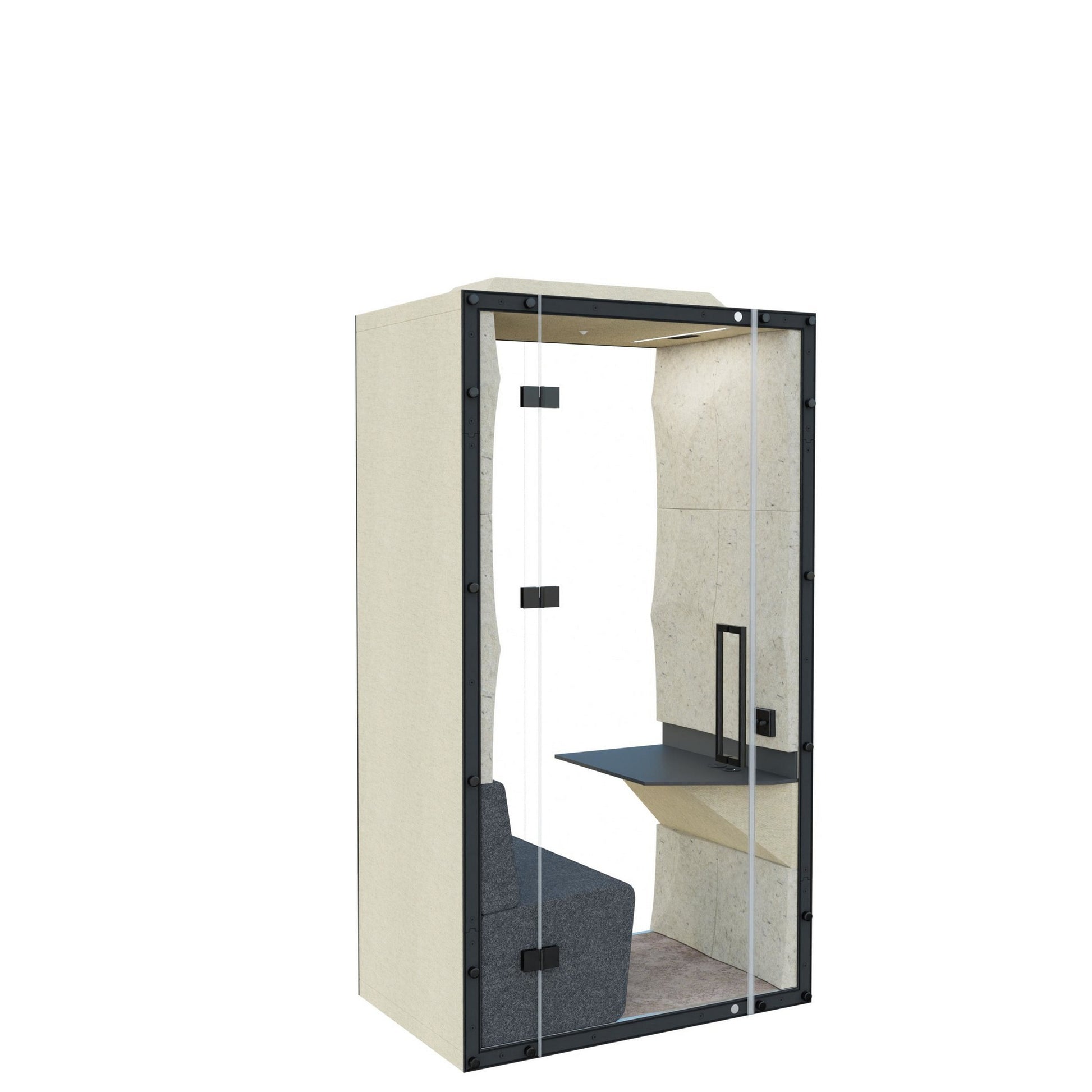 The pod’s advanced acoustic performance is driven by its unique 3D ELLIPSE panels, which act as high-efficiency sound diffusers to ensure crystal-clear audio quality. Built with environmental responsibility in mind, these panels are available in sustainable biocomposite or recycled non-woven rPET. This combination of innovative geometry, sound-absorbing materials, and a safety glass door creates a secure acoustic bubble that protects the confidentiality of internal conversations while effectively keeping external noise at bay.