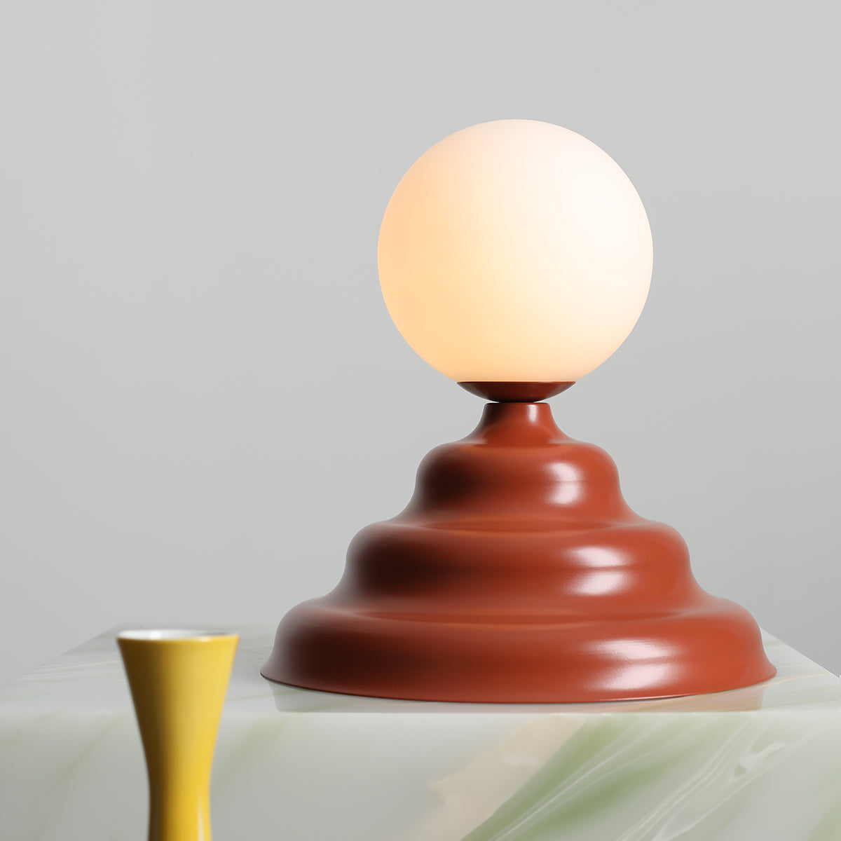 Elevate your interior with the FALA table lamp, a striking fusion of fluid design and industrial strength. This piece harmonizes 1970s retro aesthetics with contemporary minimalism. The lamp features a distinctive, wavy steel base that mimics the lightness of water, creating a sculptural silhouette that serves as both a functional light source and a sophisticated art object. A hand-formed glass shade sits atop the precision-engineered frame, diffusing light to create a soft, cozy glow. Its versatile design pairs effortlessly with natural materials like wood, stone, or concrete, making it an ideal accent for desks, side tables, or shelving units. Whether you seek to add a pop of color or a unique textural element, the FALA collection brings a sense of calm and artisanal quality to any modern space.