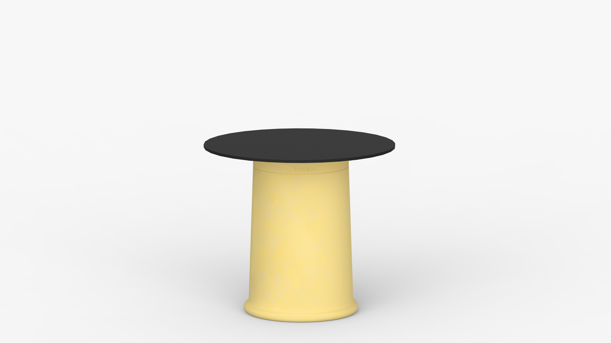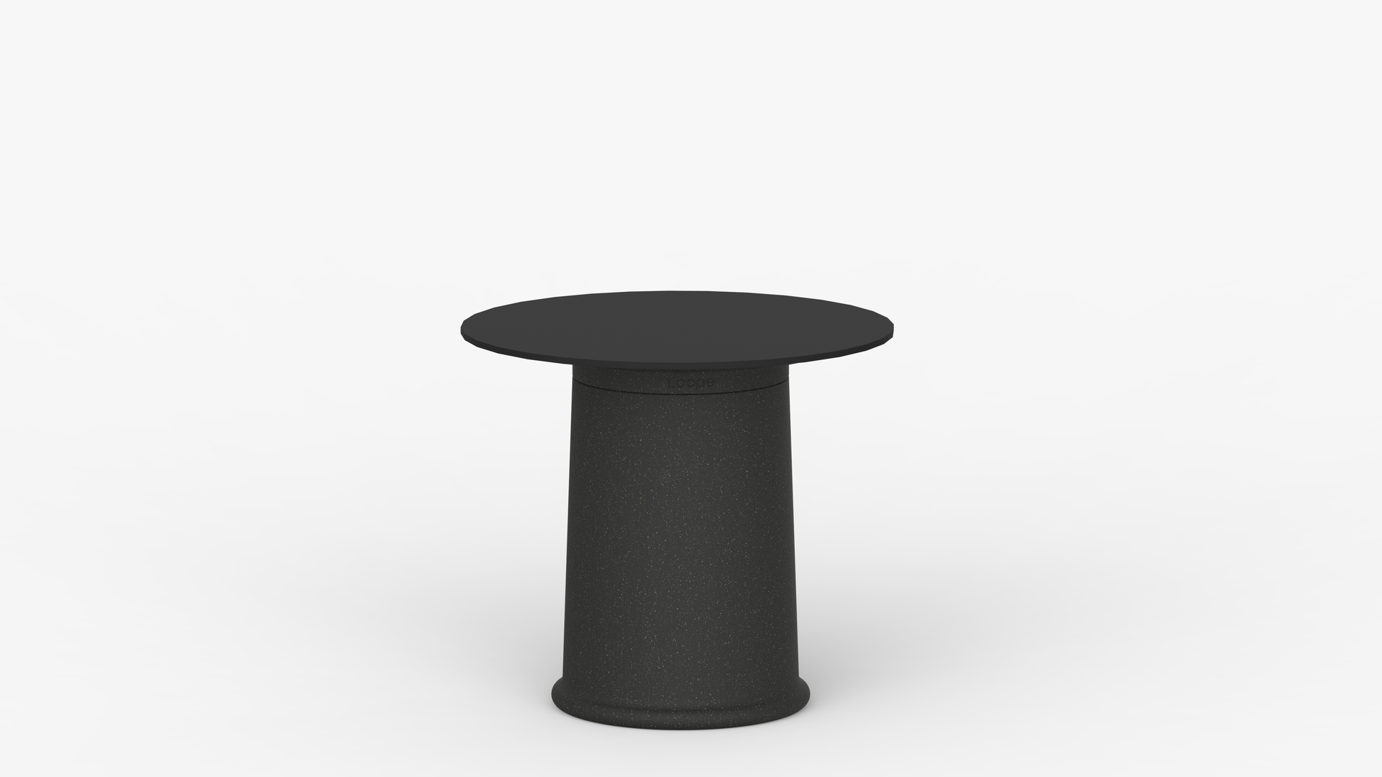Table with a large, substantial pillar made of recycled polyethylene.