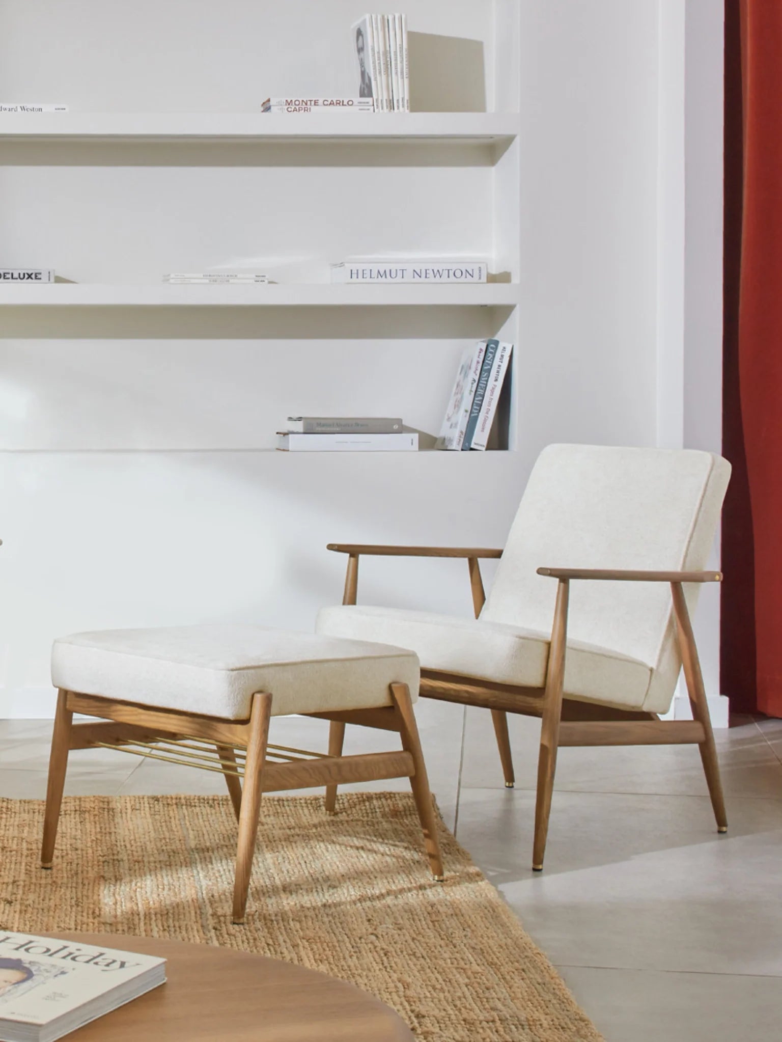 The Fox Footrest is the perfect complement to the Fox Series, including lounge chairs, club chairs, and sofas. Crafted from hand-selected ash wood with elegant brass accents, it boasts a refined and timeless finish. Designed to pair seamlessly with the Fox Lounge Chair, it invites you to put your feet up, relax, and dive into a good book.
