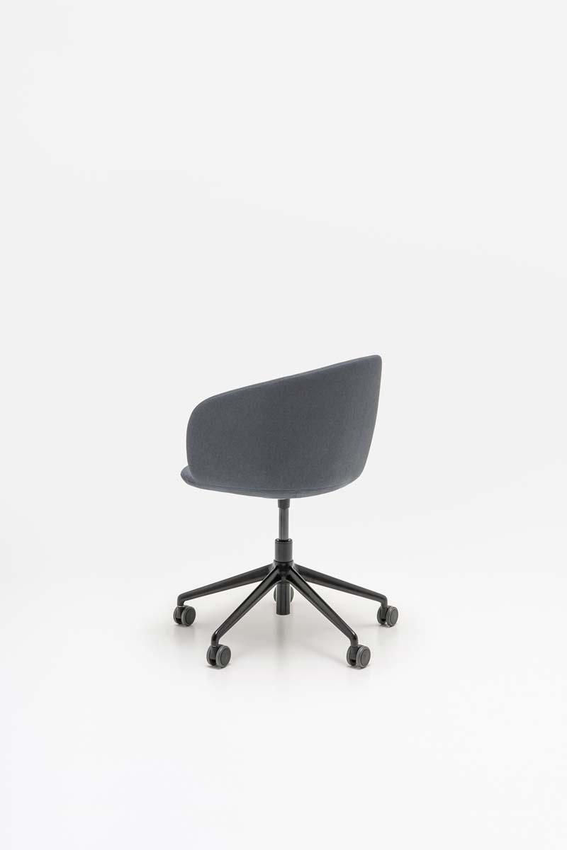 Modern office and conference spaces call for functional and aesthetic seating – and such are the Grace chair with actuator base. In this version, it is mobile and ergonomic thanks to its adjustable seat height and castors. It allows the user to adjust the position to match a given tabletop and to move around the workstation. The chair can be configured by choosing its upholstery and the colour of the base - thus matching the existing or projected interior design.