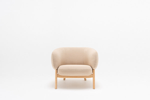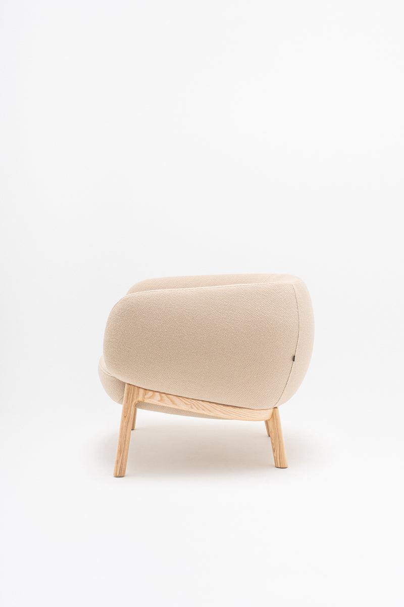 The Grand armchair with a wooden base offers a blend of classic elegance and comfort. This stately armchair features a generous, welcoming seat, perfect for lounge areas, offices, or home settings. The wooden base provides a warm, sophisticated foundation for the upholstered body, making it a timeless addition to any interior.