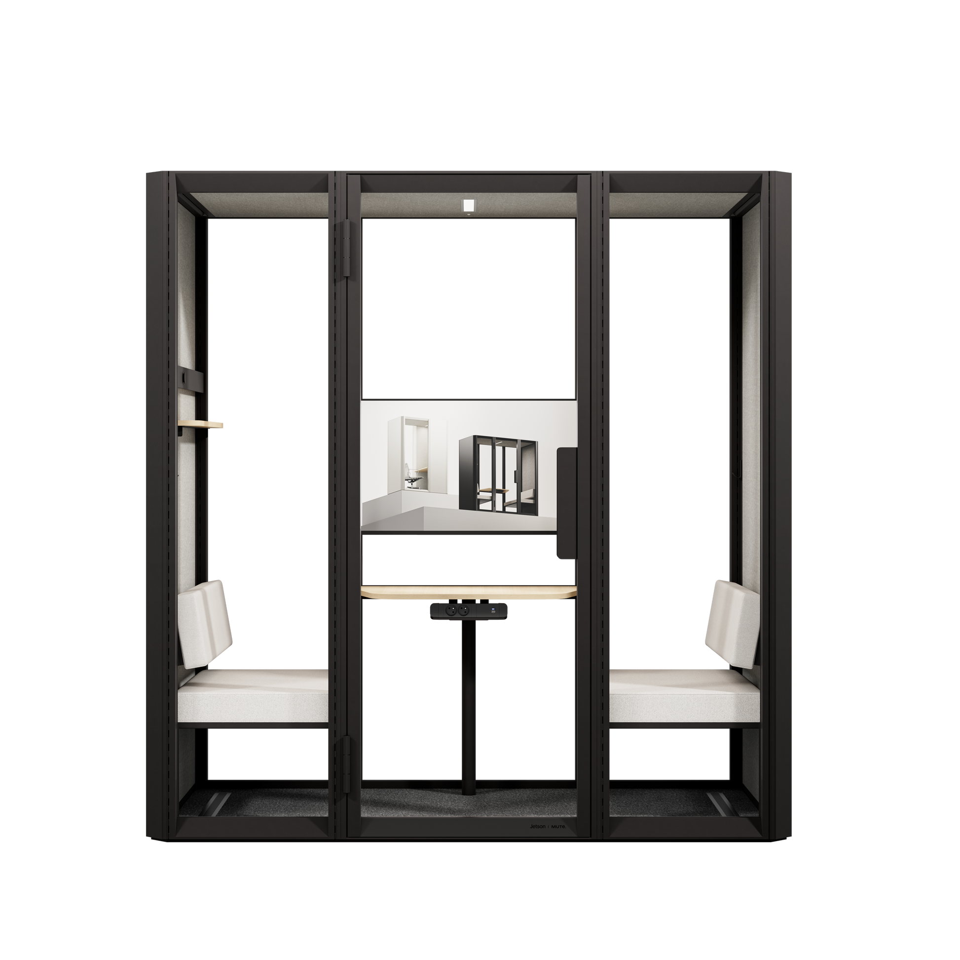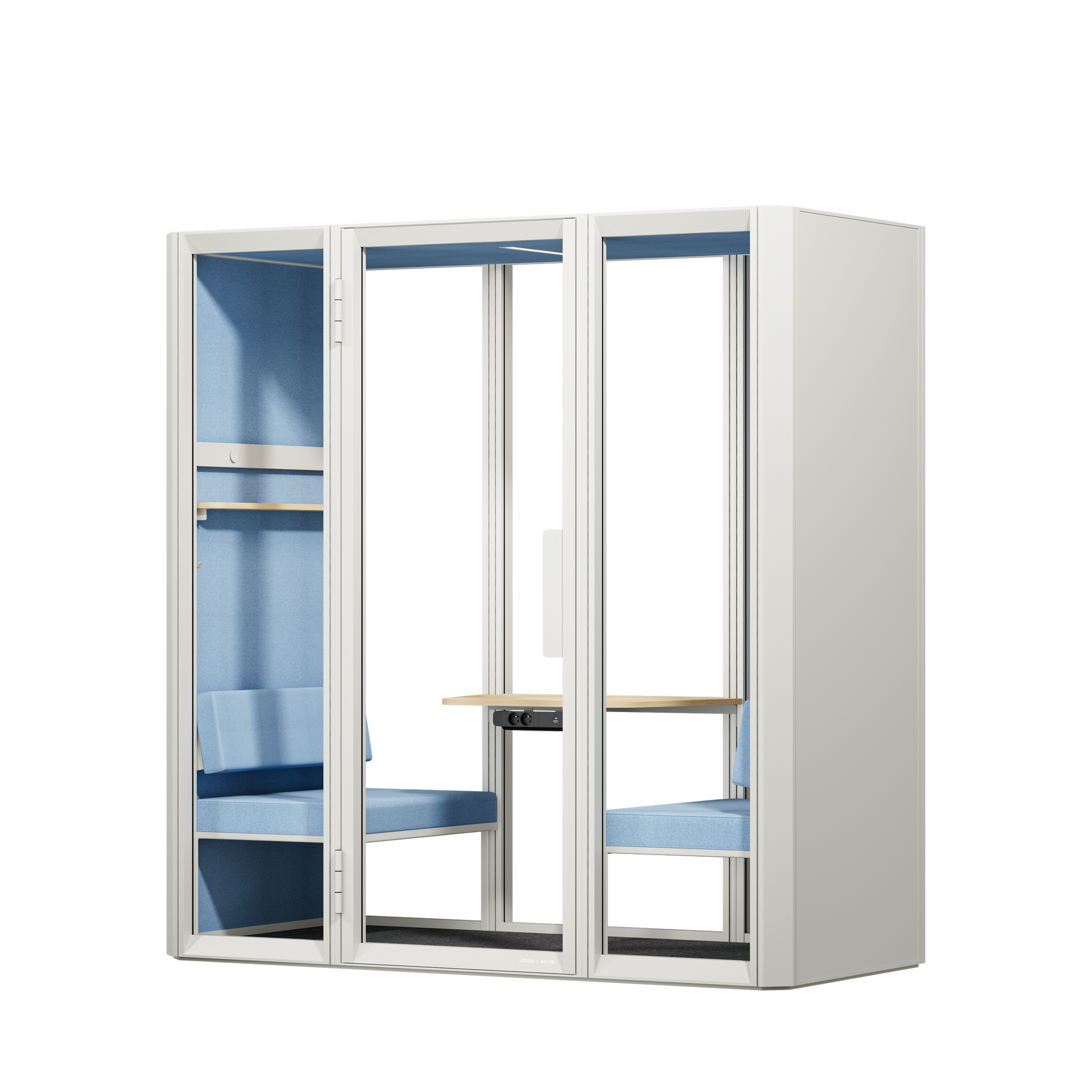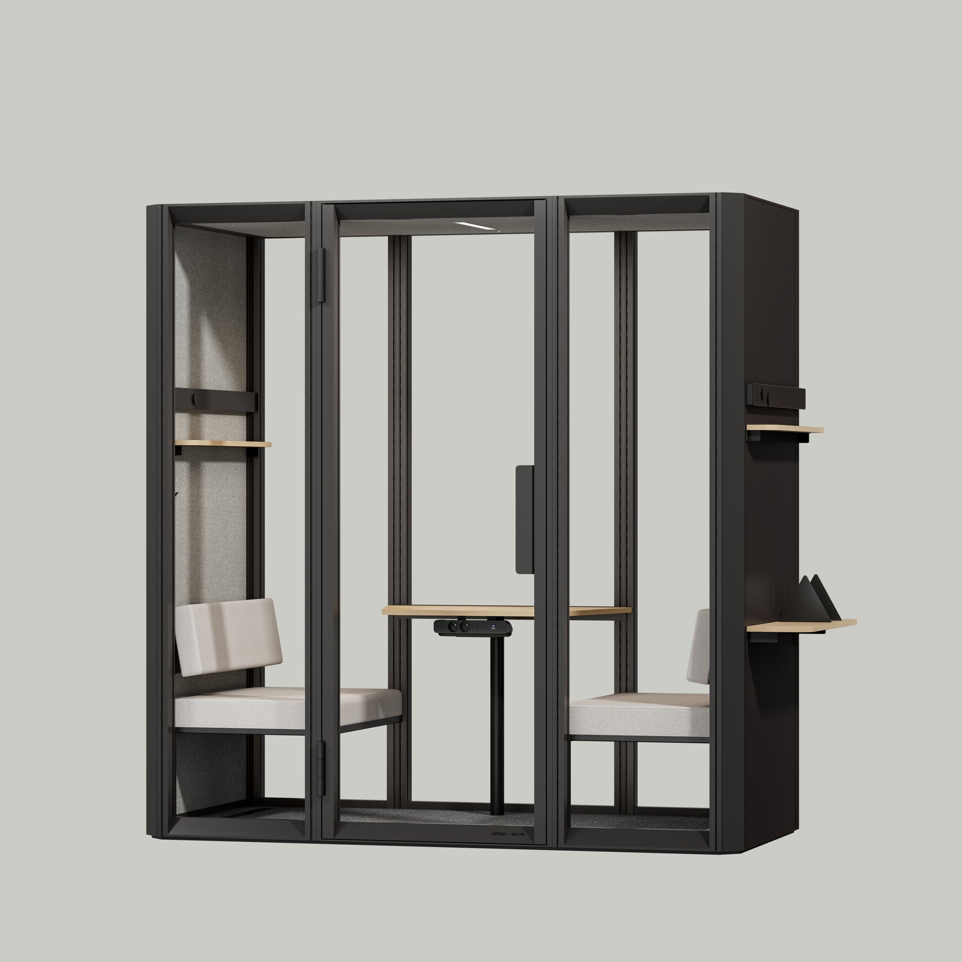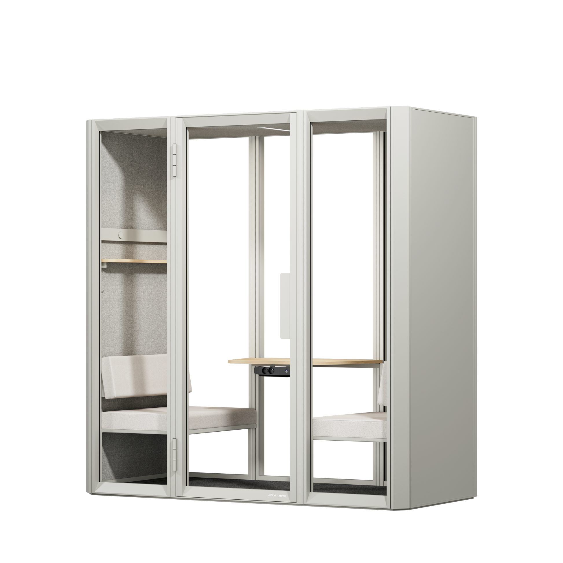 Spacious, silent, and built for collaboration. The Jetson L2 is a premium acoustic pod designed to host team meetings of up to 4 people. It transforms noisy open-plan offices into professional meeting rooms without the need for permanent construction. Engineered with high-performance sound insulation, it is the perfect space for creative brainstorming, private team discussions, and seamless video conferencing.