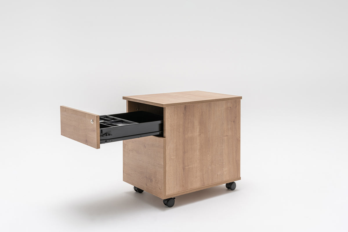 The designer of the Mito storage is Simone Bernocchi. They were created especially for classic interiors of executive cabinets and offices. The pedestal’s elegant form conceals vast functionality. Capacious drawers are equipped with a pencil tray or file compartments, that help to keep documents and office accessories in order. Plastic castors make the pedestal mobile, easy to move around and position freely in the space. It can be teamed with a desk and other cabinets or placed independently. As an element of the Mito series of desks, tables and storage furniture, it will complete a cohesive and tasteful arrangement of the whole interior.