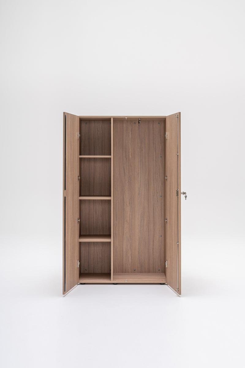 The Mito wardrobe is an elegant and practical storage solution designed to complement the executive environment. Its clean lines and substantial presence offer ample space for hanging garments and secure storage. Perfect for a private office or professional setting, the Mito wardrobe seamlessly combines functionality with a sophisticated aesthetic.