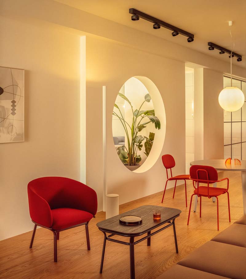 The classic form of a school chair in a brand-new edition — New School chairs mean multiple configurations that adjust to office areas for various purposes. In its upholstered version, it offers users maximum comfort and functionality - especially equipped with armrests. Together with a wide range of fabrics and metal frame finishes, the New School offers many possibilities for configuration. The user can therefore adjust the chair to their needs and preferences, playing with colours and textures. By arranging the seat with the other furniture from the collection, they make sure the whole space is coherent and stylish.