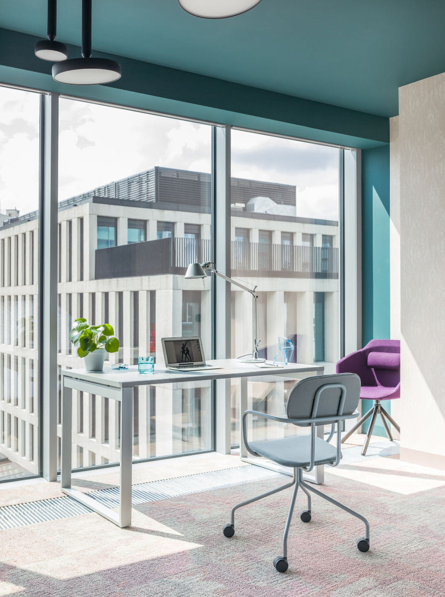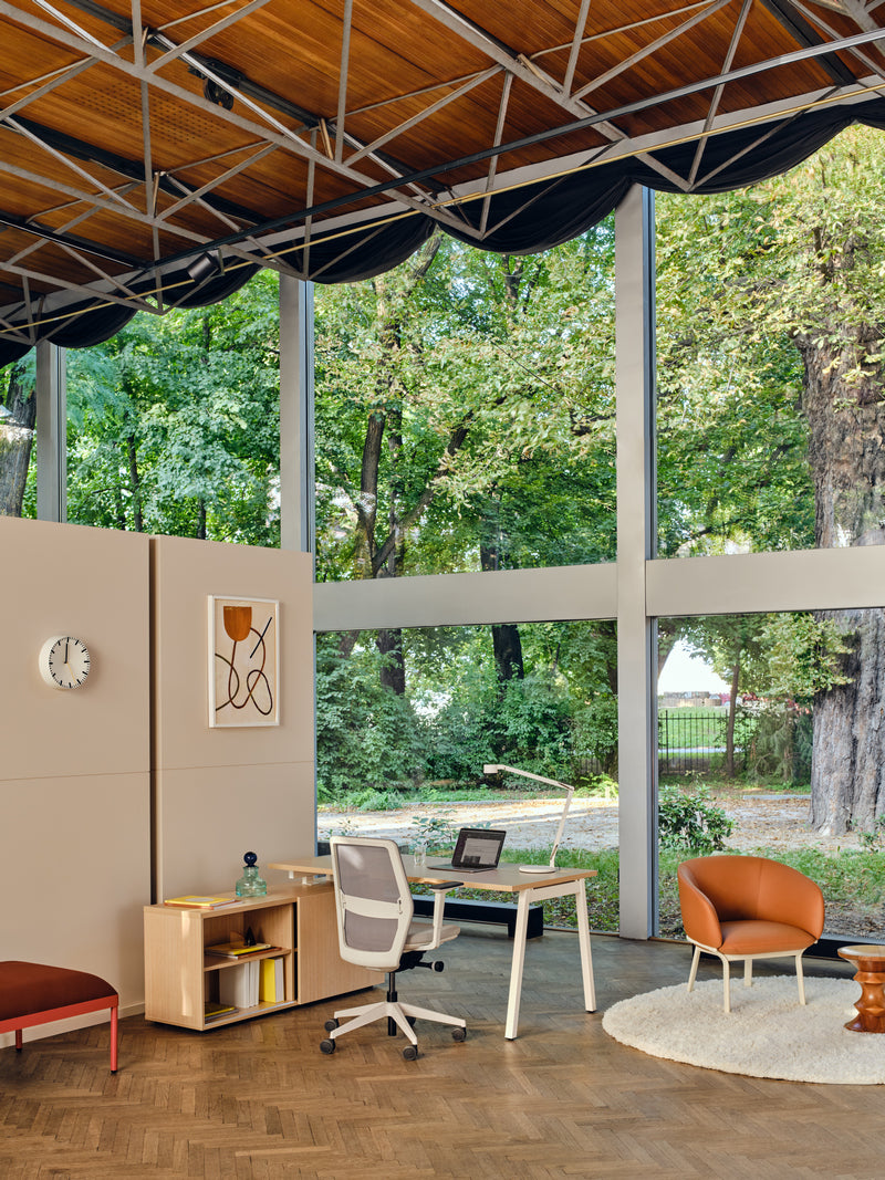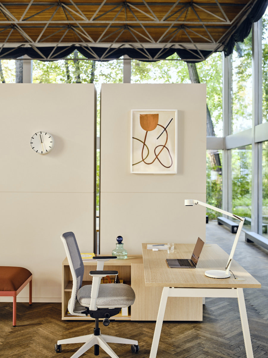 Classic design and minimalism characterize the Ogi A series. The simple design gives many possibilities of arranging the workspace such as combining several workstations, which is ideal for shared and open space offices. The workspaces can be separated by an acoustic screen available in different colours and fabrics, which will create a sense of privacy in the workplace. The workspace can be extended by the use of pedestals and desk cabinets, which will help maintain the order.
