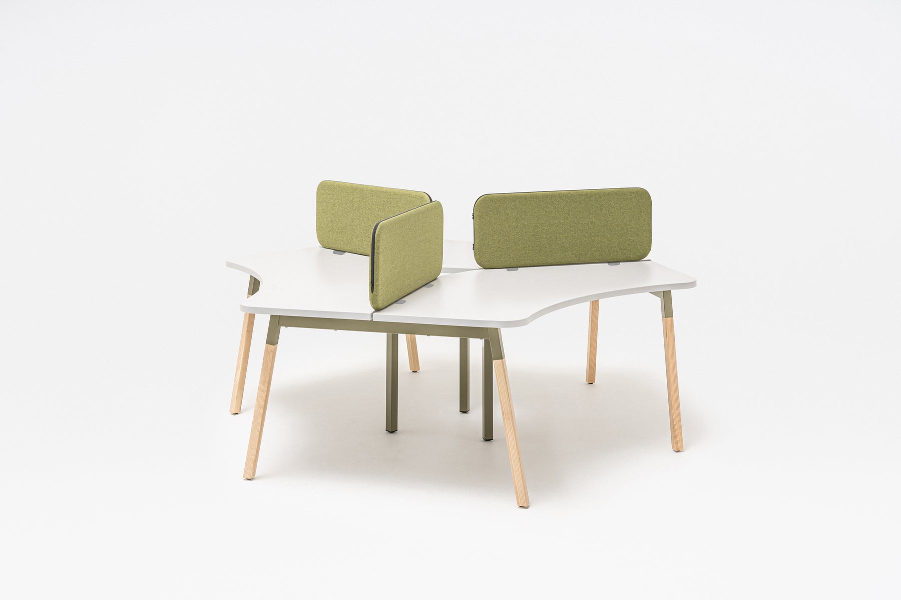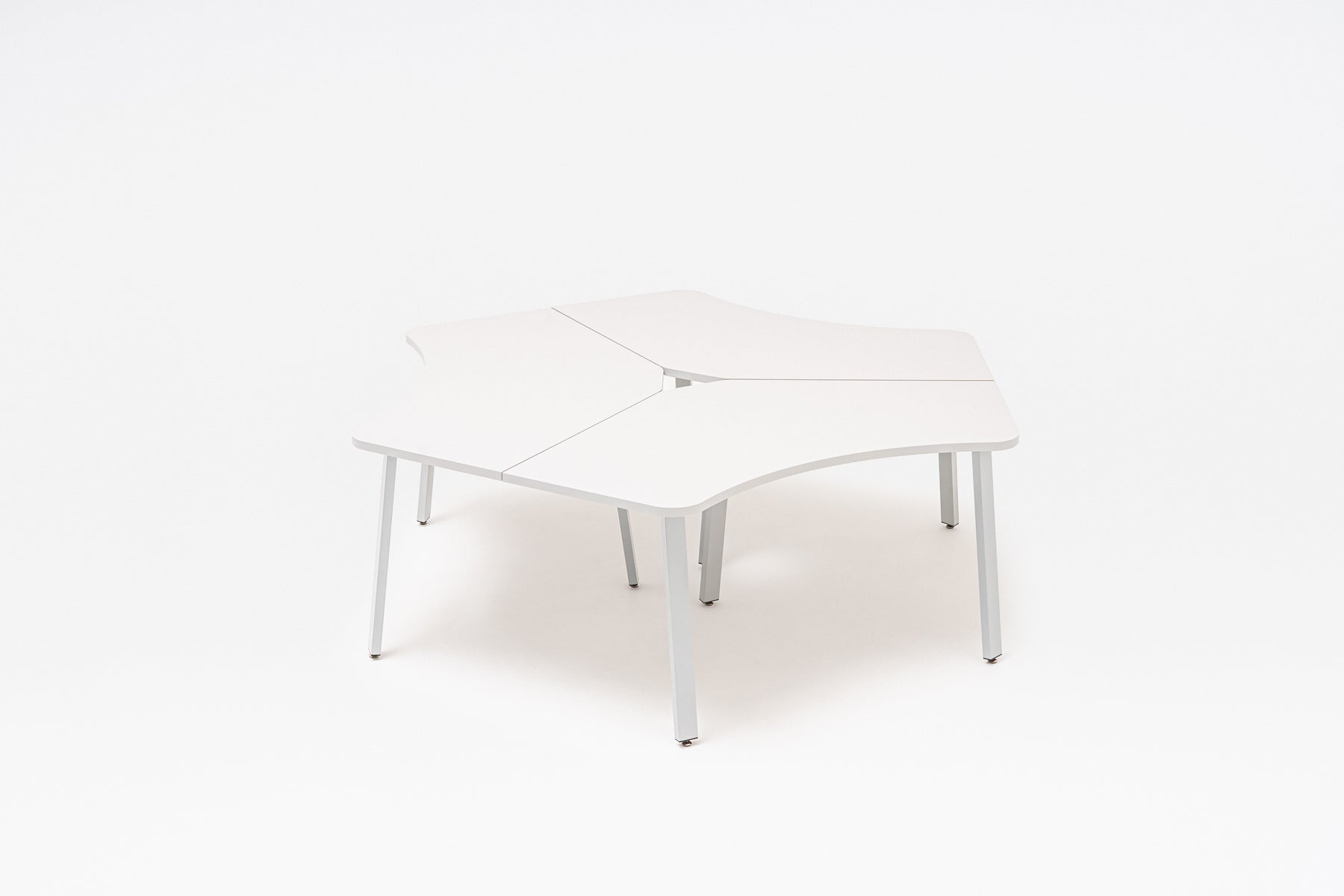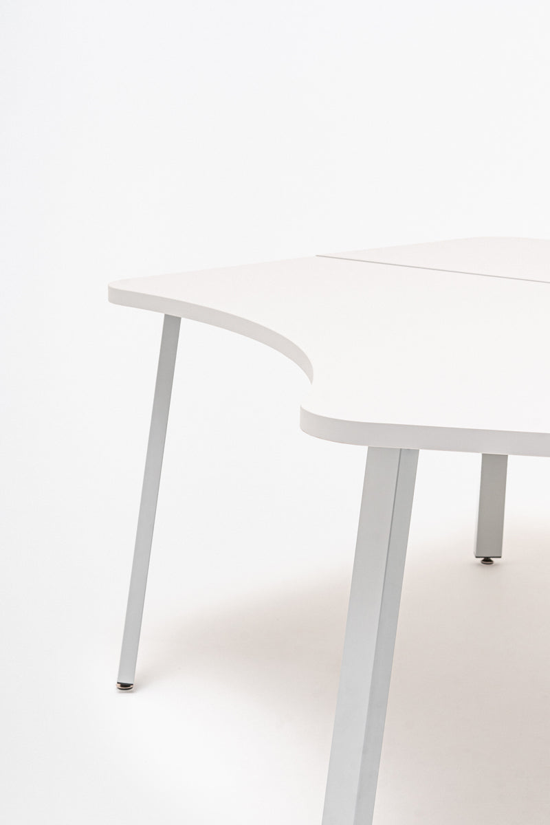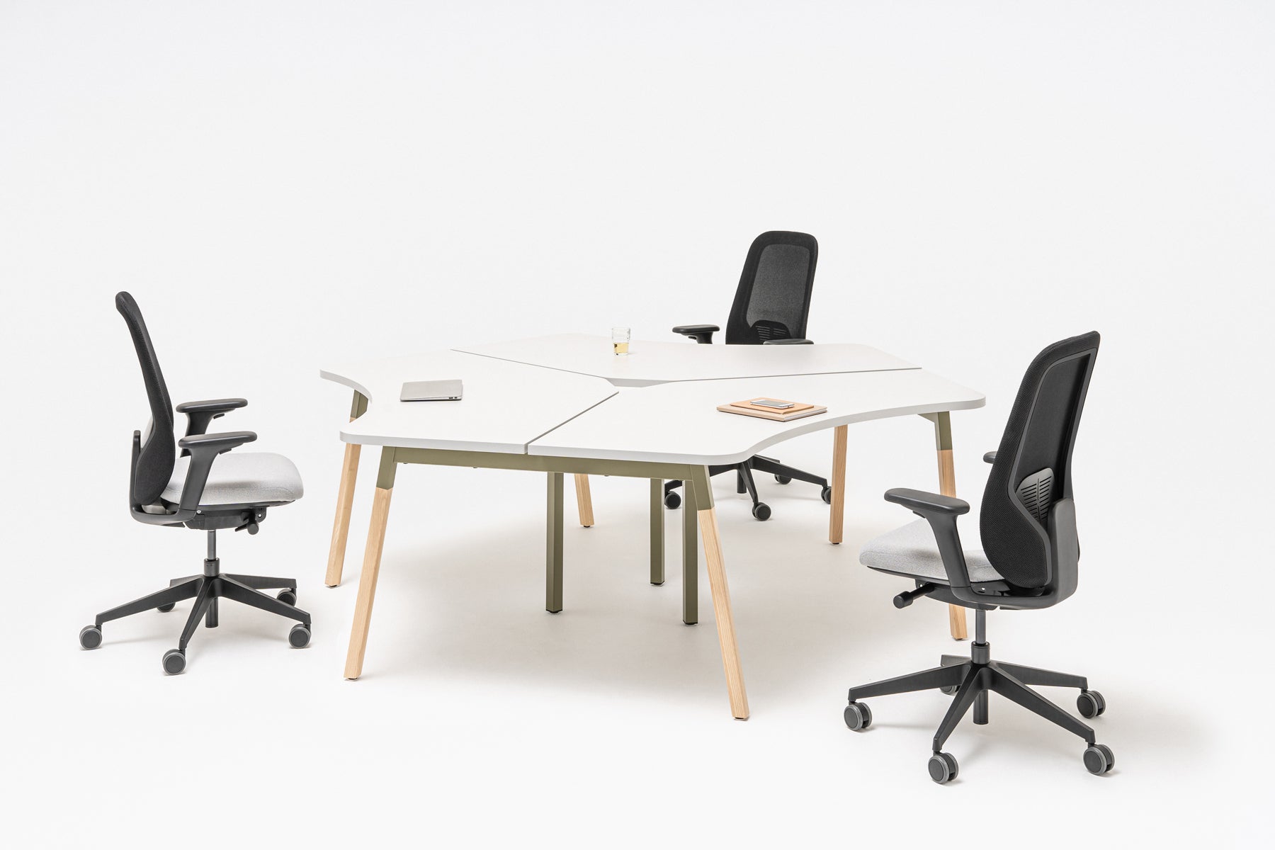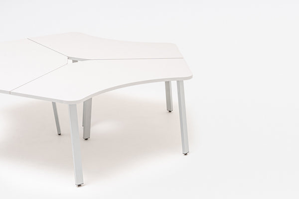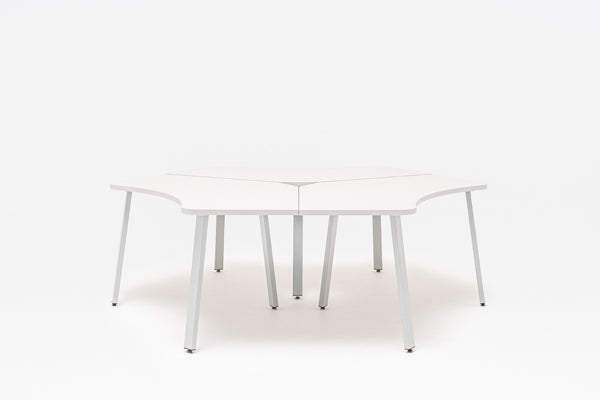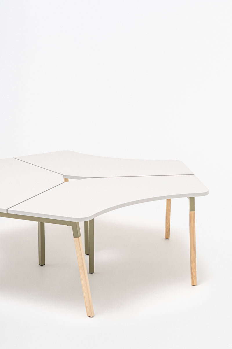 Classic design and minimalism characterize the Ogi A series. With three radial worktops, this model becomes a functional workstation for a small team. It enables collaboration and provides a comfortable work surface, and the combination of three desks in one piece of furniture also allows the available space to be used more optimally.