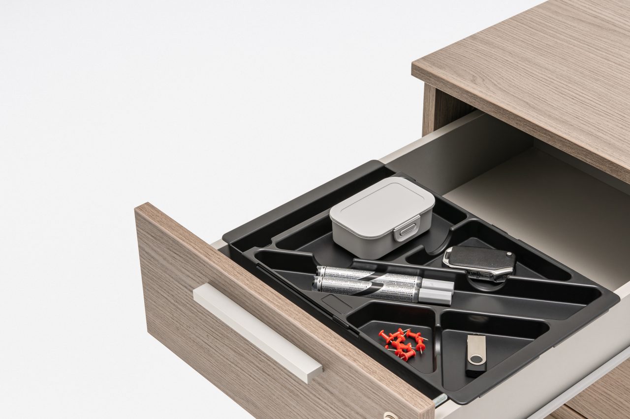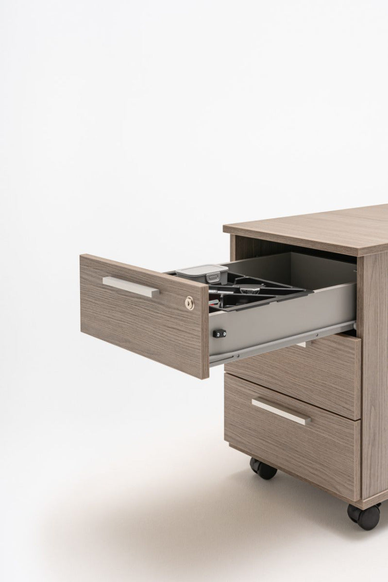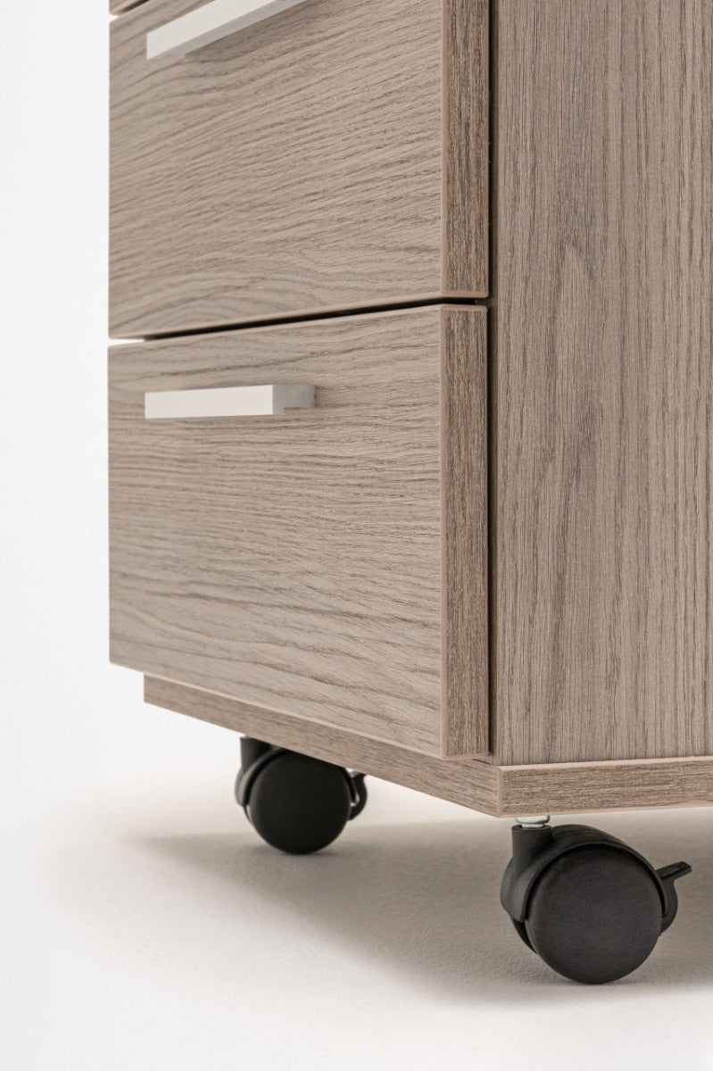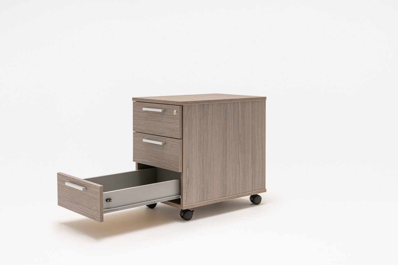 Minimal Quando pedestal is a functional addition to a working space, both in the office and at home. Simple design makes it suitable for modern interiors as well as those more traditional. Capacious drawers help keep the office tidy and organise the workspace. Castors guarantee the pedestal’s mobility, allowing it to be moved around easily. As a result, it can be set up in various positions – next to the desk, on its own or together with other storage pieces. As an element of a series of furniture with complementary functions, the Quando pedestal will be a part of a cohesive arrangement of the whole office.
