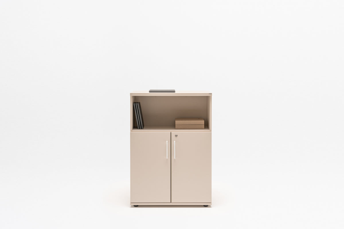 This Standard half-bookcase provides versatile storage for any office environment. Its design is functional, offering space for both documents and display items. It is a practical solution for organizing and presenting office essentials without taking up excessive vertical space.