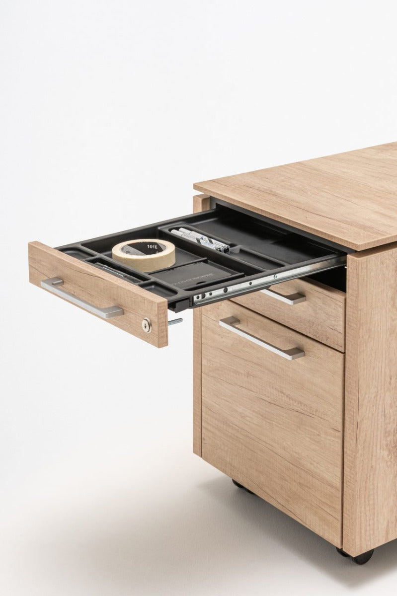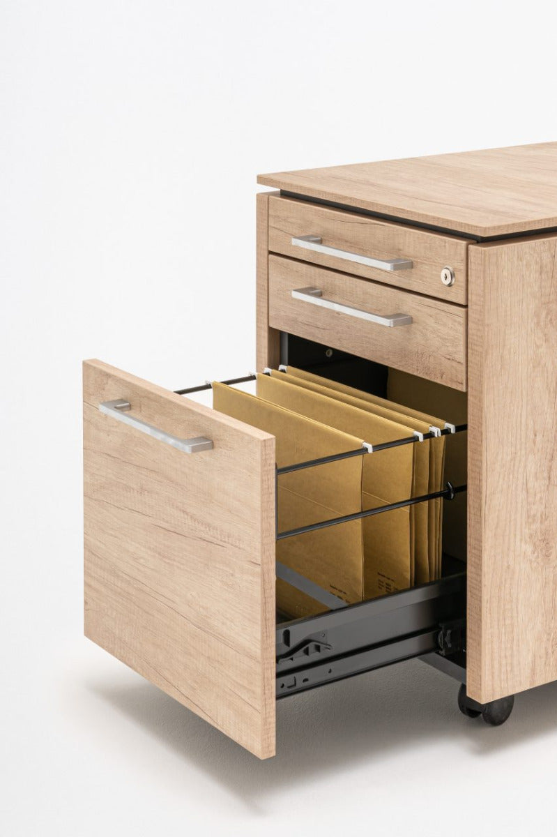 The Status pedestal offers a sophisticated storage solution for an executive office. Designed to complement high-end workspaces, this pedestal provides functional, secure space for documents and personal items.