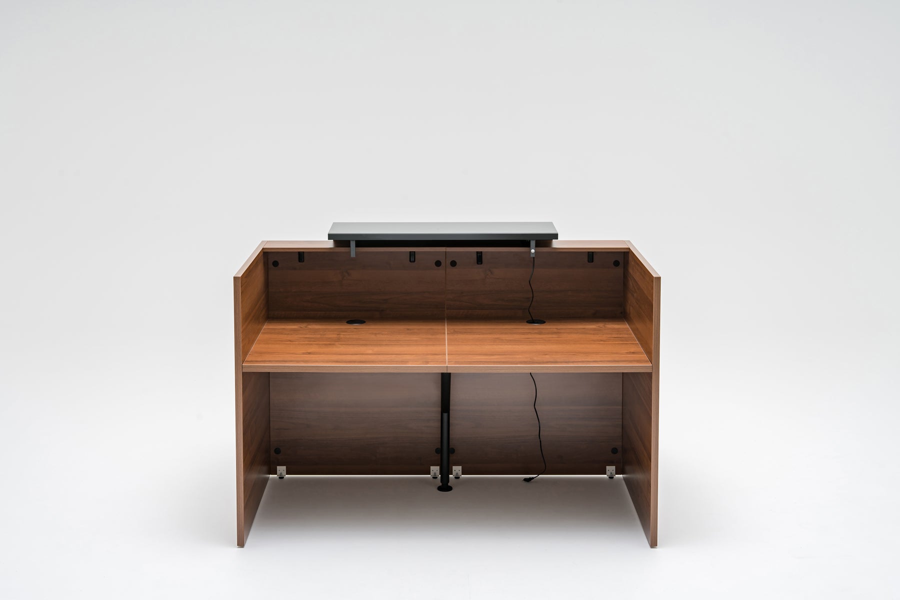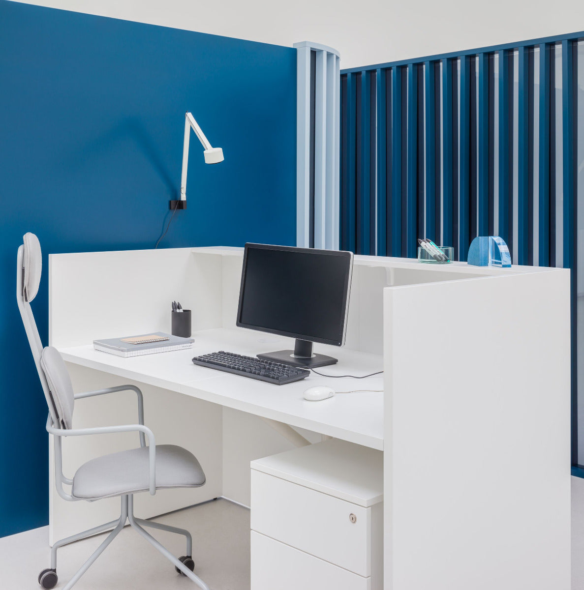 The Tera reception desk offers a sophisticated and functional welcome area, as suggested by its title. The accompanying image depicts a large, curved reception unit, emphasizing its suitability for creating a professional and encompassing front-office presence. It is designed to be a prominent feature in any reception space.